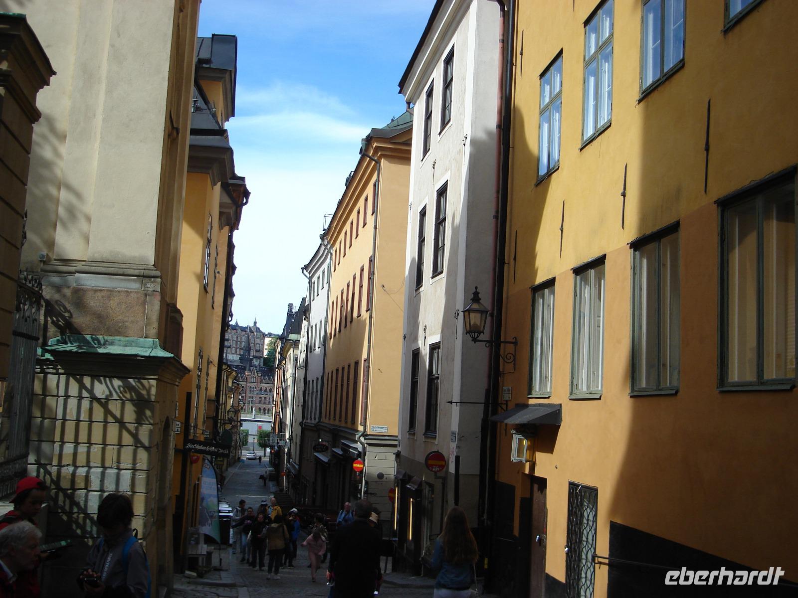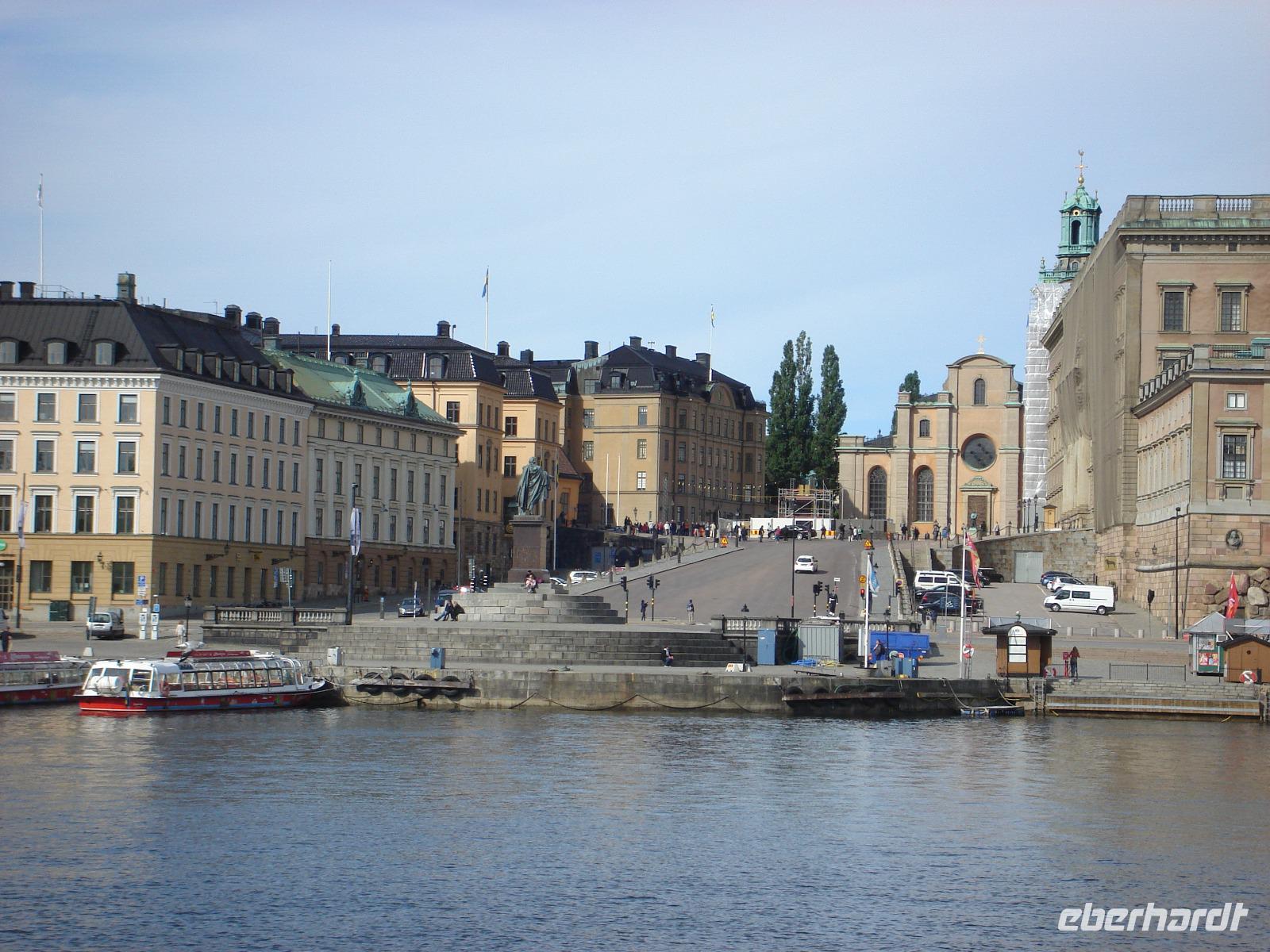 Pünktlich am frühen Morgen kamen wir mit der Fähre aus Finnland im Silja-Hafen von Stockholm an. Wir fuhren mit unserem Bus zum Stadthaus, wo uns unsere örtliche Reiseleiterin Alexa schnell fand. Wir waren sogar vorfristig am Treffpunkt, denn sonnabends um diese Zeit sind die Straßen auch in Stockholm leer. So hatten wir eine wirklich ausführliche Rundfahrt mit anschließendem Rundgang. Wir sahen die Südinsel mit Ausblicken auf die Stadt. Dann ging es nach Djurgarden auf die Museumsinsel, weiter vorbei an zahlreichen Botschaften auf Östermalm, und schließlich durch das Geschäftsviertel Norrmalm nach Gamla Stan, der Schlossinsel. Wir erfuhren viel über die schwedische Geschichte und auch über die Gegenwart. Es gab ausreichend Zeit, Fragen zu stellen und zu beantworten. Das Schloss und seine Museen, der Hafen, das Nobel-Museum und auch die Geschichte Alfred Nobels und seiner Stiftung sind interessante Themen, denen wir uns zuwandten. Aber auch die engen Gassen der Altstadt mit schönen Häusern aus dem 17. Jh. zogen uns in ihren Bann. Wir sahen um 10 Uhr die kleine Wachablösung im Schloss. Anschließend nutzten wir die Freizeit für eigene Erkundungen. Die schöne Lage der Innenstadt lädt förmlich zum Bummeln ein.