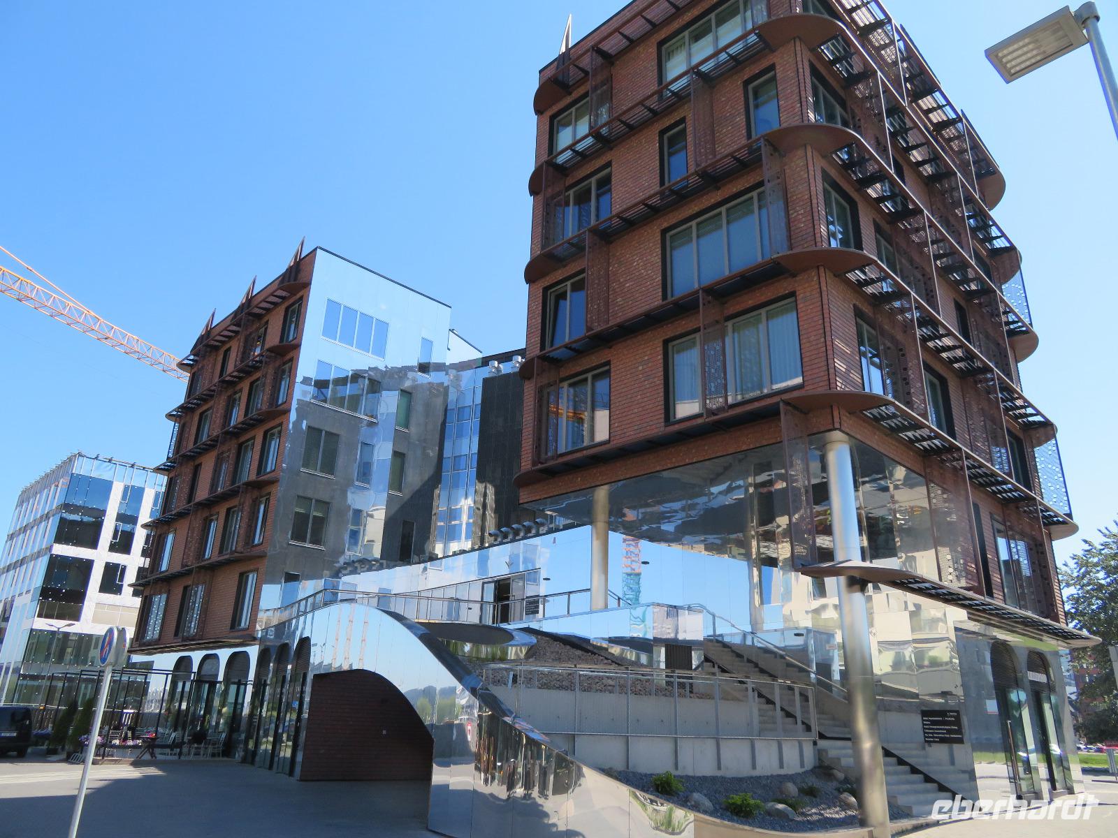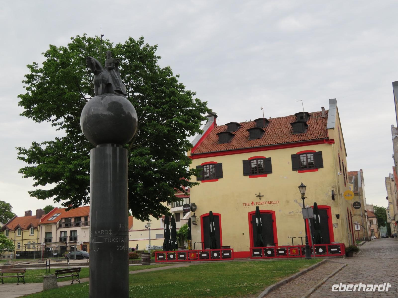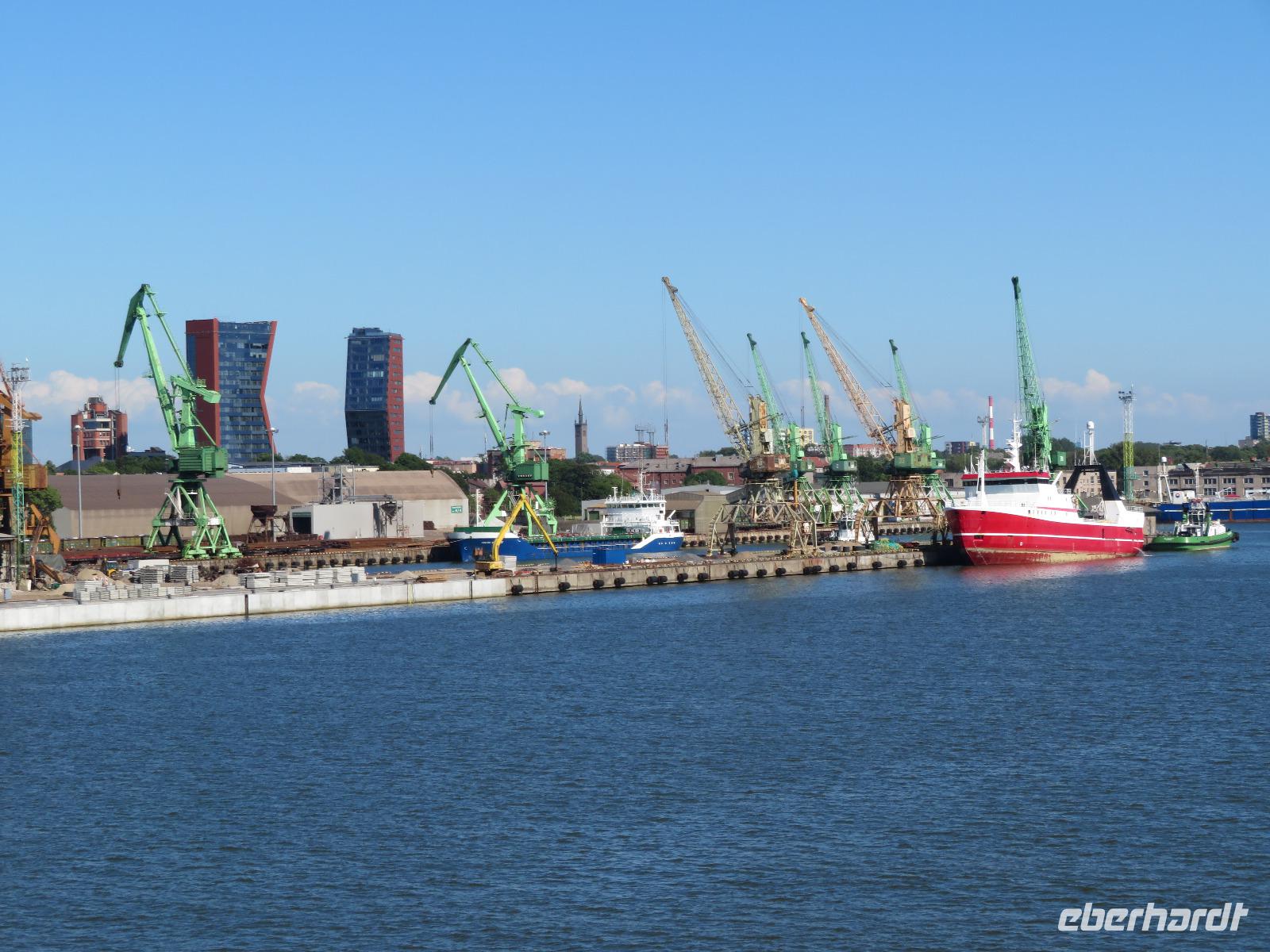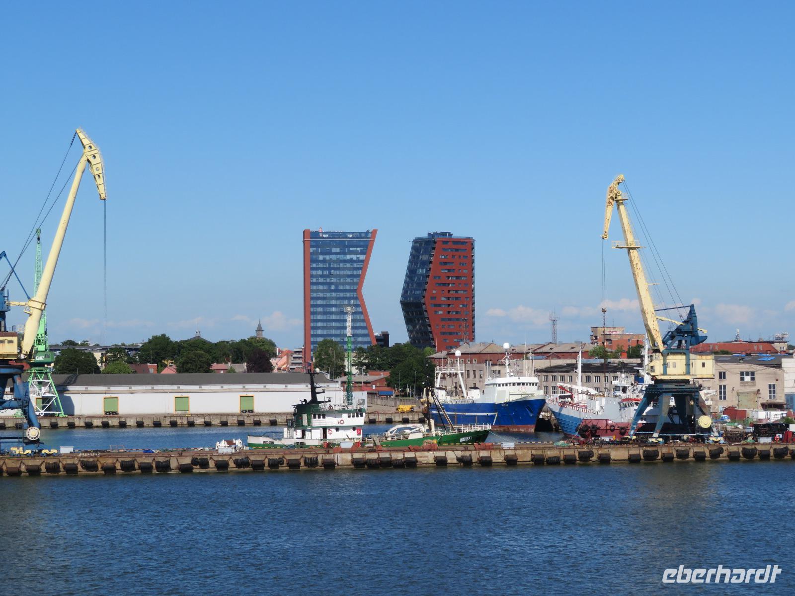 Bei Sonnenschein fuhren wir vom Fährhafen sogleich in die Innenstadt zum Hotel Amberton, einem zweigipfligen Hotelbau mit bis zu zwanzig Stockwerken. Das Baltikum ist seit Jahren ein begehrtes Reiseziel, vorrangig deutscher Veranstalter, geworden. Dies ist schon recht deutlich in Klaipedas größtem Hotel zu spüren. Aber von den Zimmern bester Blick auf die Haff-Wasserstraße, der manchen zu einem Abendspaziergang zum Wall, einst Standort der Ordensburg, und Stadthafen verführte,