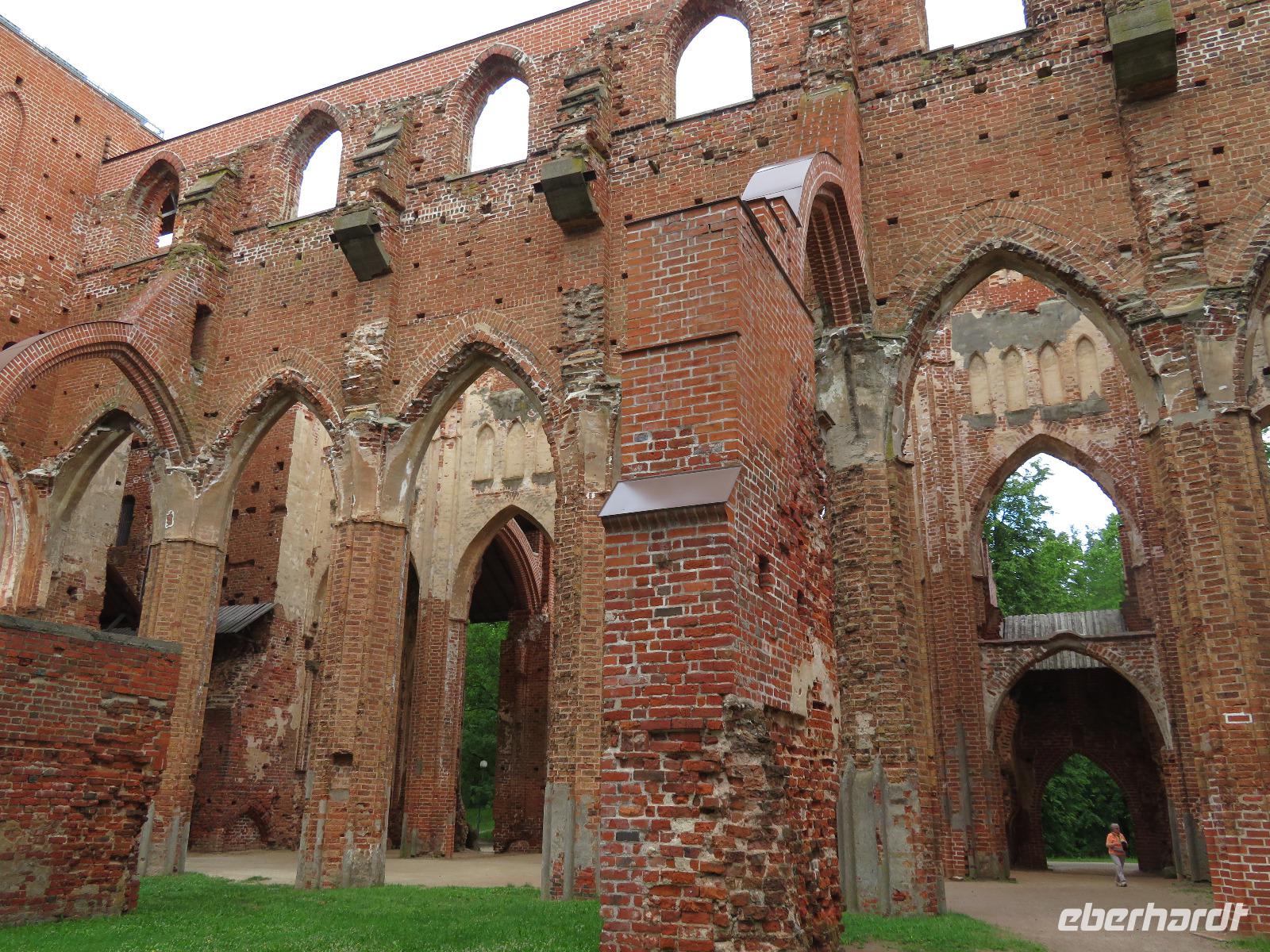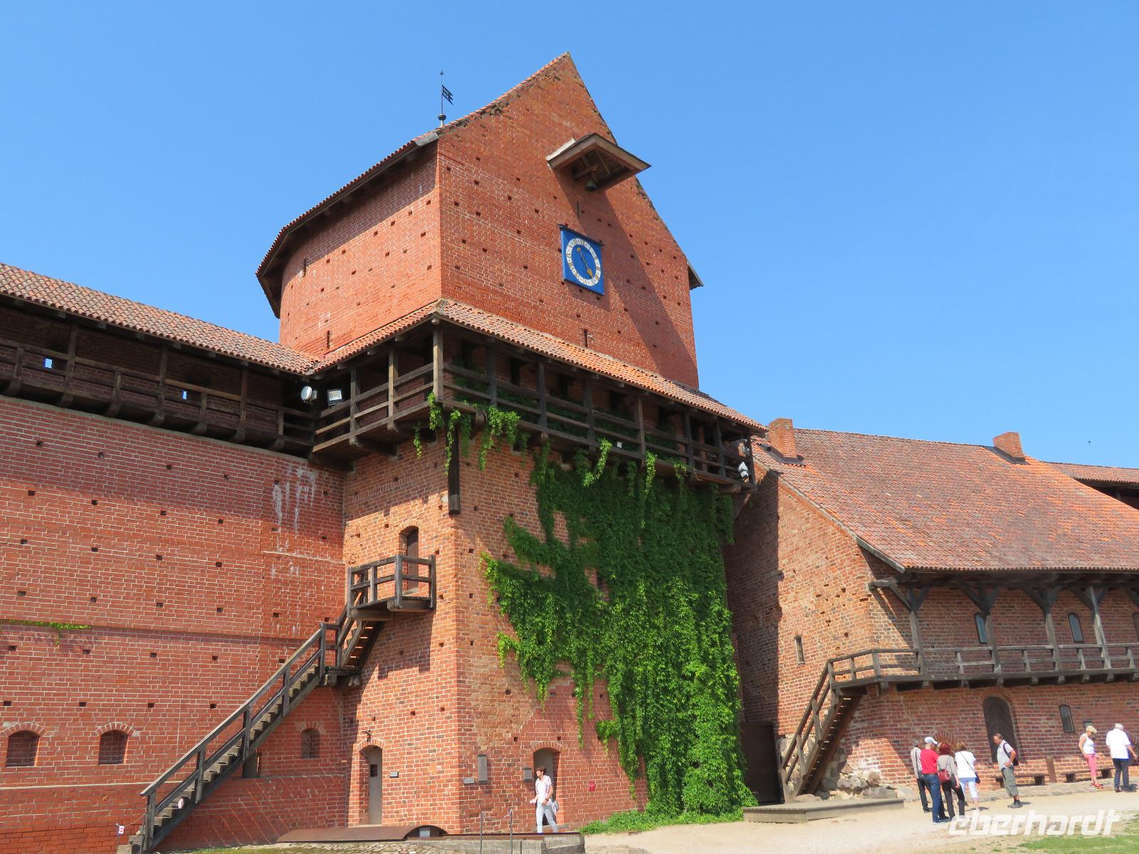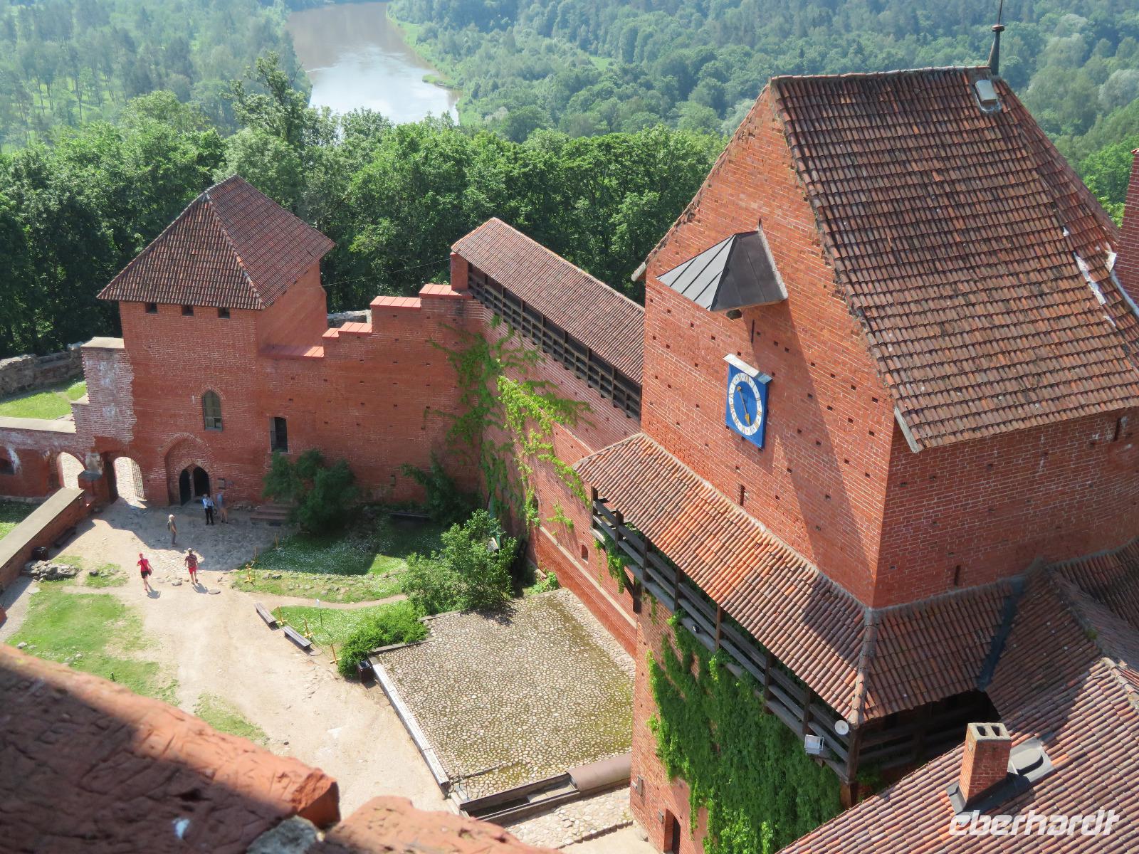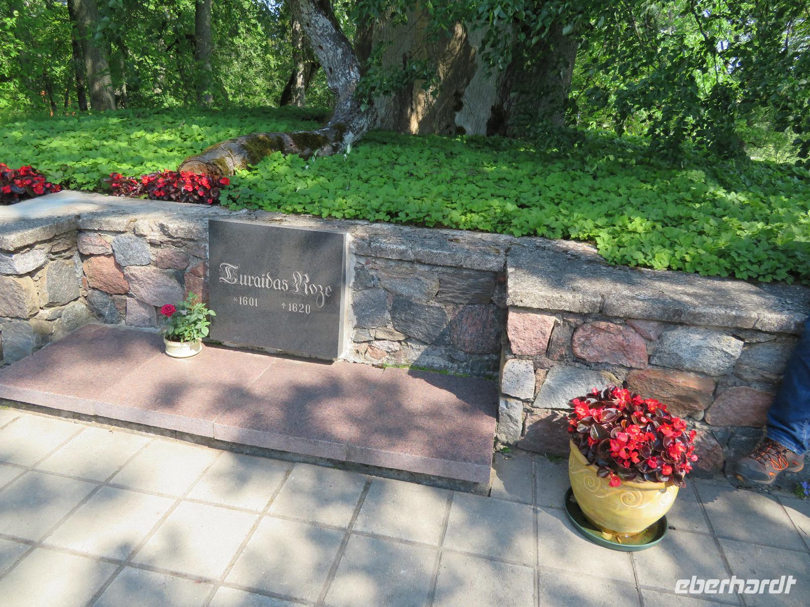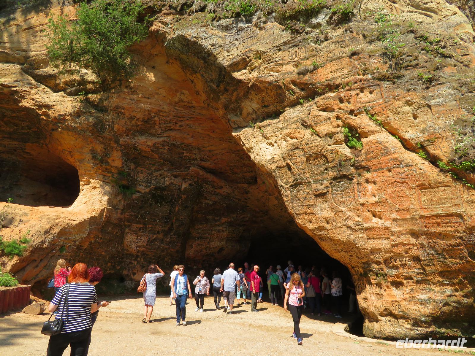 Am Vormittag verabschiedeten wir uns mit den (CD-) Orgelklängen des Rigaer Doms von der lettischen Hauptstadt. Nach einer reichlichen Stunde erreichten wir das Areal des Museumskomplexes Turaida: Burganlage, historisches Dorf und Parkanlage mit einer der ältesten lettischen Kirchen sowie einem Weg durch einen Skulpturenpark. Zunächst stoppten wir am Grab der Rose von Turaida: Zeit diesen Kriminalfall aus dem Jahre 1620 zu erzählen. Gleich nebenan die hübsche Holzkirche und von dort nur wenige Schritte zur Burg des einstigen Schwertbrüderordens. Die rekonstruierten Teile der ehemaligen Ordensritterburg Turaida schildern die Geschichte von Livländern, deutschen Ordensrittern und russischen Eindringlingen. Im Sonnenschein funkelten die roten Ziegelsteine der wieder aufgebauten Burganlage, die noch 1975 von Gestrüpp überwuchert war. Vom Burgturm nach schmalen Treppen genossen einige Gäste einen Blick auf die Livländische Schweiz: grüne Hügelketten und das tiefe Tal der mäandrierenden Gauja. Von der Burg Turaida erreichten wir in wenigen Busminuten im Tal der Gauja mit saftig grünen Wiesen die Gutmann-Höhle, wie immer mit reichlich Touristen. Hier ereignete sich im Jahre 1620 genau jener legendäre Kriminalfall, dessen Opfer, die Rose von Turaida, wurde, an deren Grab wir zwei Stunden eher gestanden hatten.