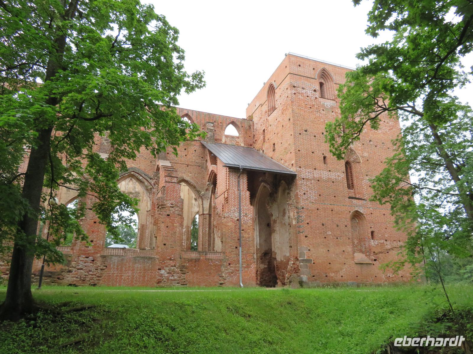 Wir lagen gut in der Zeit, so dass wir noch einen Abstecher zur bedeutendsten archäologischen Ausgrabungsstätte Lettlands, Araisi bei Cesis, unternahmen und in anmutiger Wiesen- und Seenlandschaft unsere späte Mittagspause machten. Die Letgalen hatten vor eintausend Jahren hier auf einer Insel Holzbauten errichtet. Später baute der Deutsche Orden eine Burg, deren Mauerreste heute wieder zu sehen sind.