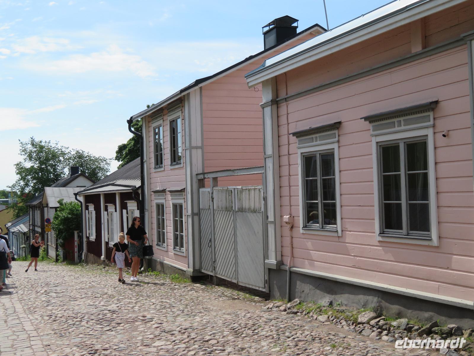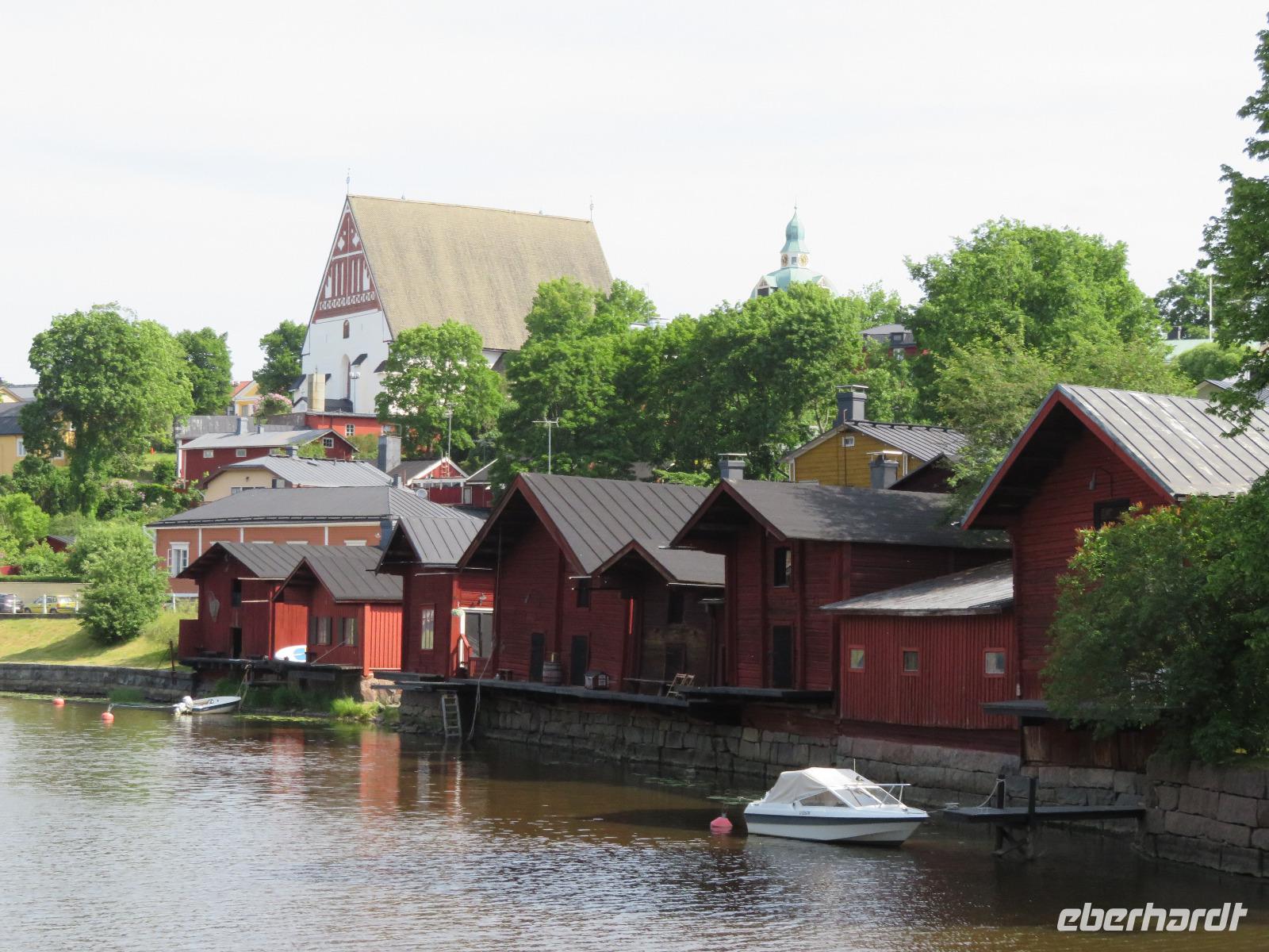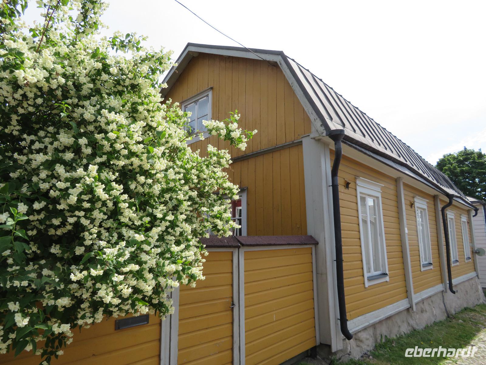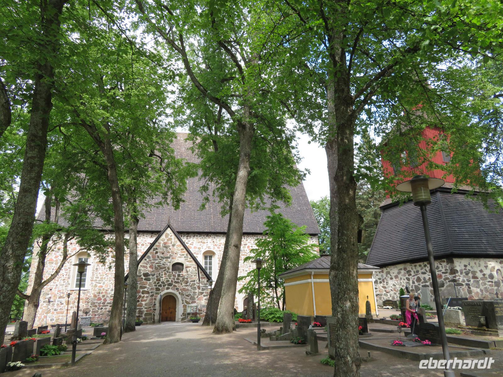 Dieser Tag beinhaltet: die zweitälteste finnische Stadt am Finnischen Meerbusen (Porvoo) mit Dom aus dem Jahre 1410, eine hervorragende Feldsteinkirche aus dem 15. Jahrhundert, die zu den bedeutendsten Kirchen Finnlands gehört (in Lojha), die größte Kirche Finnlands (Dom von Turku), eine der besterhaltenen Burganlagen im östlichen Ostseeraum (Burg Turku): ein Tag bedeutsamer als es die Programmbeschreibung ahnen lässt. . Bei Sonnenschein erreichten wir Porvoo und bummelten vis a vis der Salzhäuser zum Dom und durch die Häuser einer Altstadt, in der der erste Landtag Finnlands unter russischer Herrschaft 1809 stattfand. In Lohja, auf der Fahrt nach Turku, besichtigten wir eine Feldsteinkirche mit Secco-Malerei aus dem 16. Jahrhundert - viel zu schade, daraus nur eine Toiletten- und Würstchenpause zu machen. Zur besten Nachmittagszeit erster Stopp in Tuirku am Dom, der markantesten Kirche Finnlands; dann war noch Zeit für einen individuellen Bummel in Turkus Innenstadt. Unterhalb des Kunstmuseums steht seit 1977 ein Leninddenkmal - wer hatte dies erwartet. An der Burg von Turku schafften wir wenige Minuten nach Sechs noch einen Blick in den Innenhof. Reichlich zeitig waren wir dann am Hafen, aber auch diverse asiatische Gruppen wollten die Abfahrt keinesfalls versäumen. Erstaunlich, wie es die Mannschaft des Schiffes schafft, 20:00 Uhr mit dem Boarding von hunderten Passagieren zu beginnen und 20:25 Uhr Leinen los! zu rufen. Als wir aufstiegen, eilten dutzende „Heinzelmännchen" aus Afrika, Nahost und aus anderen Teilen der Welt vom geputzten Schiff. Es folgten Stunden Schifffahrt durch die finnische Schärenküste vor Turku, ein hervorragendes skandinavisches Büffet inklusive Wein und Bier an Bord des Fährschiffes bei untergehender Sonne. Gegen 23:40 Uhr legten wir für wenige Minuten - und die „Butterfahrer" - auf den Aland-Inseln an; da war es dann doch für wohl vier Stunden dunkel und alle (?) Gäste bereits in ihren Kojen.