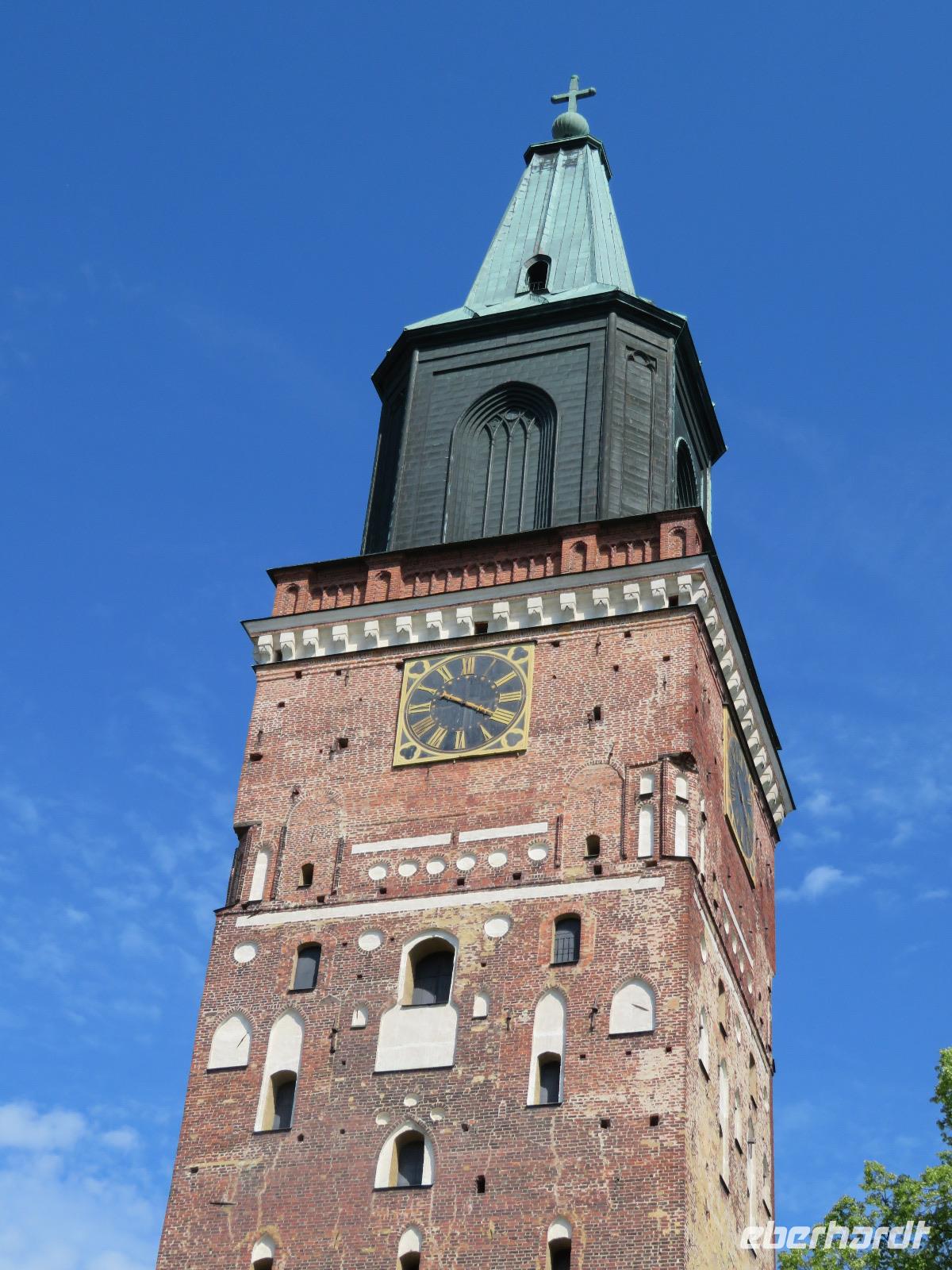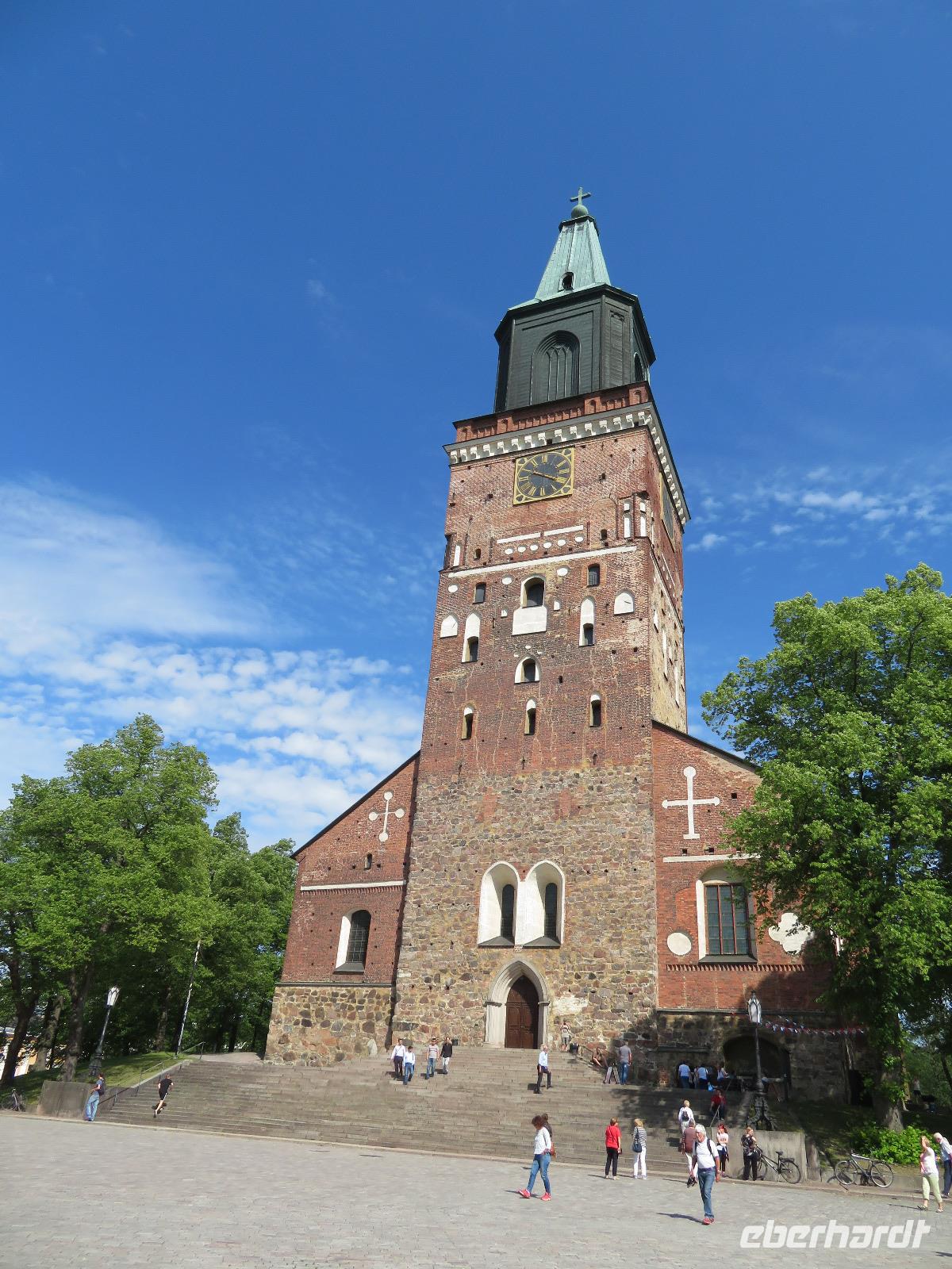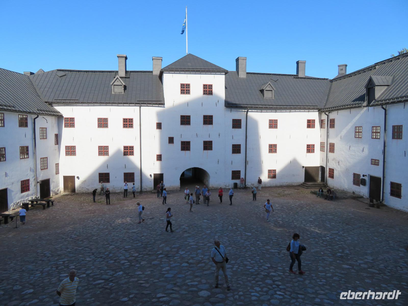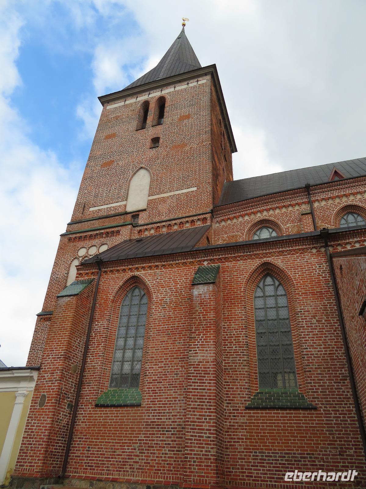 Dieser Tag beinhaltet: die zweitälteste finnische Stadt am Finnischen Meerbusen (Porvoo) mit Dom aus dem Jahre 1410, eine hervorragende Feldsteinkirche aus dem 15. Jahrhundert, die zu den bedeutendsten Kirchen Finnlands gehört (in Lojha), die größte Kirche Finnlands (Dom von Turku), eine der besterhaltenen Burganlagen im östlichen Ostseeraum (Burg Turku): ein Tag bedeutsamer als es die Programmbeschreibung ahnen lässt. . Bei Sonnenschein erreichten wir Porvoo und bummelten vis a vis der Salzhäuser zum Dom und durch die Häuser einer Altstadt, in der der erste Landtag Finnlands unter russischer Herrschaft 1809 stattfand. In Lohja, auf der Fahrt nach Turku, besichtigten wir eine Feldsteinkirche mit Secco-Malerei aus dem 16. Jahrhundert - viel zu schade, daraus nur eine Toiletten- und Würstchenpause zu machen. Zur besten Nachmittagszeit erster Stopp in Tuirku am Dom, der markantesten Kirche Finnlands; dann war noch Zeit für einen individuellen Bummel in Turkus Innenstadt. Unterhalb des Kunstmuseums steht seit 1977 ein Leninddenkmal - wer hatte dies erwartet. An der Burg von Turku schafften wir wenige Minuten nach Sechs noch einen Blick in den Innenhof. Reichlich zeitig waren wir dann am Hafen, aber auch diverse asiatische Gruppen wollten die Abfahrt keinesfalls versäumen. Erstaunlich, wie es die Mannschaft des Schiffes schafft, 20:00 Uhr mit dem Boarding von hunderten Passagieren zu beginnen und 20:25 Uhr Leinen los! zu rufen. Als wir aufstiegen, eilten dutzende „Heinzelmännchen" aus Afrika, Nahost und aus anderen Teilen der Welt vom geputzten Schiff. Es folgten Stunden Schifffahrt durch die finnische Schärenküste vor Turku, ein hervorragendes skandinavisches Büffet inklusive Wein und Bier an Bord des Fährschiffes bei untergehender Sonne. Gegen 23:40 Uhr legten wir für wenige Minuten - und die „Butterfahrer" - auf den Aland-Inseln an; da war es dann doch für wohl vier Stunden dunkel und alle (?) Gäste bereits in ihren Kojen.