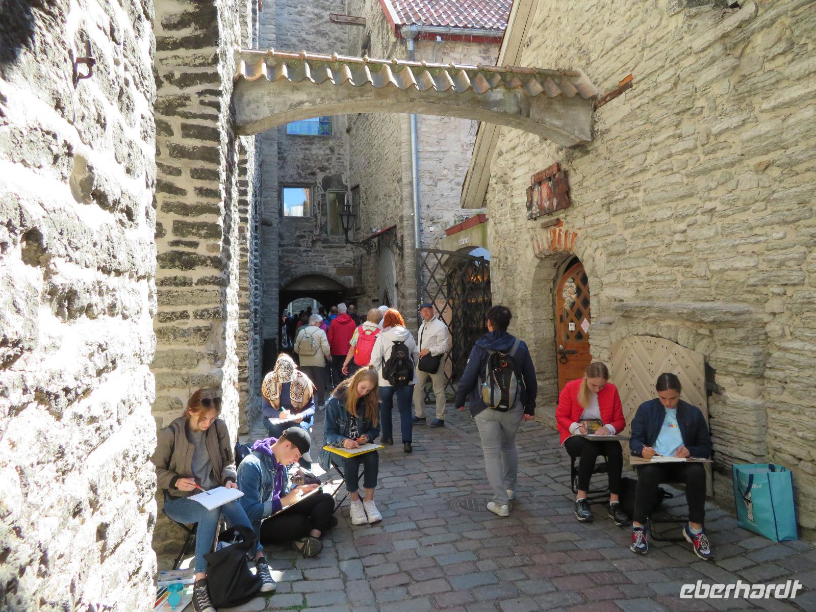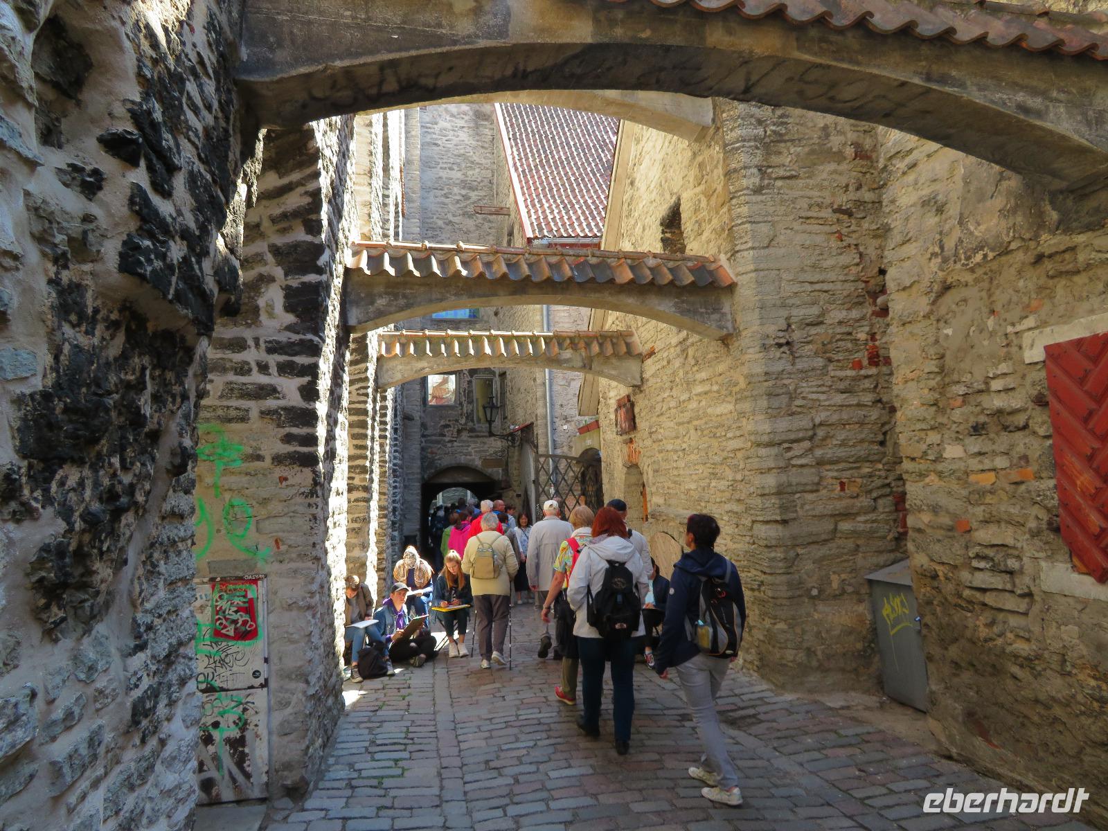 Der 14. Juni ist für die Esten - ebenso die Letten und Litauer - ein Gedenk- und Trauertag. An jenem Tag im Jahre 1941, also wenige Tage bevor der Krieg im Osten begann, starteten die stalinistischen Organe der Sowjetmacht, die in Folge des Geheimabkommens zum Nichtangriffspakt vom 23.08.1039, die baltischen Länder „unter ihren Schutz genommen hatten" eine Aktion zur Verhaftung der ehemaligen Eliten der baltischen Länder und der Deportation ihrer Familien. Daran erinnerten an Tage Trauerflore an den Fahnen des Landes.Mit Eda, unserer örtlichen Reiseleiterin liefen wir direkt vom Hotel Richtung Rathaus und stiegen dann auf den alten Festungswall mit den Gebäuden der Medizinischen Fakultät der Universität. In den Hügeln des Domberges erfuhren wir viel über die Geschichte des Landes und des Universitätsstandortes Tartu/Dorpat. Jeder örtliche Reiseleiter ist unterschiedlich; während Märt 2015 viel über die deutschen Wissenschaftler der Universität Dorpat /Tartu erzählte, legte Eda mehr Wert auf die estnischen Traditionen. Der Dom des ehemaligen Bistums Dorpat ist großartige Ruine im westlichen Teil der Hügel und im ehemaligen Chor des Domes nun Museum der Geschichte der Universität. Vom Dom stiegen wir hinab zur Universität mit dem Denkmal des Schwédenkönigs Gustav II. Adolf und weiter ging es zur Johanniskirche mit ihren Terrakotta-Köpfen als Schmuck. Von der Johanniskirche zog es uns über die Rüütli, die Ritterstraße, nun zum schiefen Haus vis a vis der der Bogenbrücke, über deren Bögen jeder ordentliche Student der Stadt gelaufen sein sollte. Nach einer individuellen Mittagspause, Imbiss oder Schokoladekauf bei Kalev ging es mit dem Reisebus zweihundert Kilometer nach Tallinn. Einen ersten Stopp machten wir am Sängerfestplatz mit seiner großen Bühne (der Muschel), wo seit Jahrzehnten das seit 1869 traditionelle Sängerfestival Estlands stattfindet und 1989 die „singende Revolution" mit dreihunderttausend Beteiligten eingeleitet wurde. Nur wenige Kilometer von hier befinden sich Park und Schloss Katharinental (Katherinorg), das Zar Peter I. errichten ließ. Straßenbauarbeiten behindern leider seit Jahren eine akzeptable Zufahrt zum Park. So fuhren wir wenigstens noch eine Busrunde am Rusalka-Denkmal vorbei Richtung des ehemaligen Olympischen Dorfes Pirita. Mit noch Zeit für einen Bummel bis zum Abendessen erreichten wir unser Park Inn by Radisson Meriton unterhalb der Oberstadt Tompea, so dass alle noch die Chance für einen ersten Weg zur orhodoxen Kathedrale oder zu Kick in de Köck hatten.