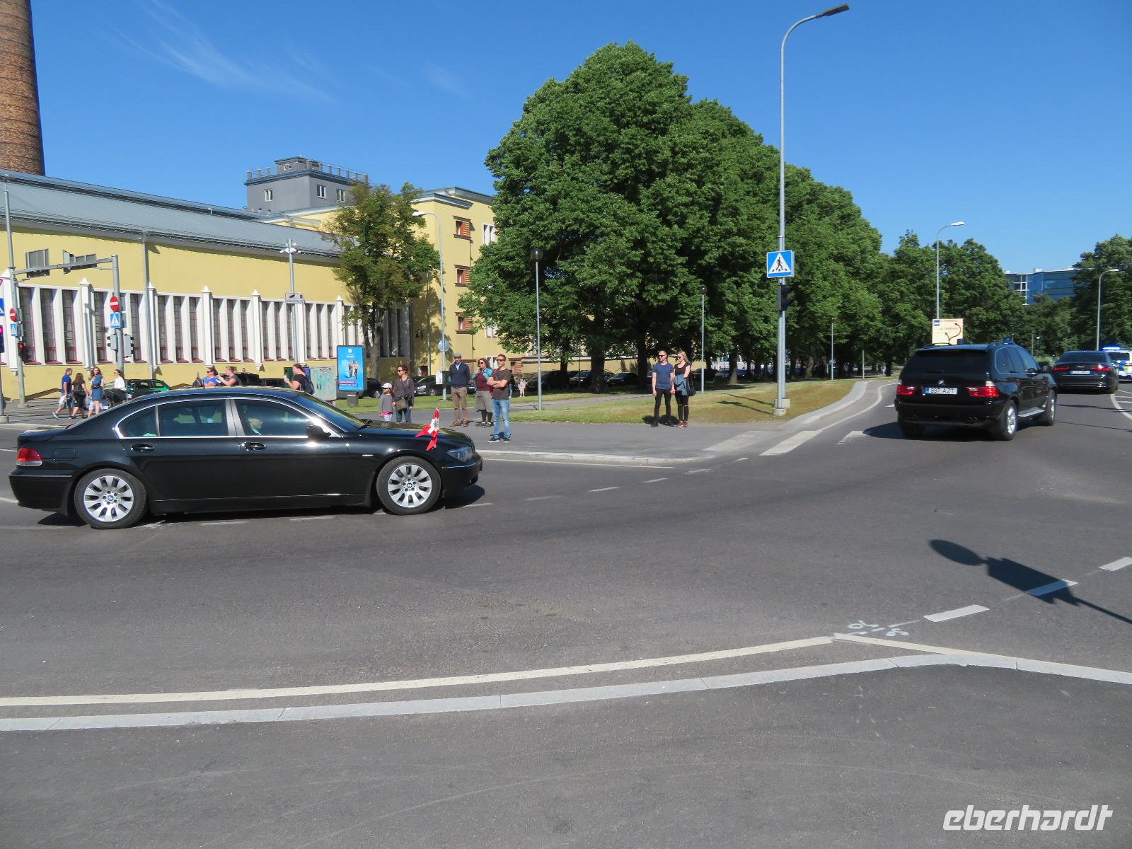 Dies wissend starteten wir unseren Fußweg vom Hotel Park Inn Central Richtung Viru-Tor, einem der traditionellen Zugänge zur Unterstadt, vorbei an einem Stück der Stadtmauer, dem einstigen Dominikanerkloster, alten Handels- und Lagerhäusern, den Häusern der Gilde und dem Schwarzhäupterhaus. Nach zwei Stunden erreichten wir die Oberstadt, Tompea; heute ohne die häufig tausenden Kreuzfahrer.Die Bastion Kick in de Köck, der Lange Hermann als alter Burgturm, das Schloss aus der Übergangsphase von Spätbarock zu Klassizismus und die russisch-orthodoxe Alexander-Newski-Kirche prägen das Bild eines Teils der Oberstadt. Der andere Teil wird geprägt durch die Paläste der einstigen Rittergeschlechter, Adligen und Großgrundbesitzer Estlands. In diesem Teil der Oberstadt wohnten einst die zumeist deutsch-baltischen oder schwedischen Adligen. Die Oberschicht war Herr („Saks") und kam maßgeblich aus Niedersachsen. Unser Hotelstandort ermöglichte es uns, auf direktem und kurzem Wege unter dem „Langen Hermann" vorbeiziehend, den Schlossplatz zu erreichen. Vis a vis schauten wir natürlich auch hinein in die russisch-orthodoxe Newski-Kathedrale. Von zwei schönen Aussichtskanzeln genossen wir den Blick auf die Altstadt und die Ostsee, wo wir am Folgetag nach Helsinki aufbrechen werden. Über Kurzes Bein - ein Treppenweg - stiegen wir hinab in die Unterstadt, einst Reval. Kurzes Bein, Langes Bein und Vene heißen die Gassen, die zum Bummeln rund um den Markt mit seinem Rathaus wohl aus dem Jahre 1410 einladen. Ein schöner Stadtgang führte uns natürlich vorbei am hiesigen Schwarzhäupterhaus, den Gildehäusern und durch die Katharinengasse zum Dominikanerkloster. Viel Anregung für das individuelle Erkunden am Nachmittag: zu Bernd Notkes Altaren in Nikolai- und Heiliggeistkirche, auf der Stadtmauer oder hinauf zum Aussichtsring der Olav-Kirche und natürlich zum Genießen der Gastronomie mit wahrlich europäischen Preisen. Auch nunmehr lohnend ein Bummel im Viertel Kalamaya mit alter Holzarchitektur und umgebauten Industriegebäuden in Kalkstein - heute Zentrum junger Esten und der Designerbranche. Wer wollte, auch das Viertel Rotermann mit moderner Businessarchitektur : Stahl, Glas in Kooperation mit altem Kalkstein. Mit ein bisschen Glück sah man den Konvoi der dänischen Königin, die an diesem Tage aus Anlass des achthundertjährigen Jubiläums der Einnahme Tallinns durch den dänischen König Valdemar in Tallinn weilte. ... und einige Gäste sahen sie am Freiheitsdenkmal höchstselbst.