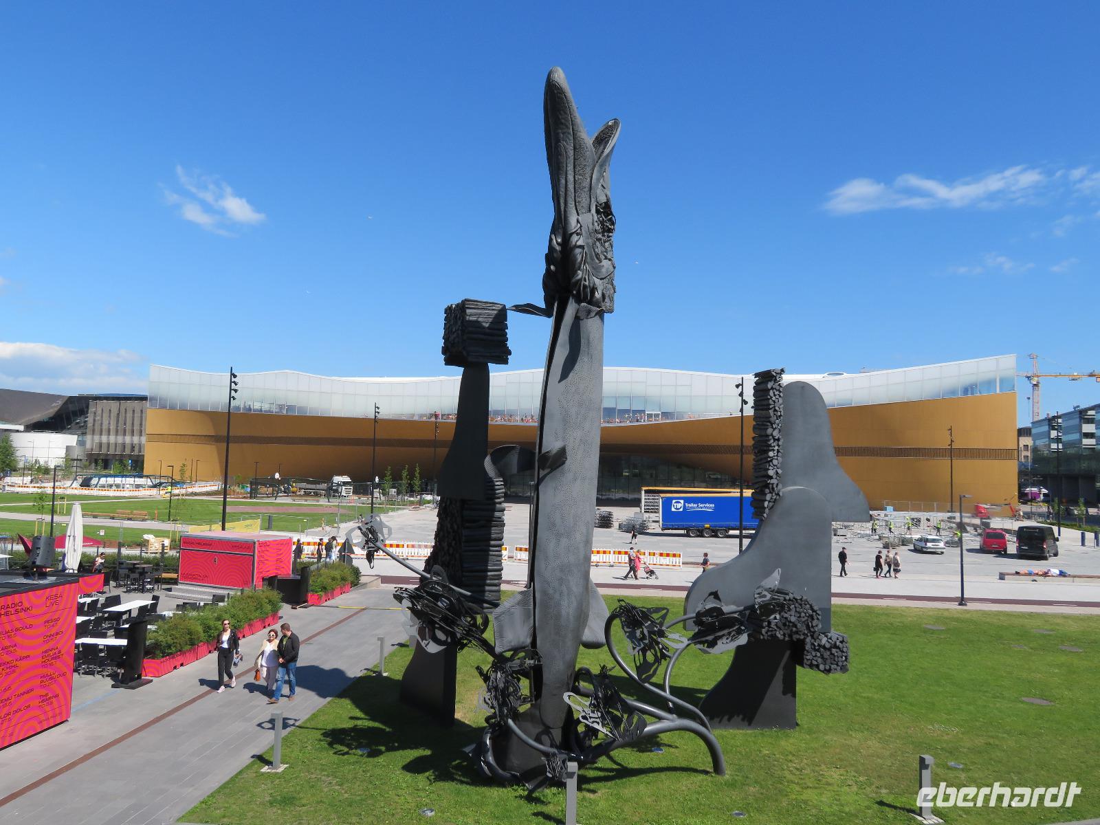 Auch von diesem Park Inn Hotel gelangt man mit dem Bus recht zügig zum Terminal D des Tallinner Hafens, von dem zwanzig Fähren am Tag zur Fahrt über den Finnischen Meerbusen nach Helsinki die Anker lichten. So erreichten wir bei Sonne und fast glatter See die finnische Hauptstadt Helsinki. Vom Westhafen fuhren wir zu rm Riesenrad unterhalb der Uspenski-Kathedrale. Unsere Stadtrundfahrt mit unserem Bus führte uns zunächst durch Straßen der Innenstadt zum Senatsplatz mit dem großen weißen Dom des deutschen Baumeisters Engel. Von hier ging es vorbei an Schären und vorgelagerten Inseln zum traditionellen Teppichwaschplatz der Helsinkier. Als erstes machten wir einen Stopp am Sibelus-Denkmal - symbolisierte Baumstämme - manche interpretieren es auch als Orgelpfeifen - ergeben einen schwebenden Klangraum in der Natur. Nächster Stopp dann am Konzerthaus mit Blick auf die erst jüngst eröffnete neue Bibliothek: ein Kommunikationszentrum ersten Ranges in faszinierender Architektur. Ein weiterer Stopp dann in der Nähe des Olympiastadions von 1952 - noch immer im Umbau - mit Nurmi-Denkmal. Nun noch einen guten Parkplatz gesucht, um auf dem Senatsplatz zu stehen und zum Fotografieren: es gelang.
