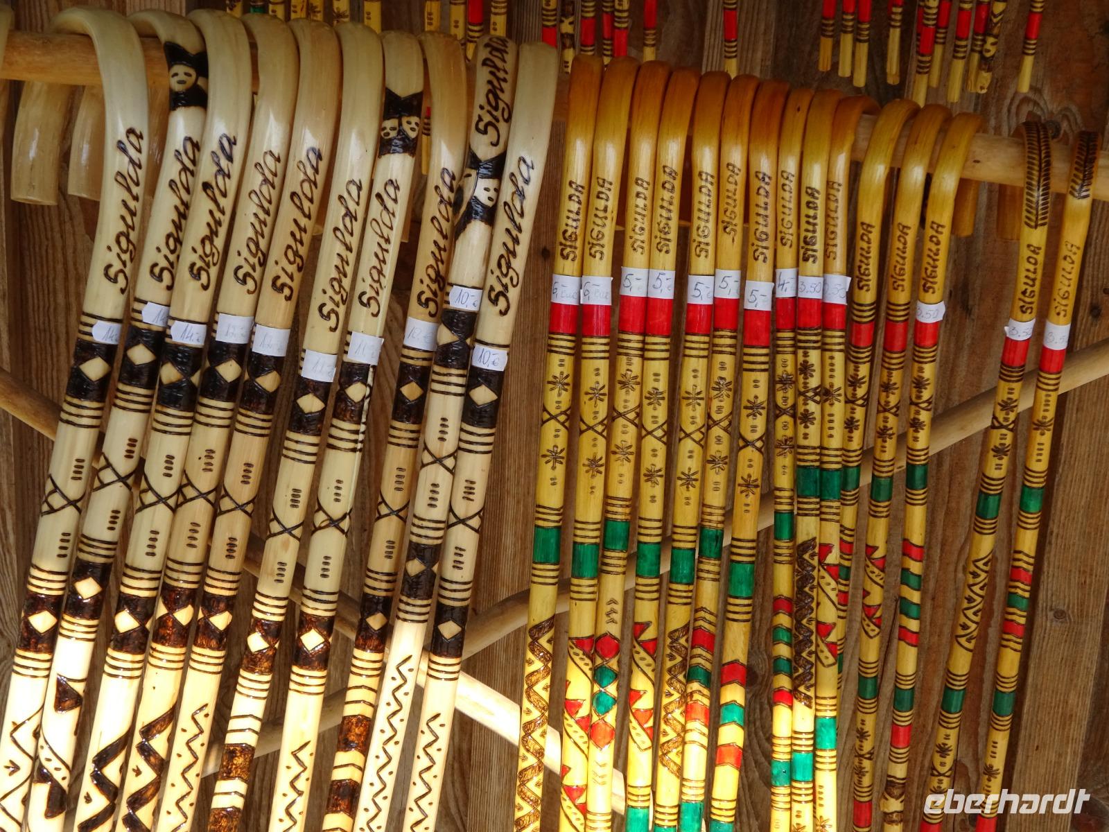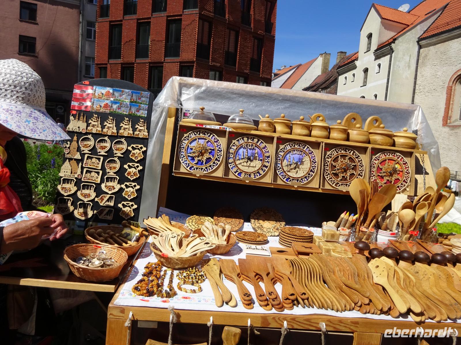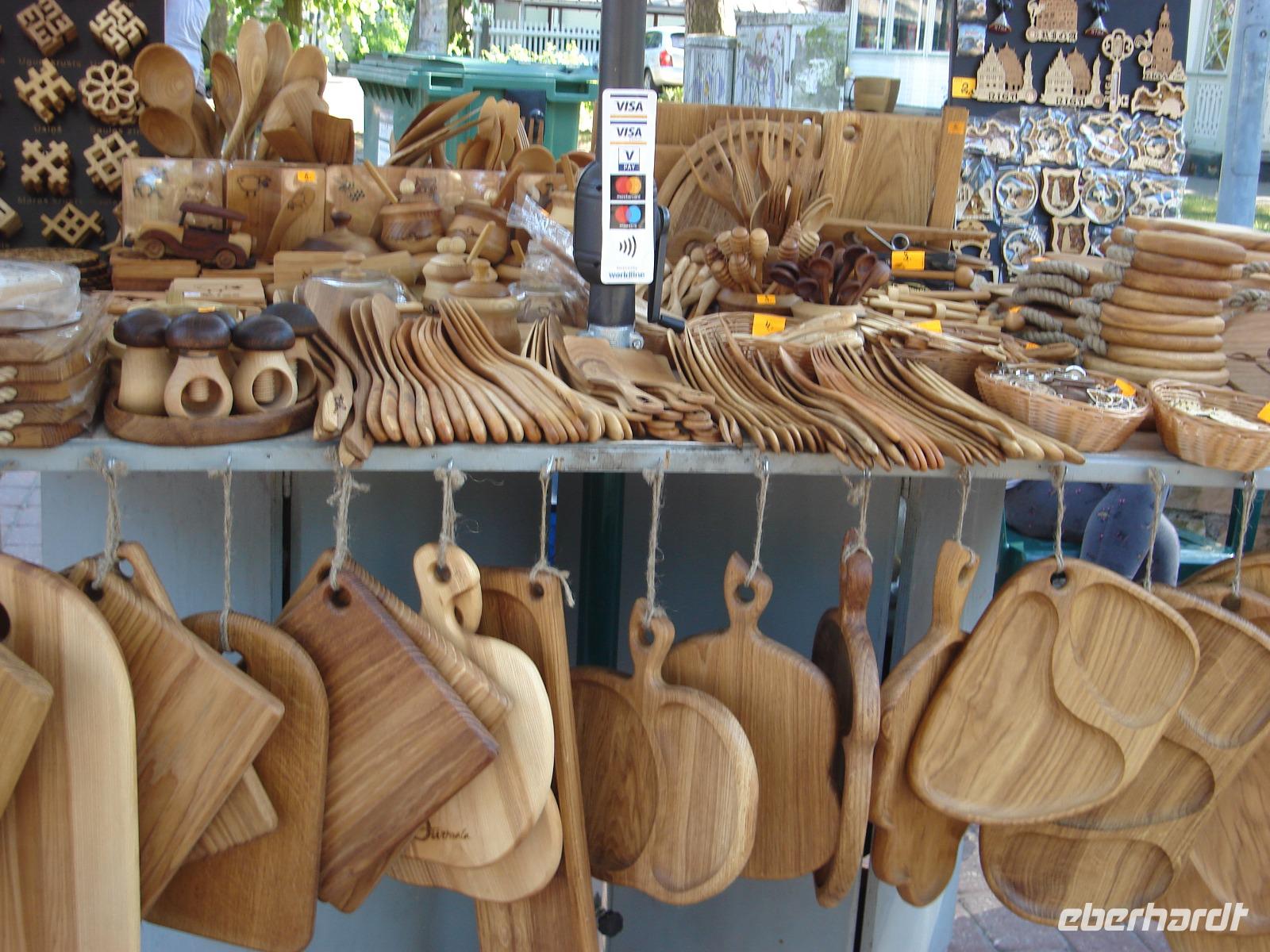 Und am Parkplatz warteten die uns schon bekannten Stände mit interessanten Souvenirs aus dem Baltikum. Immer wieder gab es auch Gebäck zu verkosten, diesmal dazu Preiselbeeren in Puderzucker gehüllt, einfach köstlich!