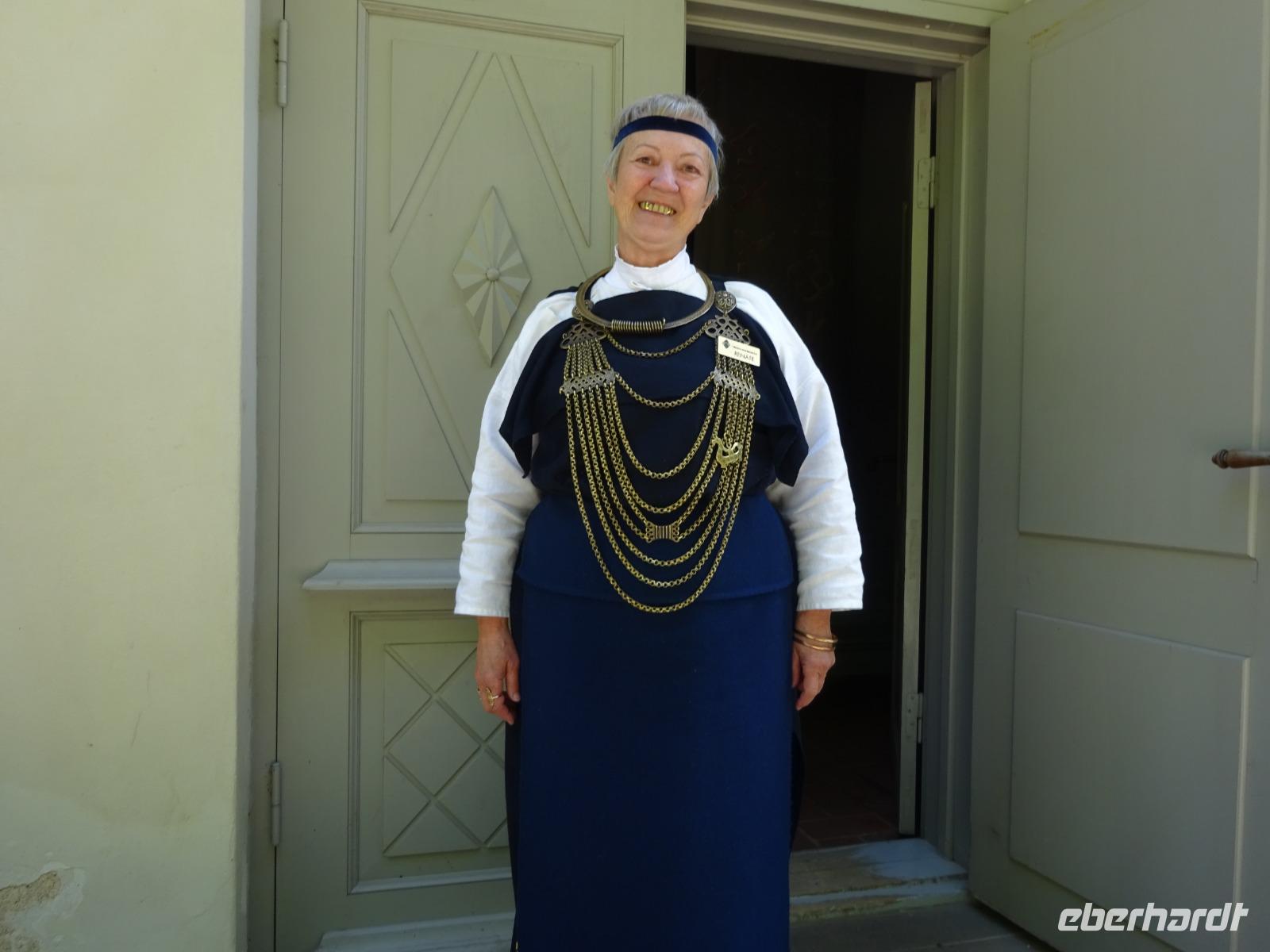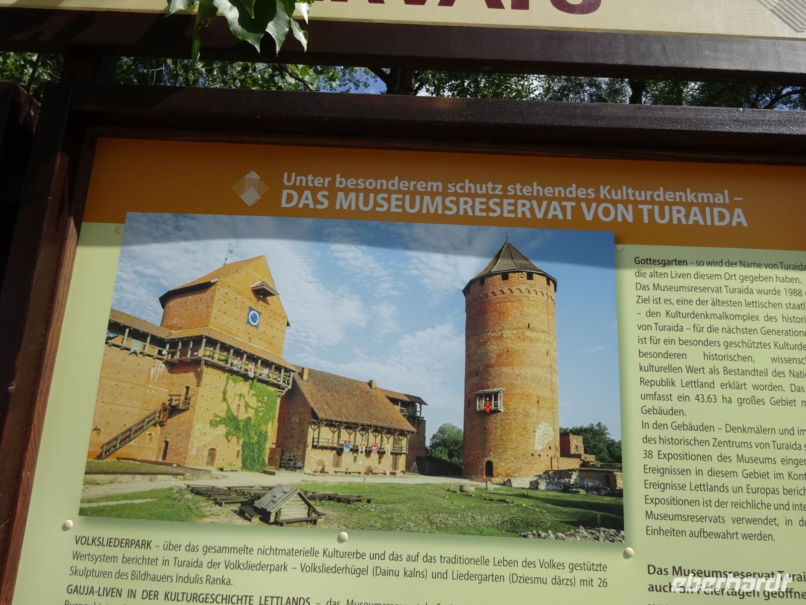Riga ist eine großartige Stadt. Da waren wir uns einig, aber wir sind ja auf einer Rundreise. Da zieht man bekanntlich immer weiter. Unser Ziel war heute der Museumskomplex Turaida, eine große Naturpark-Anlage mit zahlreichen Museums-Gebäuden, die innen sehr anschaulich die Geschichte der Region vorstellen. Sehenswert ist besonders die schon aus der Ferne gut sichtbare imposante Burg des Schwertbrüderordens, auch die Holzkirche sahen wir uns an. Überall auf dem Gelände und in den einzelnen Gebäuden sind Schautafeln, auch in deutscher Sprache. In den Gebäuden erklären Angestellte in historischen Trachten das jeweilige Handwerk. Natürlich haben wir auch die Geschichte der Rose von Turaida besprochen, einer baltischen Variante von Romeo und Julia.