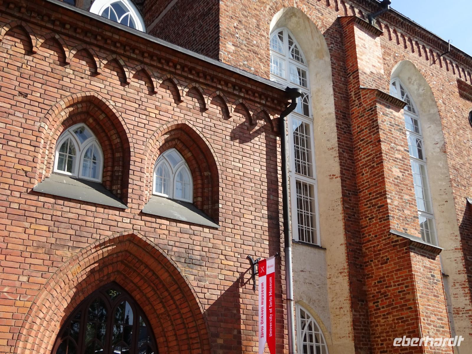 Heute wollten wir die Stadt Tartu näher kennenlernen. Die Koffer waren im Bus verstaut, schon kam unsere örtliche Reiseleiterin. Mit dem Bus fuhren wir eine kleine Runde, um anschließend den Domberg zu besuchen, und bei dieser Gelegenheit eine Menge über die Geschichte Estlands zu erfahren, so über Tartu und seine alte Universität, an der zahlreiche deutsche Wissenschaftler gelehrt hatten, so u.a. Wilhelm Ostwald, der einzige Nobelpreisträger der Universität Tartu. Der wuchtige Dom des ehemaligen Bistums Dorpat wird als eine großartige und sehenswerte Ruine erhalten. Hier finden im Sommer Konzerte statt. Im östlichen Teil war früher die Universitätsbibliothek untergebracht, heute ist dort ein Museum der Universität. Vom Dom gingen wir hinab zur Universität mit dem Denkmal des Schwedenkönigs Gustav II. Adolf, der die Universität gründen ließ, weiter durch schöne Gassen zur Johanniskirche mit Terrakotta-Köpfen als Schmuck. Auch eine Innenbesichtigung der Johanneskirche stand auf unserem Plan. Sie hat sogar montags geöffnet!