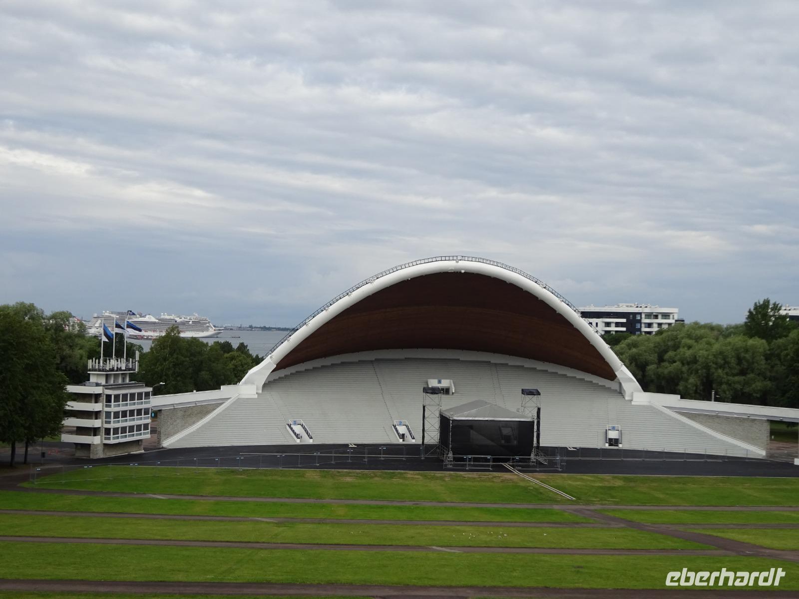 Ein wenig kannten wir ja Tallinn schon vom gestrigen Abendspaziergang. Nun sollten wir die Hauptstadt Estlands auf einer Rundfahrt und einem anschließenden Rundgang genauer kennenlernen. Wir starteten an unserem Hotel Europa mit dem Bus. Zunächst besuchten wir den Sängerfestplatz mit seiner großen Bühne (der Muschel), wo seit Jahrzehnten das seit 1869 traditionelle Sängerfestival Estlands stattfindet und 1989 die „singende Revolution" mit 300.000 Beteiligten eingeleitet wurde. Nur wenige Kilometer stadteinwärts befinden sich Park und Schloss Katharinental [lettisch: Kadriorg], das Zar Peter I. für seine Frau Katharina I. errichten ließ. Immer wieder mussten wir bei unserer Tour Baustellen umschiffen, damit wir alle Sehenswürdigkeiten kennenlernen konnten. Aber die Sommer sind hier kurz, d.h. der Straßenbau muss sich beeilen. Man sieht, dass es in jeder Hinsicht voran geht in Estland. Vorbei ging es noch am ehemaligen Olympischen Dorf. Unsere örtliche Reiseführerin wies immer wieder auf die bewegte Geschichte der Stadt hin und knüpfte dabei auch an zahlreiche Ereignisse der deutschen Geschichte an.