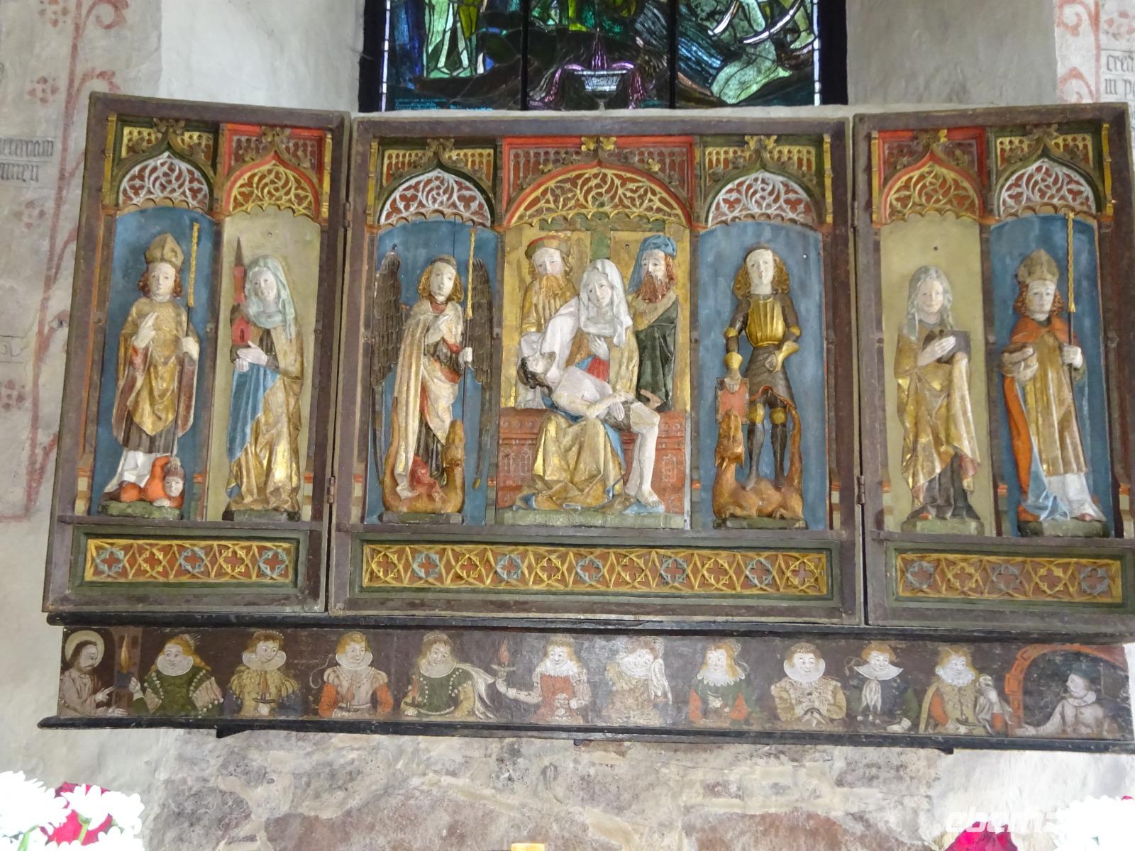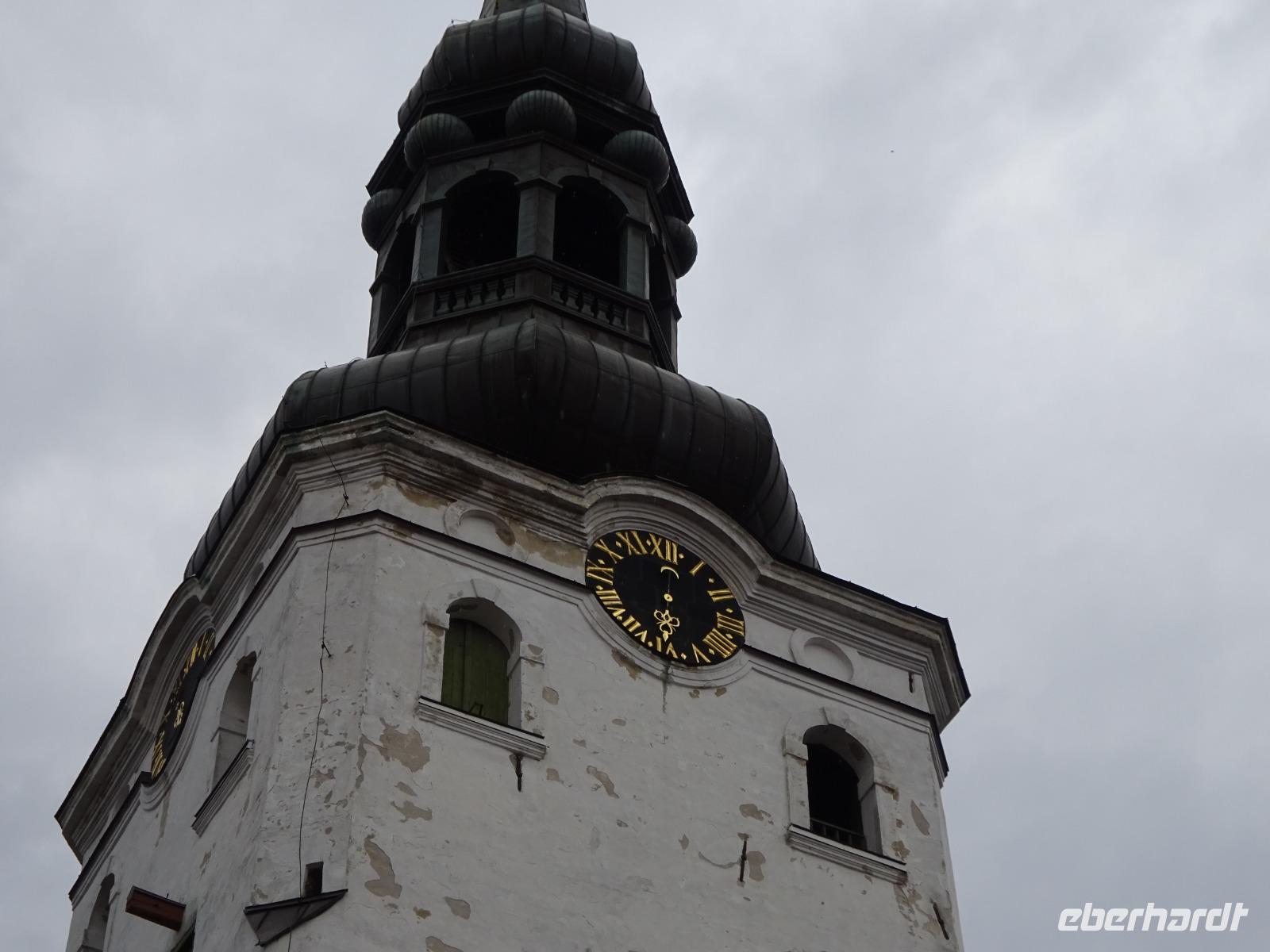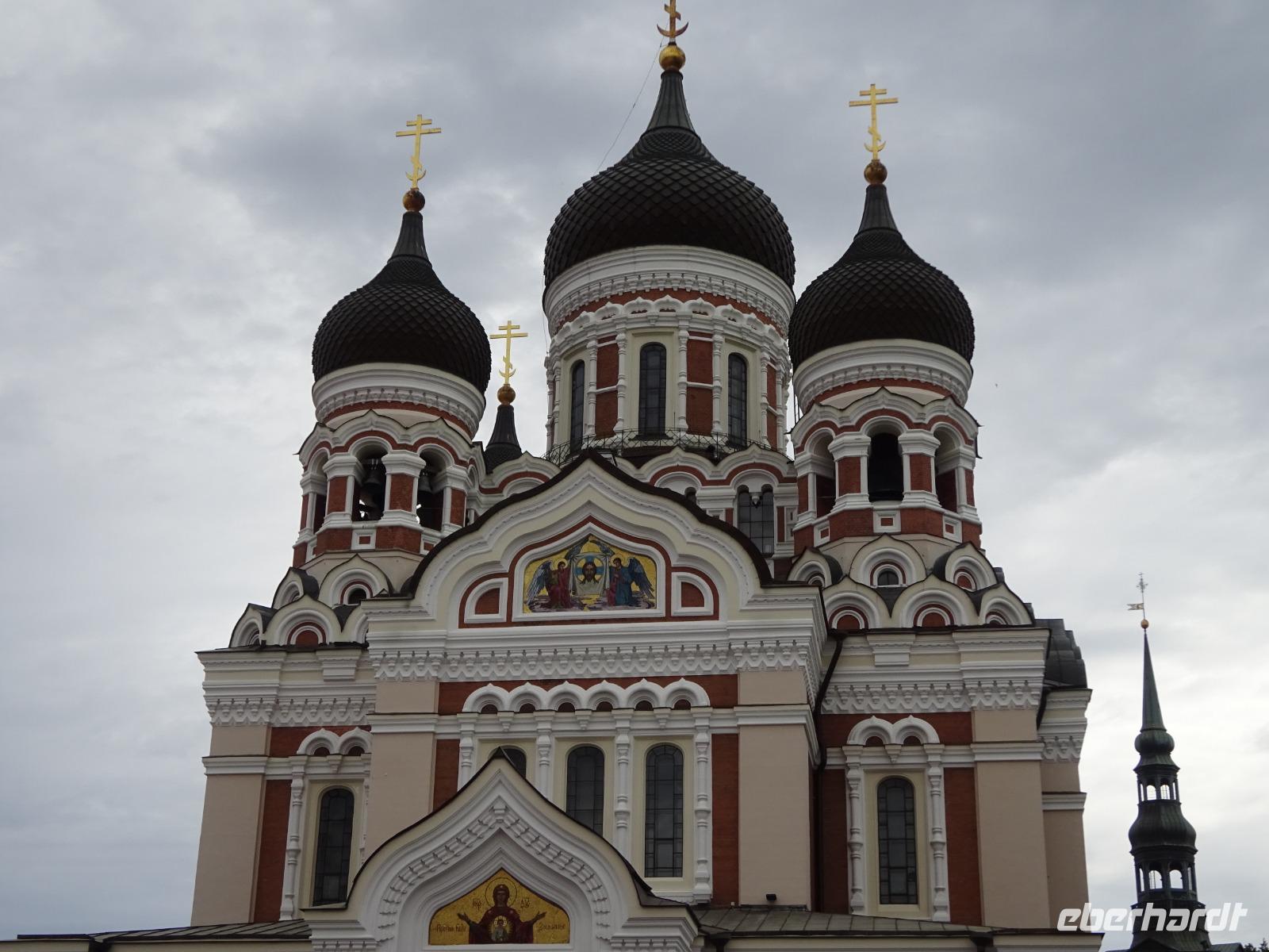 Unser Busfahrer Dirk brachte uns schließlich zur Oberstadt, weiter gingen wir zu Fuß. Wir sahen die russisch-orthodoxe Alexander-Newskij-Kathedrale, das Schloss aus der Übergangsphase vom Spätbarock zum Klassizismus, kamen vorbei am Dom und genossen immer wieder großartige Ausblicke auf die Unterstadt und die Ostsee. Ein nicht enden wollender Strom von Kreuzfahrt-Touristen begleitete uns auf unserem Rundgang. Kurzes Bein und Langes Bein heißen die Gassen auf dem Weg hinunter bis zum Rathaus auf dem Marktplatz. Hier beendeten wir unseren Rundgang und bekamen zuvor jede Menge Anregungen für die individuelle Gestaltung des Nachmittags: so u.a. Bernd Notkes Altäre in Nikolai- und Heiliggeistkirche, ein Rundgang auf der Stadtmauer, diverse Museen, so das Kunstmuseum im Park Kadriorg, dazu unendliche viele Geschäfte mit Souvenirs und geschmackvollen Textilien aus Leinen, und nicht zu vergessen die guten Kuchen, für die man sich ja auch Zeit nehmen muss.