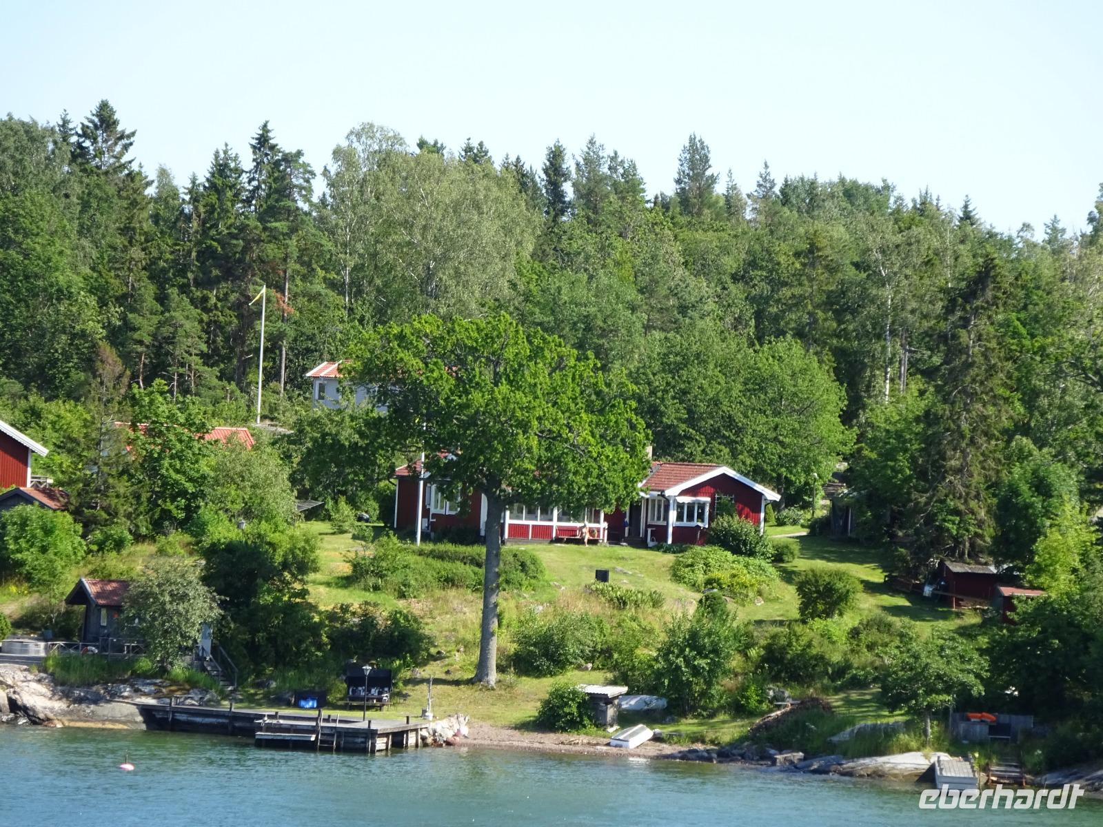 Nach einem zeitigen Frühstück brachen wir auf, denn heute wollten wir an Bord der Silja Line von Turku nach Mariehamn übersetzen, d.h. wir verbrachten den Vormittag auf See und genossen bei strahlendem Sonnenschein die Aussicht auf das Meer und die malerischen Schären, saßen in der Sonne, ließen uns den Wind um die Nase wehen. Man muss wissen, dass zwischen Finnland und Åland das Schärenmeer mit unzähligen Inseln und Inselchen liegt. Nicht alle diese Inseln sind bewohnt. Hauptstadt Ålands ist der Ort Mariehamn, wo wir von Bord der Fähre gingen. Åland ist ein kleines Inselreich, geprägt durch finnische, schwedische und russische Einflüsse. Es ist heute eine autonome Provinz Finnlands. Offizielle Sprache ist allerdings das Schwedische.