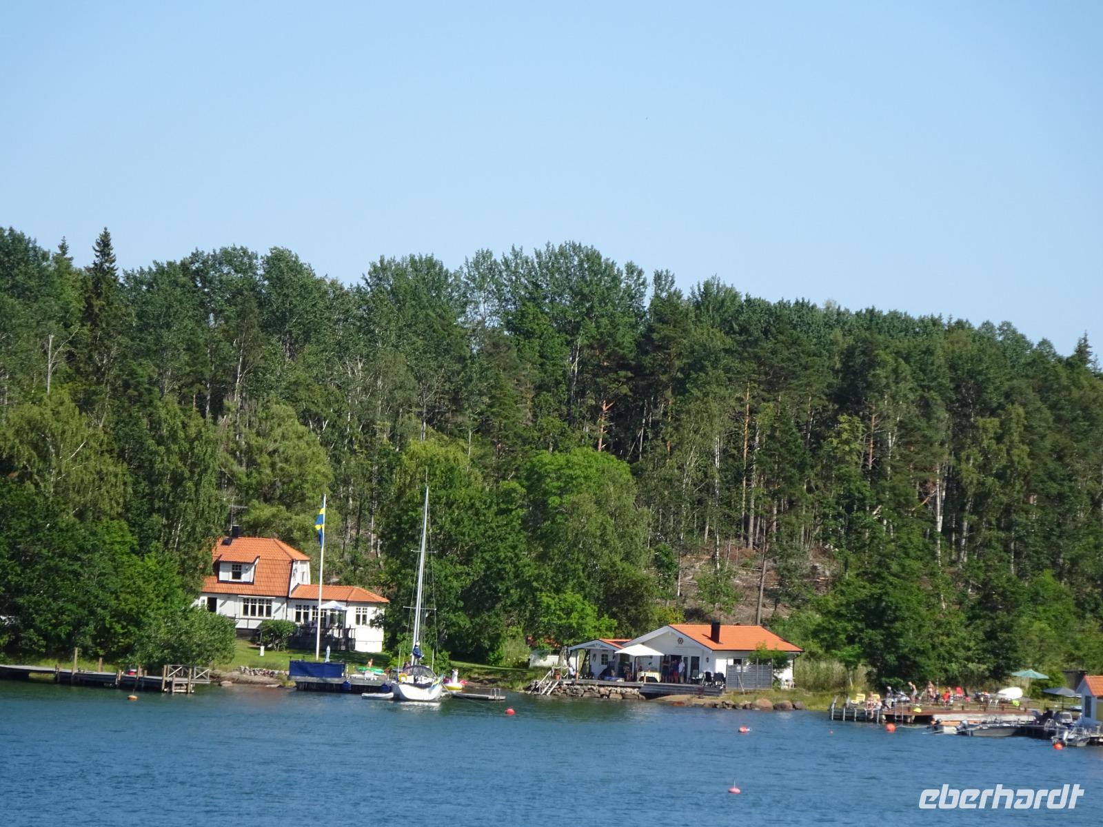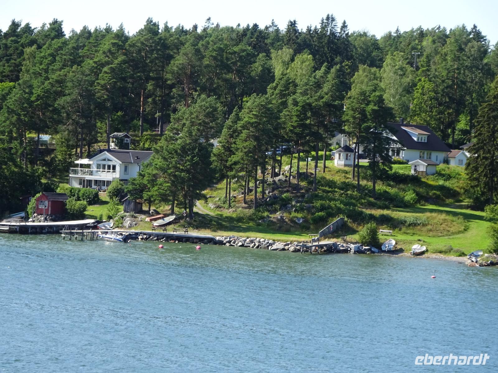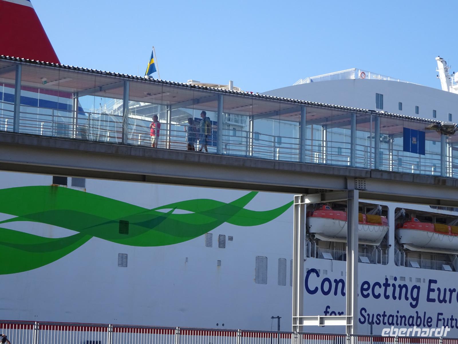 Es war eine ruhige Fahrt durch herrliche Landschaft, geprägt durch Wälder und Seen. An einigen besonders schönen Stellen legten wir Fotostopps ein. Das Wetter war durchwachsen. Wir fuhren vorbei an der Stadt Göteborg, dann weiter zum Hafen.