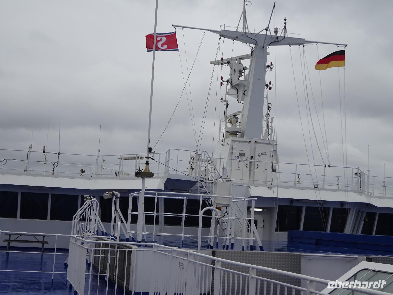 Bei ruhiger See fuhren wir in die Kieler Förde ein. Das Bild kannten wir schon von der Abreise. Die in Kiel zugestiegenen Gäste verabschiedeten sich hier. Die Wege zum Bahnhof, zum Parkhaus oder einfach nur in die Stadt sind kurz, auch gut ausgeschildert. Wir anderen fuhren weiter, mit etwas Wehmut und gleichzeitig mit Vorfreude auf zu Hause. So nahmen wir Kurs auf unsere Ausstiegsorte.