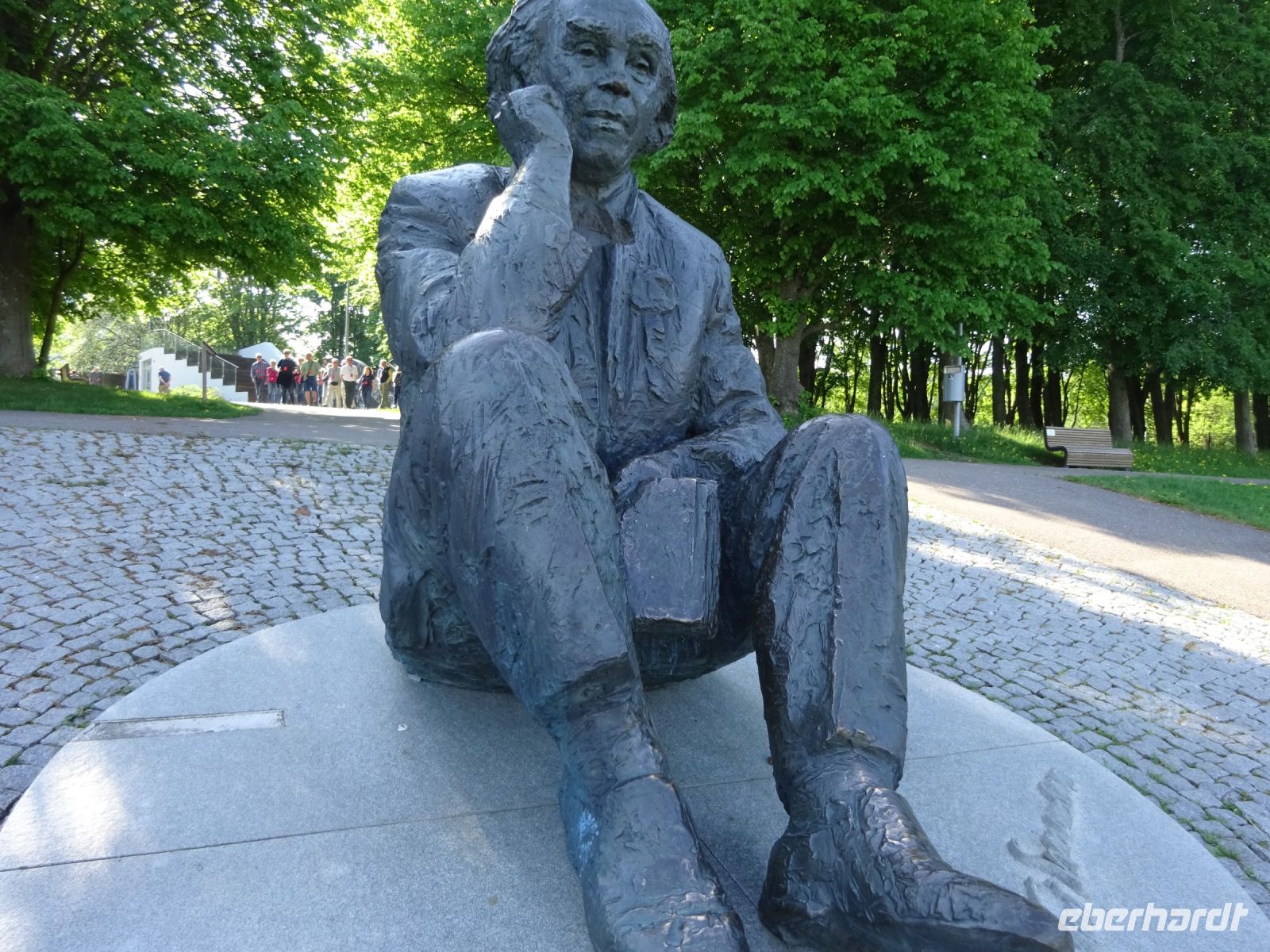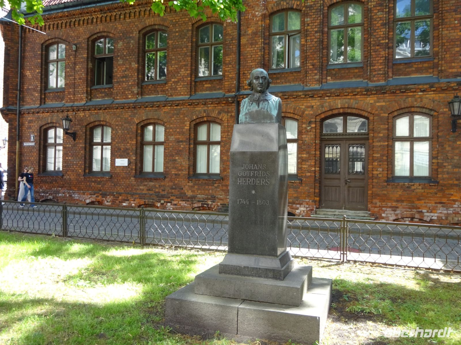 Gut ausgeschlafen, ließen wir uns das Frühstück an Bord schmecken, saßen an Deck, besprachen ein wenig die kommenden Tage und machten uns natürlich miteinander bekannt. So verging der Tag ziemlich schnell. Ein schmackhaftes Mittagessen gab es auch. Pünktlich um 20 Uhr legte unsere Fähre dann im Hafen von Kleipeda an. Schon lange vor der Ankunft konnten wir die Stadt, vor allem aber den langgestreckten Hafen sehen, auch unser Hotel Amberton mit seiner markanten K-Form. Schnell waren wir mit unserem Bus dort. Klaipeda hat übrigens den größten Hafen Litauens. Obwohl es schon ziemlich spät war, wollten wir nach dem Abendessen noch ein wenig durch die Stadt bummeln, zumindest dem Ännchen von Tharau einen Besuch abstatten. Inzwischen hatte es während des Abendessens ein ordentliches Gewitter gegeben. Aber schnell war alles wieder vorüber. Entlang des Dane-Flusses liefen wir in Richtung Theaterplatz. Wir kamen vorbei an den schön restaurierten alten Speichern und gingen geradewegs zum Simon-Dach-Brunnen mit dem Ännchen von Tharau. Und zumindest die 1. Strophe des bekannten Liedes sangen wir. Wir schlenderten weiter, fotografierten, bestaunten die schmucken Fachwerkhäuser und das Meridian-Segel-Schulschiff, heute ein Restaurant. Wir waren vorher auch an der Arche vorbei gekommen, dem Denkmal, das die Brüche in der Geschichte der Stadt und des Landes symbolisieren soll. Kleipeda blickt auf eine wechselvolle Vergangenheit zurück und ist jetzt eine quirlige junge Stadt, mit einer Universität und einer Seefahrtschule, der einzigen im Land. Die Stadt war früher militärisches Sperrgebiet, d.h. für Ausländer nicht zugänglich. Morgen steht die Kurische Nehrung auf dem Programm. Wir können es kaum erwarten. Immer wieder bemühen wir unsere Wetter-App. Morgen wollen wir vor allen Dingen keinen Regen.