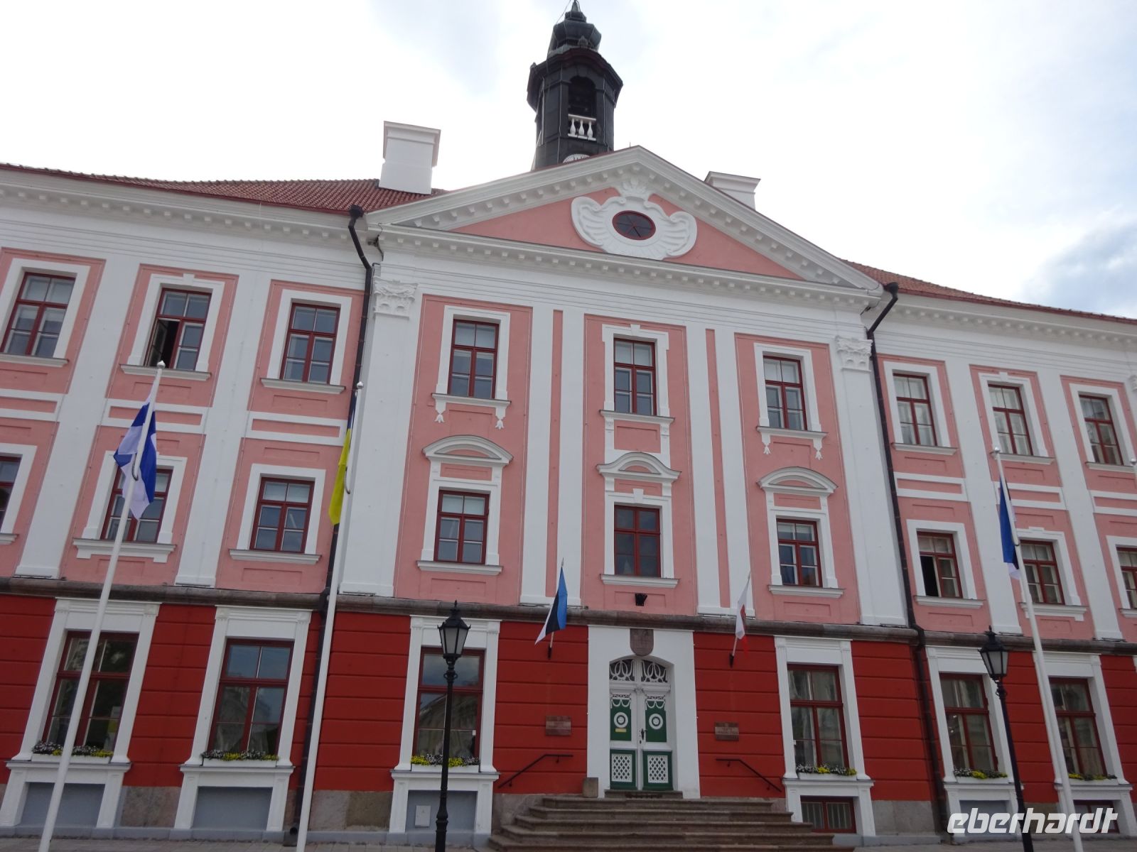 Unsere örtliche Reiseleiterin Lili begrüßt uns schon am Hotel. Sie gibt im Bus Erklärungen zur Stadtgeschichte, bevor wir die Stadtbesichtigung zu Fuß beginnen. Immer am Fluss entlang kommen wir schnell zum Rathaus und zum Rathausplatz. Die Stadt ist besonders schön herausgeputzt. Sind wir doch im Jahr der Verleihung des Titels Kulturhauptstadt Europas. Lili hat auch zu diesem Thema viel zu berichten: Es gibt eine Menge Veranstaltungen, Gäste kommen aus dem In- und Ausland, so auch wir. Und heute ist hier ein ganz besonderer Tag, denn der finnische Staatspräsident, ganz frisch im Amt, ist zu einem Staatsbesuch eingetroffen und hält gerade jetzt in der altehrwürdigen Universität von Tartu einen Vortrag. Gerade wird für ihn vor der Universität der blaue Teppich ausgerollt. Auch eine Militärkapelle marschiert vorbei. Natürlich halten wir das alles im Bild fest. Wir sehen uns zunächst den Marktplatz mit dem Springbrunnen der küssenden Studenten an, dann das Rathaus. Danach gehen wir hinauf auf den Domberg, erfahren von Lili eine Menge über das wissenschaftliche Leben der Stadt, früher und auch heute, über Neuerungen in verschiedenen Bereichen. Nach wenigen Minuten sehen wir dann schon die großartige Ruine des wuchtigen Doms des ehemaligen Bistums Dorpat. In den Sommermonaten gibt es hier Konzerte und Theateraufführungen. Im östlichen Teil war früher die Universitätsbibliothek untergebracht. Nun ist sie längst in einem neuen Gebäude, das den modernen Anforderungen viel besser gerecht wird. Ab 12 Uhr war auch eine Innenbesichtigung der Johanneskirche möglich, was wir natürlich nutzten, denn wir wollten die berühmten Terrakotta-Köpfe sehen, von denen uns Lili erzählt hatte. Nun war auch noch ausreichend freie Zeit, um einfach durch die Gassen und über den Markt zu bummeln, die schönen Holzbauten zu bewundern, Schokolade im Kalev-Laden an der Ecke zu kaufen, einen Kaffee zu trinken, ein Eis zu schlecken, einfach eine Pause zu machen und alles auf uns wirken zu lassen. Am Nachmittag ging die Fahrt dann weiter nach Tallinn. Da waren alle schon sehr gespannt. Pünktlich erreichten wir unser Hotel Park In by Radisson, zentral gelegen und genau richtig für uns. Einen Spaziergang vor dem heute etwas späteren Abendessen hatten wir uns schon vorgenommen. Ein paar Wolken waren aufgezogen, die uns aber nicht schreckten. Morgen gibt es dann eine ausführliche Stadtbesichtigung. Wir sind schon gespannt.