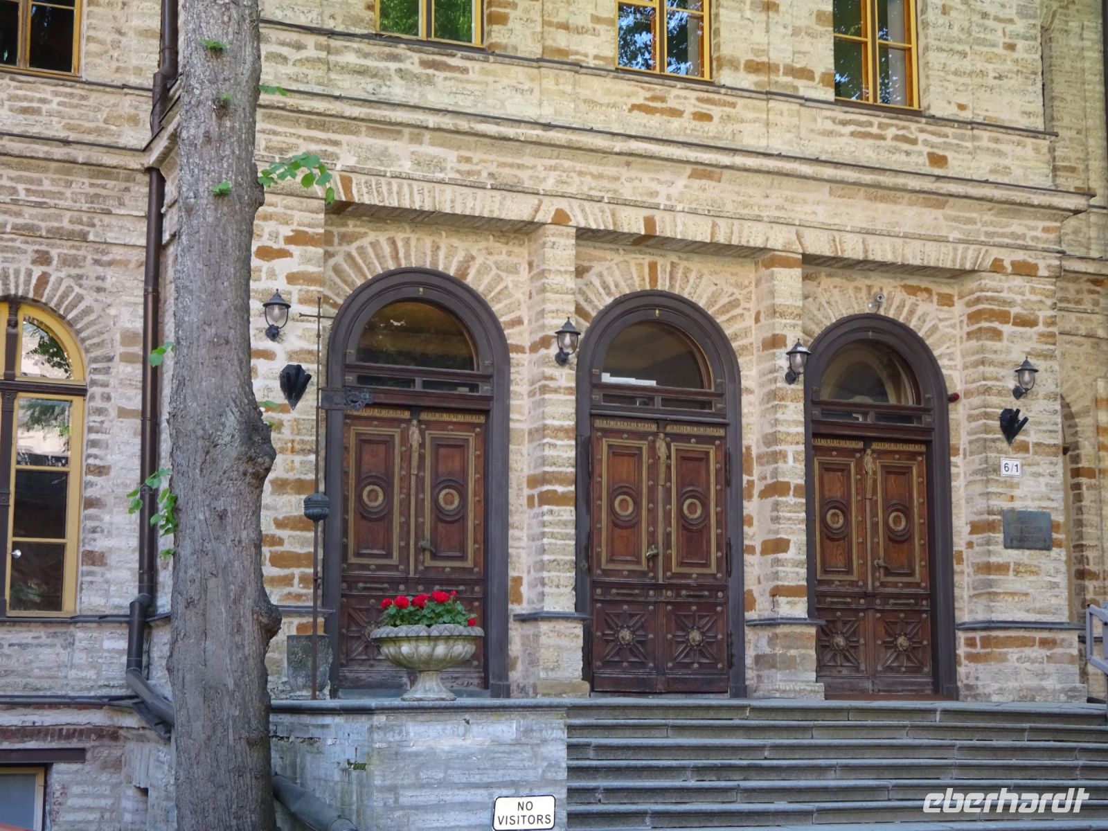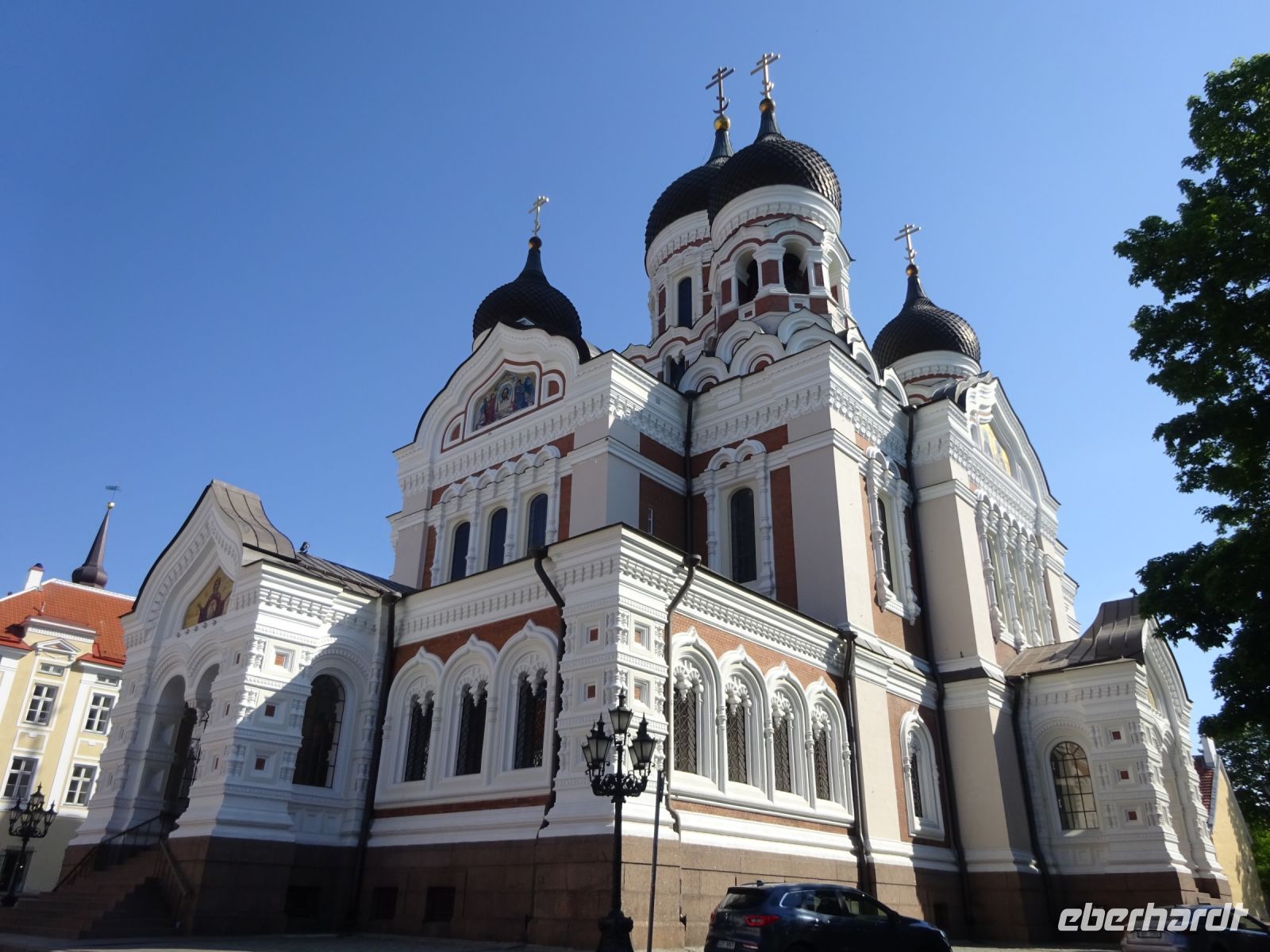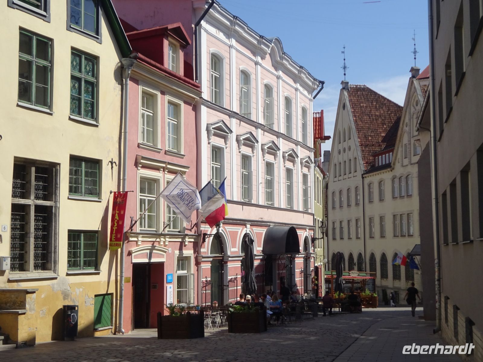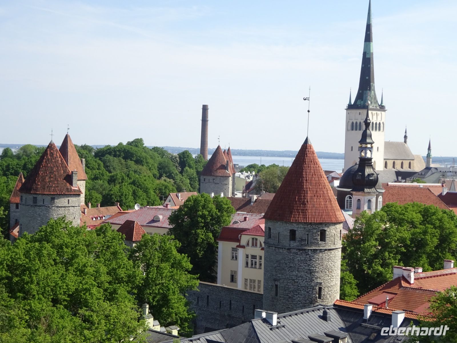 Heute nun Tallinn, die Hauptstadt Estlands. Ausgestattet mit Audioguides, wie schon in Riga und Tartu, machten wir uns bereit. Los ging es mit einer Rundfahrt, zunächst durch das Viertel Katriorg, bekannt vor allem durch seine ausgesprochen schöne und geschmackvolle Holzbauweise. Hier befinden sich Park und Schloss Katharinental [lettisch: Katriorg], das Zar Peter I. für seine Frau Katharina I. errichten ließ. Dann besuchten wir den Sängerfestplatz mit seiner großen Bühne, der Muschel, wo das seit 1869 traditionelle Sängerfestival Estlands stattfindet und 1989 die „singende Revolution“ mit 300.000 Beteiligten eingeleitet wurde. Von unserer Stadtführerin lernten wir viel über die bewegte Geschichte Tallinns, auch über die vielfältigen Verbindungslinien zur deutschen Geschichte, zur Hanse und natürlich zu den Sängerfesten. Wir fuhren wieder hinein in die Stadt bis hinauf in die Oberstadt, auf den Domberg. Nun setzen wir unsere Stadtbesichtigung zu Fuß fort. Wir sahen zunächst den langen Hermann, die russisch-orthodoxe Alexander-Newskij-Kathedrale, dann das Schloss aus der Übergangsphase vom Spätbarock zum Klassizismus. Weiter ging es zum Dom und zur Aussichtsplattform, von der aus man die Unterstadt und die Ostsee wunderbar sehen konnte. Gute Fotos konnten wir dort machen, denn gerade waren nicht viele Gruppen hier. Kurzes Bein und Langes Bein heißen die Gassen auf dem Weg hinunter bis zum Rathausplatz, wo wir unseren Rundgang schließlich beendeten. Vorher gab es aber noch reichlich Vorschläge für die Freizeit am Nachmittag: so u.a. Bernd Notkes Altäre in Nikolai- und Heiliggeistkirche, ein Rundgang auf der Stadtmauer, diverse Museen. Geschäfte mit Souvenirs und geschmackvollen Textilien und die sprichwörtlich guten Cafés und Restaurants der Stadt warteten ebenfalls auf unseren Besuch. Bei dem herrlichen Wetter konnte man gut im Freien sitzen. Morgen geht es dann mit der Fähre hinüber nach Helsinki. Auf die finnische Hauptstadt sind auch alle schon gespannt.