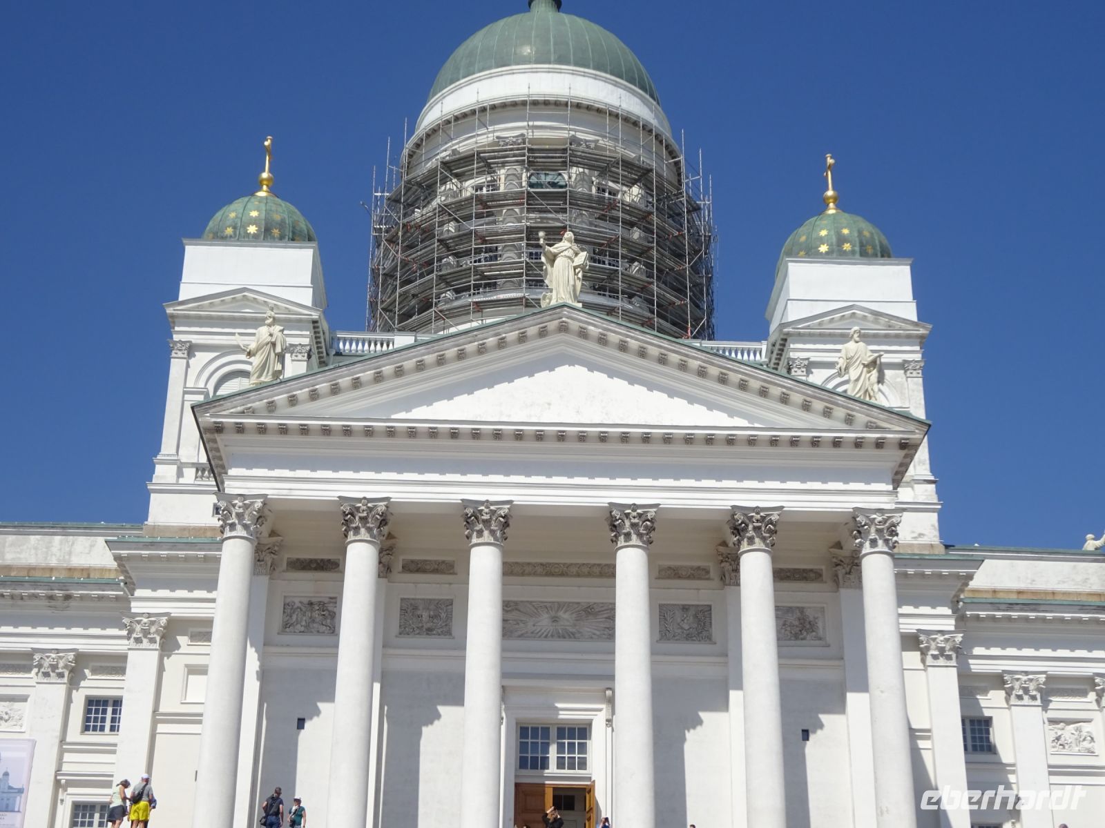 Helsinki ist unser nächster Zielort. Mit dem Bus fuhren wir vom Hotel zum Terminal D des Tallinner Hafens. In den letzten Jahren waren hier umfangreiche Bauarbeiten, die nun zum Glück abgeschlossen sind. Alles ist wirklich fein geworden, richtig nobel. Die Überfahrt nach Helsinki dauerte 2 Stunden. Vom Westhafen, wo wir in Helsinki angekommen waren, fuhren wir zum Riesenrad am zentralen Kanava-Terminal. Unsere örtliche Reiseleiterin Petra, inzwischen eine gute Bekannte, war gleich zur Stelle. Und so fuhren wir los. Wir erfuhren viel über die Geschichte der Stadt und des Landes, sahen die großen Eisbrecher im Hafen, machten einen Stopp am Senatsplatz und gingen auch hinein in den Dom, kamen vorbei am Mannerheim-Denkmal und auch am schönen Hauptbahnhof, sahen die Esplanade und auch die Uspenskij-Kathedrale. Auch über die Architektur der einzelnen Gebäude wusste Petra eine Menge zu berichten, nannte berühmte Namen. Weiter fuhren wir zum Olympiastadion, zum Sibelius-Denkmal und zur Felsenkirche. Natürlich erfuhren wir auch etwas über die aktuelle Politik des Landes, über die Sozialsysteme und über die finnisch-schwedische Zweisprachigkeit, die u.a. auf zweisprachigen Straßenschildern dokumentiert ist. Schließlich kamen wir an unserem Hotel Clarion an. Nach einer kleinen Pause gab es hier ein schmackhaftes Abendessen. Morgen erwarten uns weitere Sehenswürdigkeiten Finnlands. Wir fahren nach Porvoo und Turku. Vorher müssen wir aber wieder die Koffer packen.