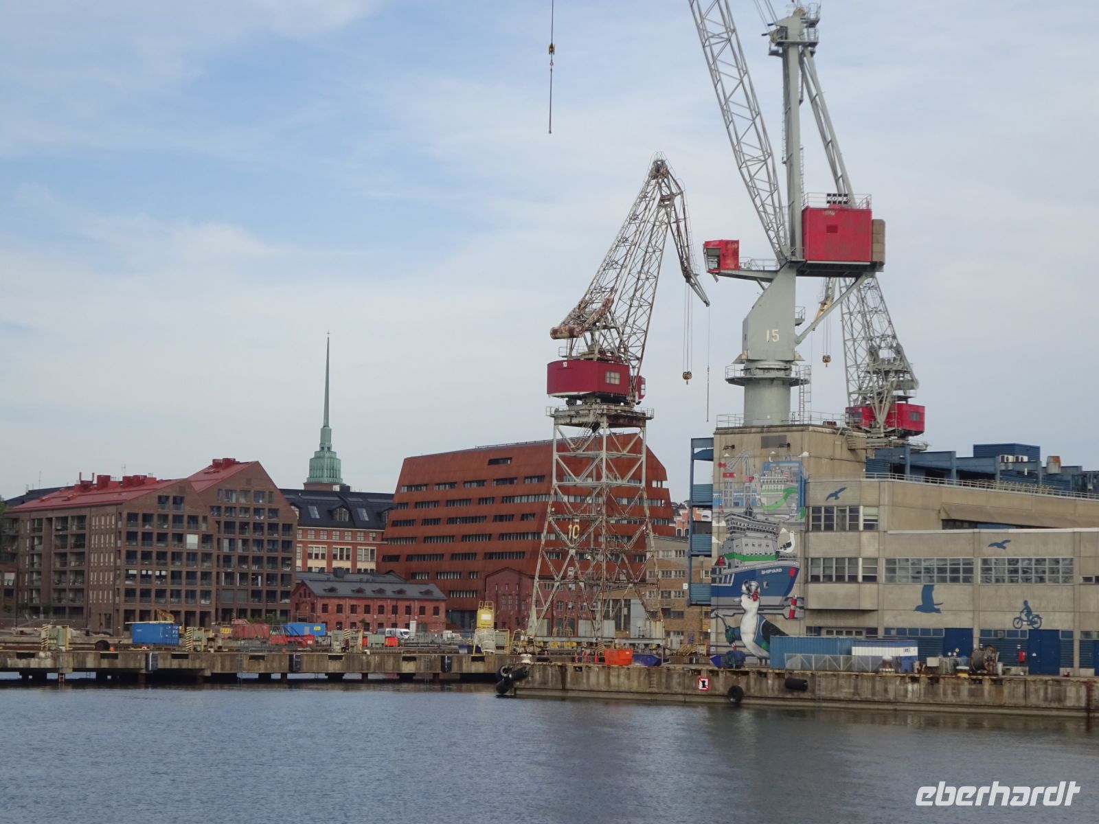 Pünktlich kam unsere Fähre in Stockholm an. Hier empfing uns unsere versierte örtliche Reiseleiterin Alexa schon, ebenfalls eine langjährige gute Bekannte. Die Stadt war um diese frühe Zeit, noch dazu am Sonntag, fast menschenleer. So kamen wir mit unserem Bus gut voran, ganz ohne Staus. Auch an der noch immer vorhandenen Großbaustelle „Schleusen“ kamen wir gut durch. Von Alexa erfuhren wir viel über die schwedische Geschichte und auch über den Alltag der Menschen hier. Wir sahen die Südinsel mit Ausblicken auf die Stadt, das Stadthaus, dann Djurgarden mit den zahlreichen Museen, das Botschaftsviertel auf Östermalm und schließlich das Geschäftsviertel und dann vor allen Dingen noch Gamla Stan, die herrliche Altstadt von Stockholm. Das Schloss und seine Museen, der Hafen, das Nobel-Museum und auch die Geschichte Alfred Nobels und seiner Stiftung sind für uns interessante Themen. Aber auch die engen Gassen der Altstadt mit schönen Häusern aus dem 17. Jh. zogen uns in ihren Bann. Alexa nahm sich ausreichend Zeit, auch unsere Fragen zu beantworten. Für die anschließende Freizeit hatten wir alle schon Pläne: Spaziergänge, Nationalmuseum, Nobelmuseum, Schloss und natürlich die große Wachablösung im Schlosshof oder einfach nur ein Bummel durch die Straßen. Die Stadt füllte sich nach und nach mit Besuchern. Auch Kreuzfahrtschiffe waren angekommen. Der Nachmittag gehörte einem Besuch im berühmten und meistbesuchten Museum Stockholms, dem Vasamuseum. Wir sahen zunächst einen Film über die Vasa, ihren Bau, ihre Hebung und ihre Restaurierung. Danach gingen wir durch die Ausstellung, die sich über mehrere Etagen erstreckt und sich noch in kleineren Seitenabteilungen fortsetzt. Nach diesem langen und erlebnisreichen Tag freuten wir uns nun auf unser Hotel Scandic am Stockholmer Messegelände und natürlich auch auf das Abendessen.