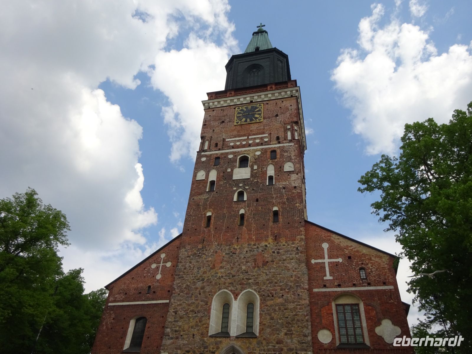 Und wir verlassen Helsinki heute schon wieder. Der Weg führt uns in die zweitälteste finnische Stadt, gelegen am Finnischen Meerbusen, nach Porvoo. Der Bus parkte in Porvoo am Busbahnhof, wir gingen das kurze Stück zur Altstadt mit dem Rathaus auf dem kleinen Marktplatz und schönen Gebäuden ringsum. Noch ein wenig weiter hinauf, schon waren wir am Dom. Das ist eine Feldsteinkirche aus dem 15. Jh., die zu den bedeutendsten Kirchen Finnlands gehört. Unten in der Stadt lockten anschließend die Geschäfte in den kleinen Straßen. Sehenswert sind auch die roten Speicherbauten am Fluss, heute umfunktioniert zu begehrten Ferienwohnungen. Am Nachmittag war Turku, die älteste Stadt Finnlands unser Ziel. Hier angekommen, besuchten wir zunächst den imposanten Dom. Danach war noch Zeit für einen Bummel, entlang des Flusses oder durch das kleine Stadtzentrum. Nun ging es mit dem Bus zum Hafen, denn wir wollten ja mit der Nachtfähre nach Stockholm. Wieder gab es ein reichhaltigen Abendessen an Bord. Das Frühstück nahmen wir am nächsten Morgen schon kurz vor Stockholm ein, auf der Fahrt durch die idyllischen Schärengärten.