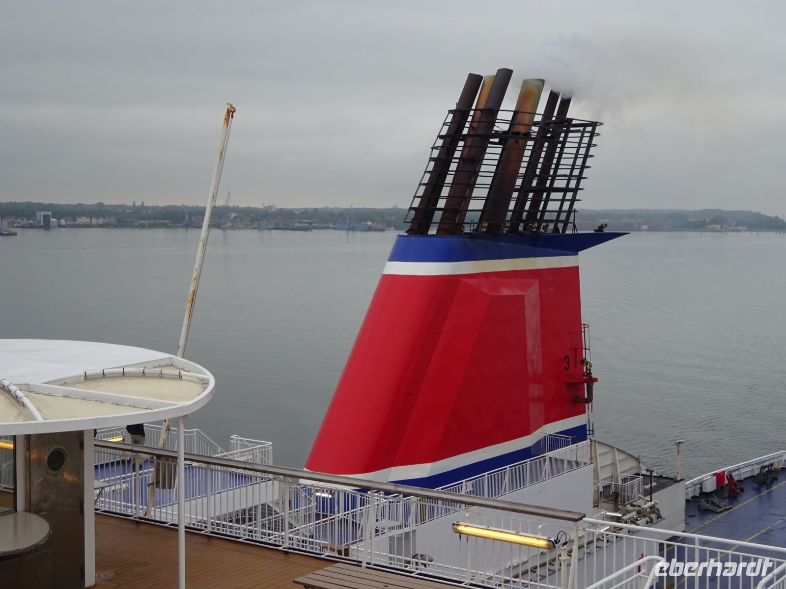 Während des Frühstücks an Bord kam schon das Marinedenkmal von Laboe in Sicht, ein untrügliches Zeichen der nahenden Einfahrt in die Kieler Förde. Im Hafen verabschiedeten wir uns dann am Bus von unseren Reisegästen, die in Kiel aussteigen und den Heimweg von hier individuell fortsetzen wollten. Einige nutzten auch die Gelegenheit, Kiel noch ein wenig zu erkunden. Für die wenigen verbliebenen Gäste begann die Rückreise nach Dresden.