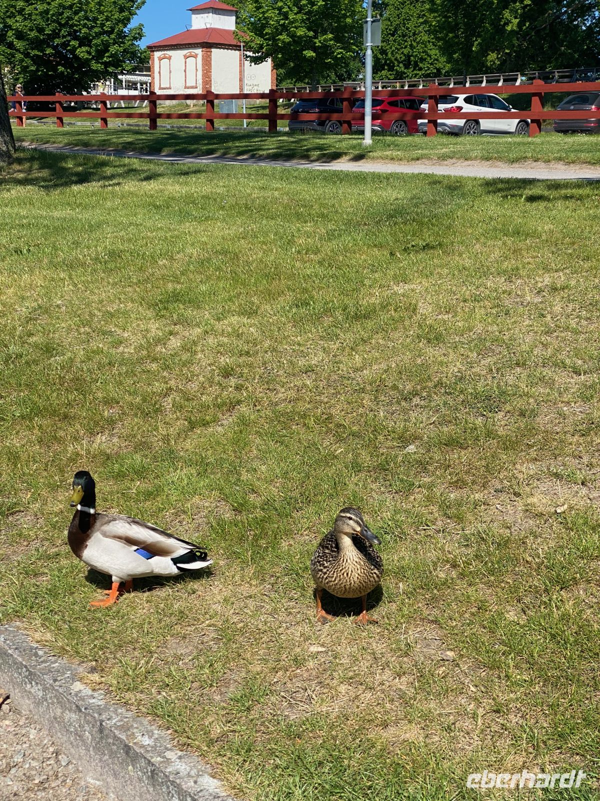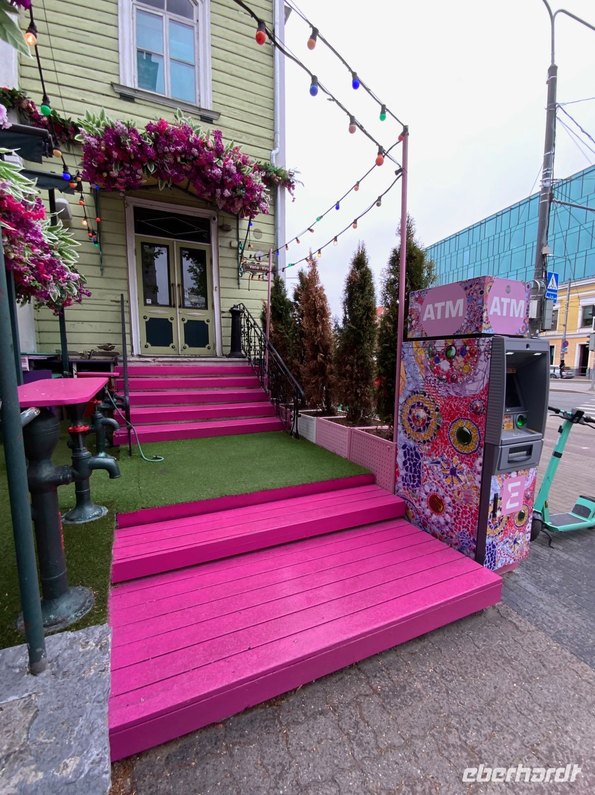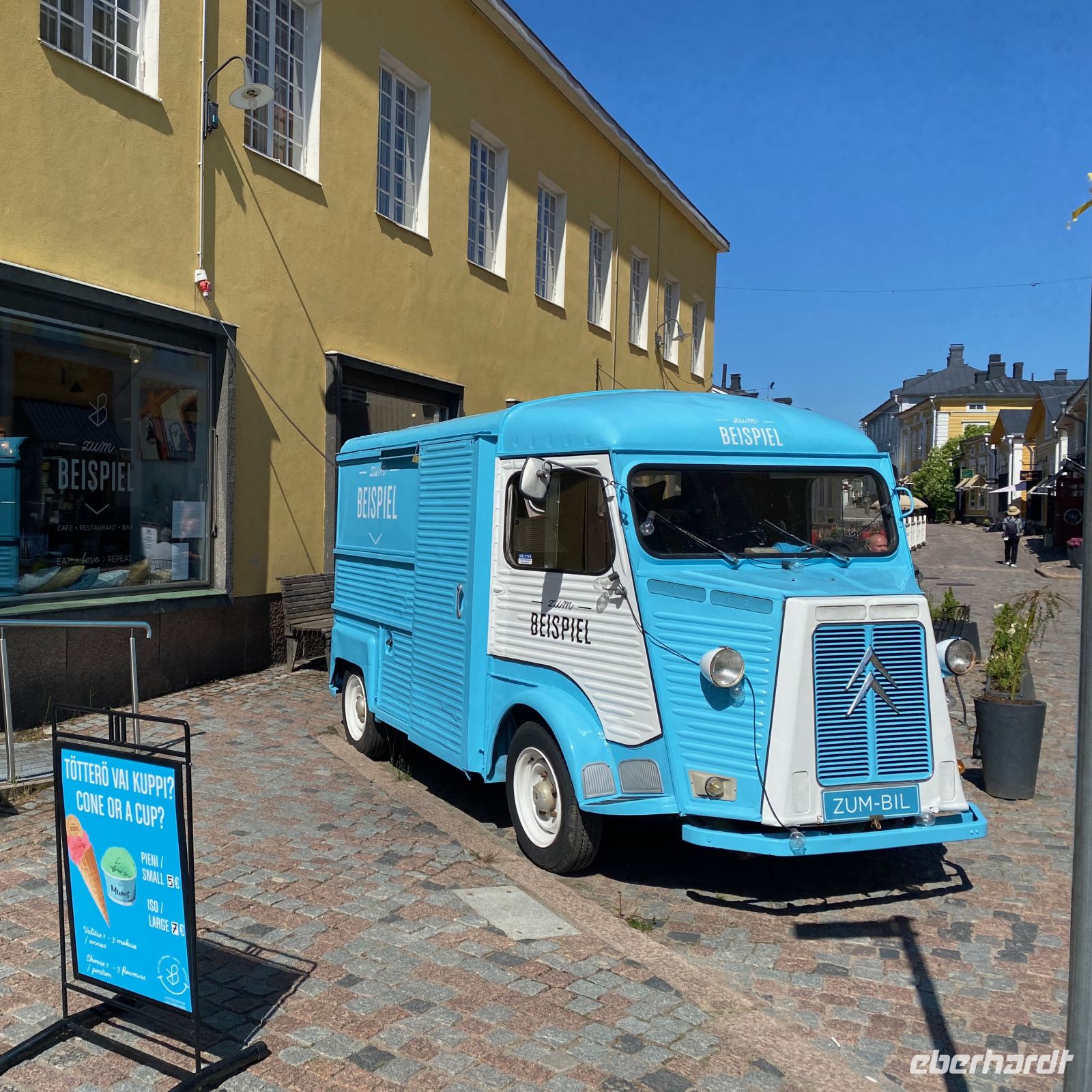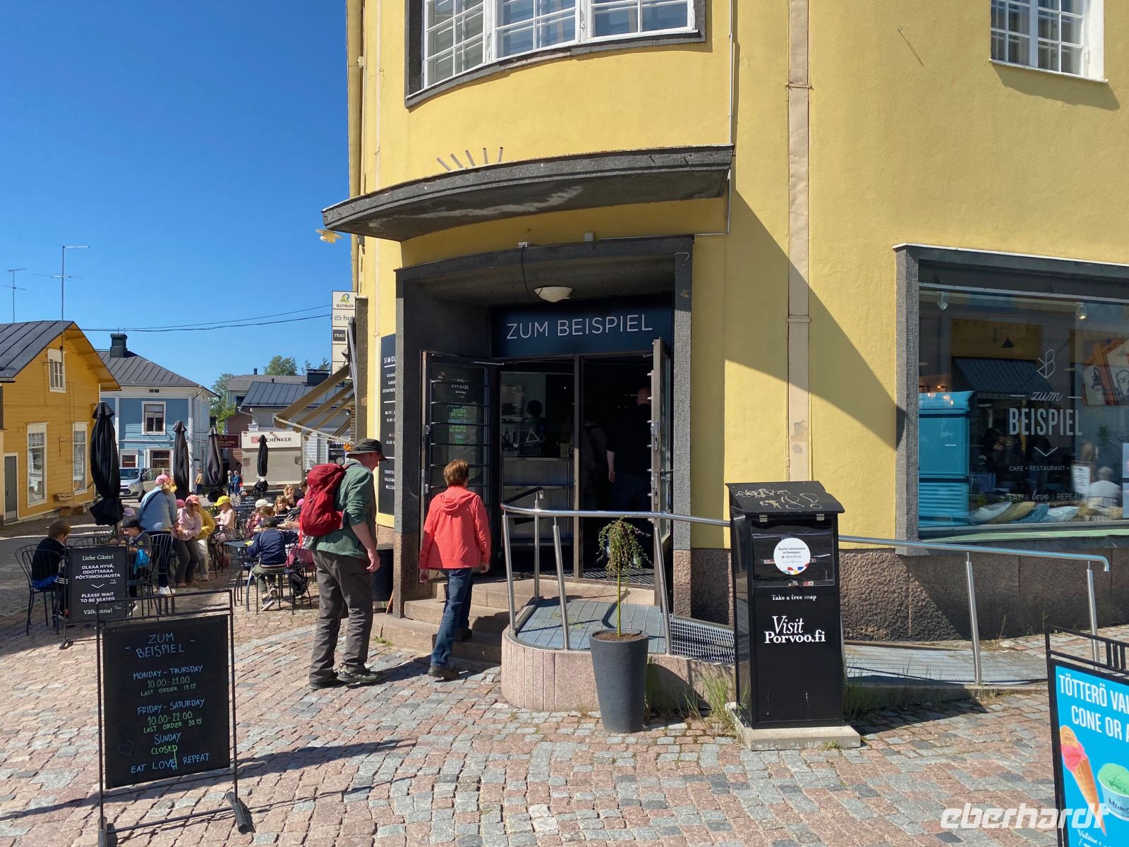 In Helsinki haben wir schon erfahren, dass Schwedisch in Finnland eine besondere Rolle spielt, die Finnlandschweden sind eine bedeutende Minderheit. Hier, in Porvoo, sind sie aber eine stolze Mehrheit von zwei Dritteln, es kommt uns tatsächlich alles ein bisschen schwedisch vor – und das im allerbesten Sinne. Rein praktisch erleben wir auch hier, dass Deutsch hier ebenfalls eine geschätzte Sprache ist. Das beliebteste Lokal im Ort zum Beispiel heißt genau so, und dort gibt es auf Deutsch eine Tüte Eis, auf Schwedisch „en glassstrut“ und auf Finnisch „jäätelödotterö“. Alle drei schmecken übrigens gleich gut im herrlichen Sonnenschein!