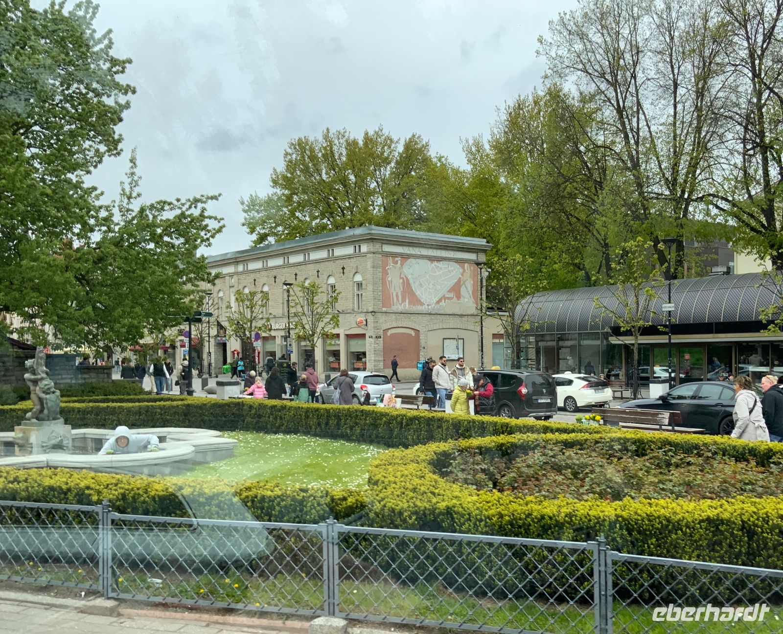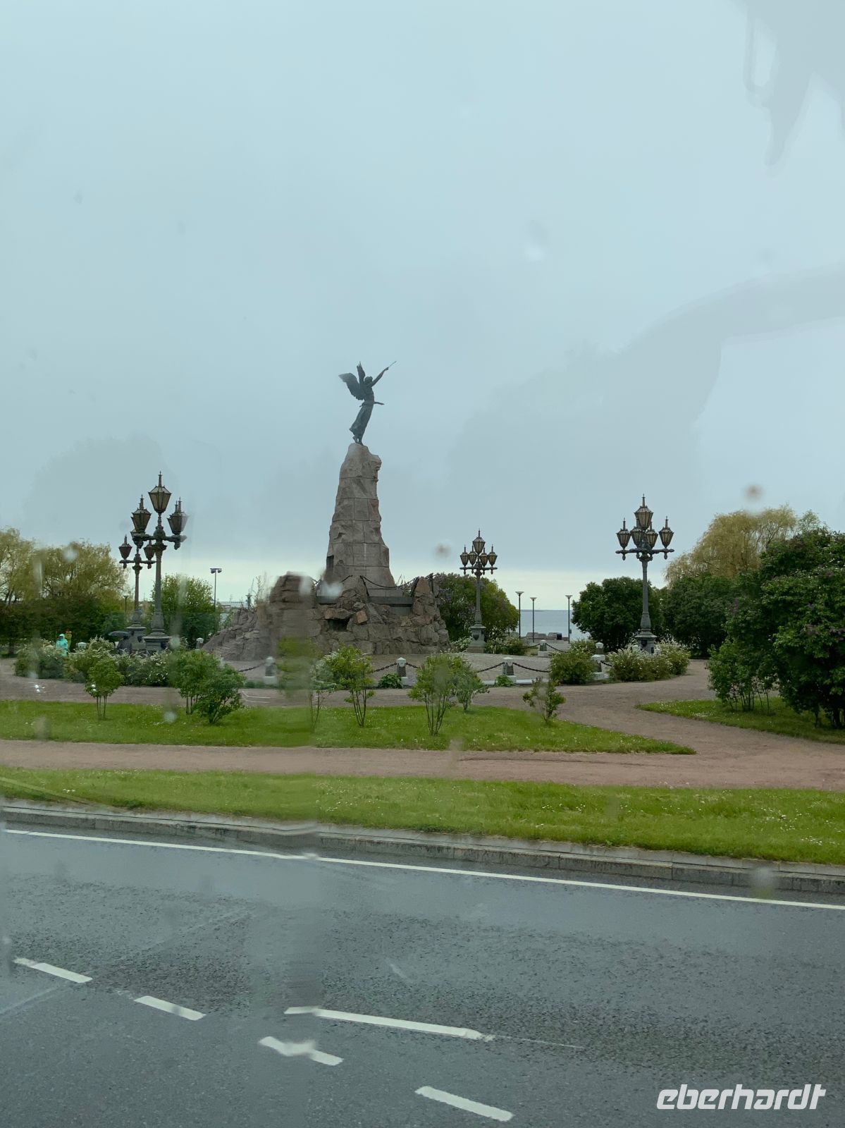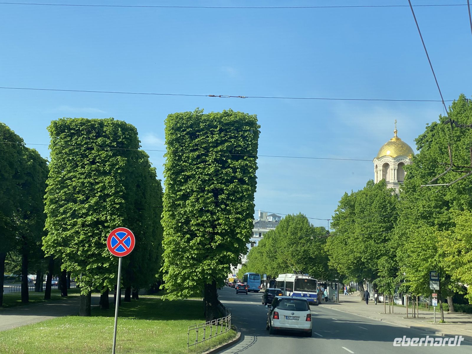 Nach dem Frühstück werden wir bereits freundlich begrüßt. Irina, unsere Stadtführerin, erwartet uns bei Sonnenschein am Bus vor dem Hotel. Wir beginnen unsere Fahrt durch Riga mit dem Siegespark, der direkt vor dem Hotel liegt. Zur Zarenzeit hieß er Peterspark, und zu kommunistischer Zeit hatte er den etwas anstrengenden Namen: „Park des 22. Kongresses der kommunistischen Partei der Sowjetunion“.