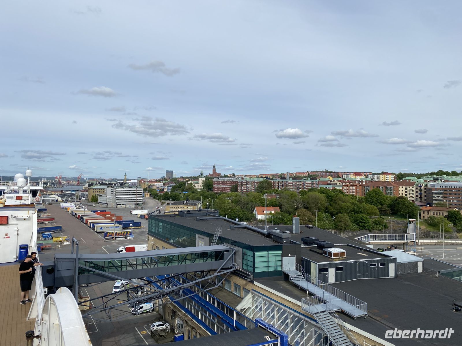Wohlbehalten erreichen wir dann gegen zehn Uhr den Hafen: „Välkommen till Sverige“ – man spricht das übrigens: „Wählkommen till Swerje“ – aus. Was das wohl heißen mag?
