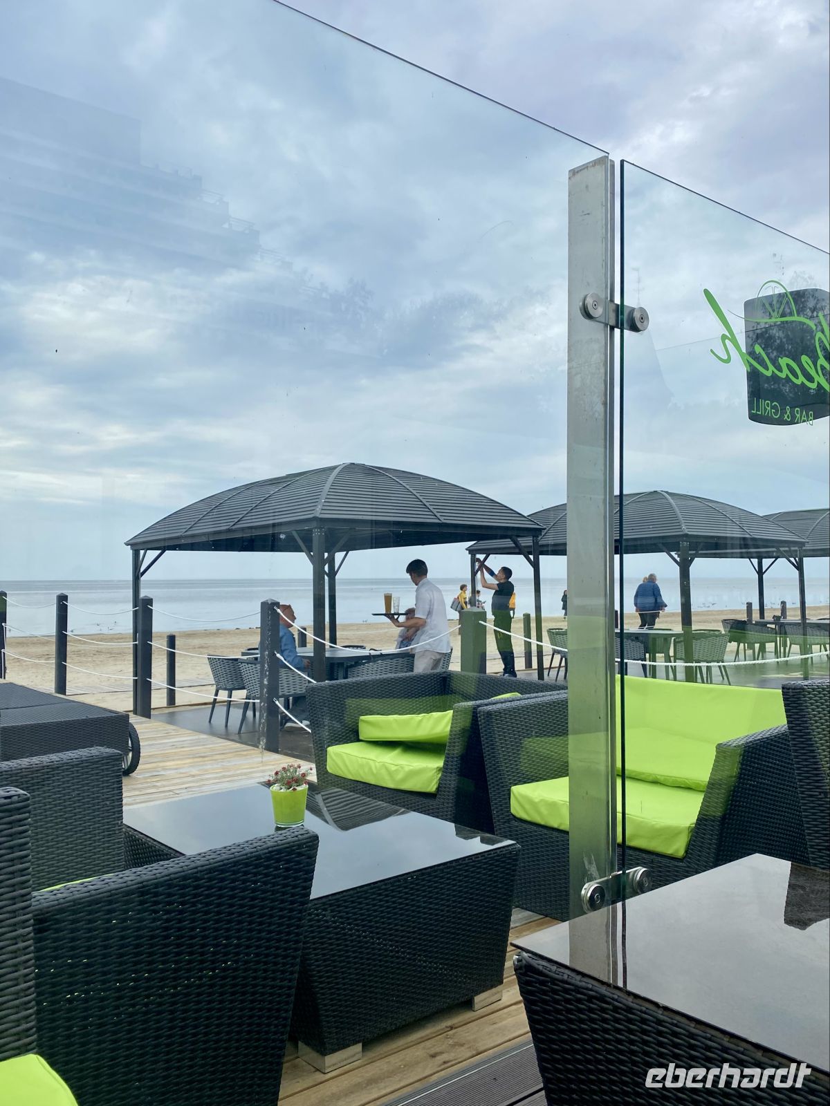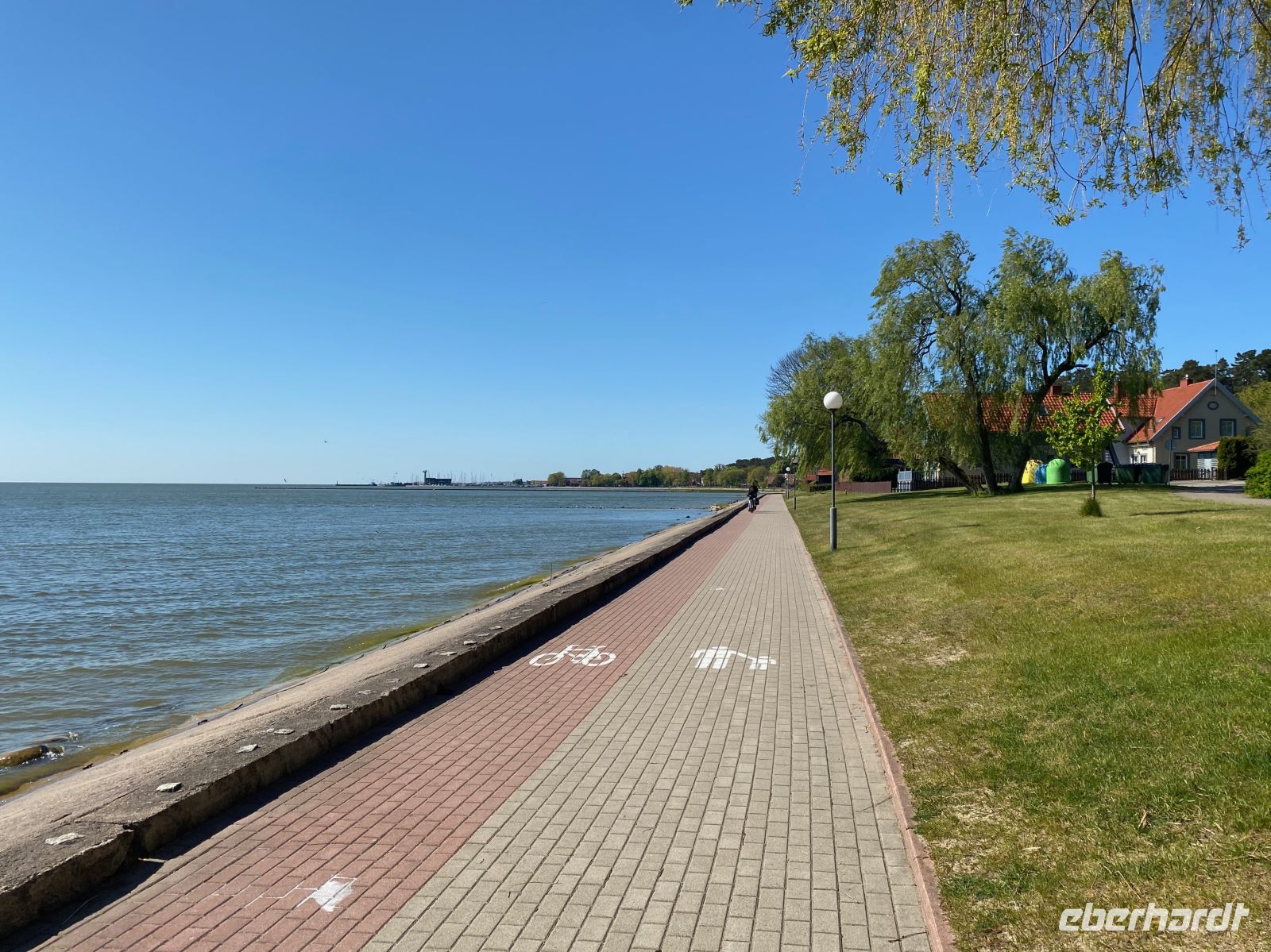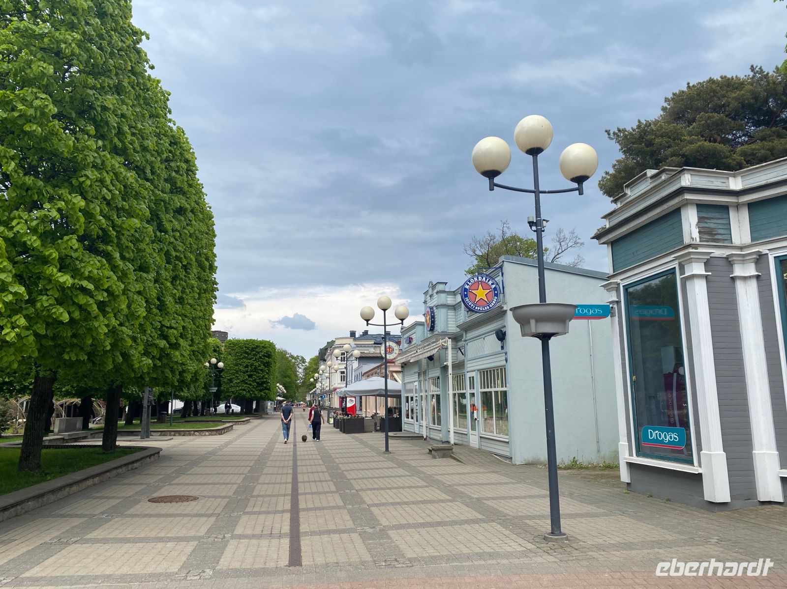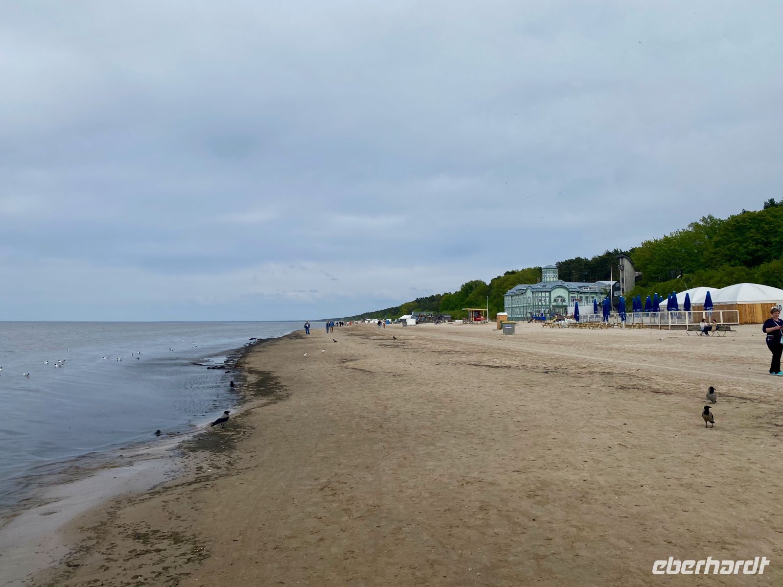 Voller neuer Eindrücke treffen wir uns wieder am Bus, nun geht es aus der Stadt raus an den Strand, nach Jūrmala, mit dem alten deutschen Namen auch sehr sinnvoll „Riga‑Strand“ genannt. Hier erleben wir die Atmosphäre eines eleganten Ostseebades mit Tradition und spazieren an der leise rauschenden Ostsee entlang; man nannte das früher auch die baltische Riviera, kein Wunder. Allerdings ist jetzt Mitte Mai noch kühl, so ist es recht leer am Wasser. So können wir die Weite des Strandes aber auch besonders eindrucksvoll erleben.