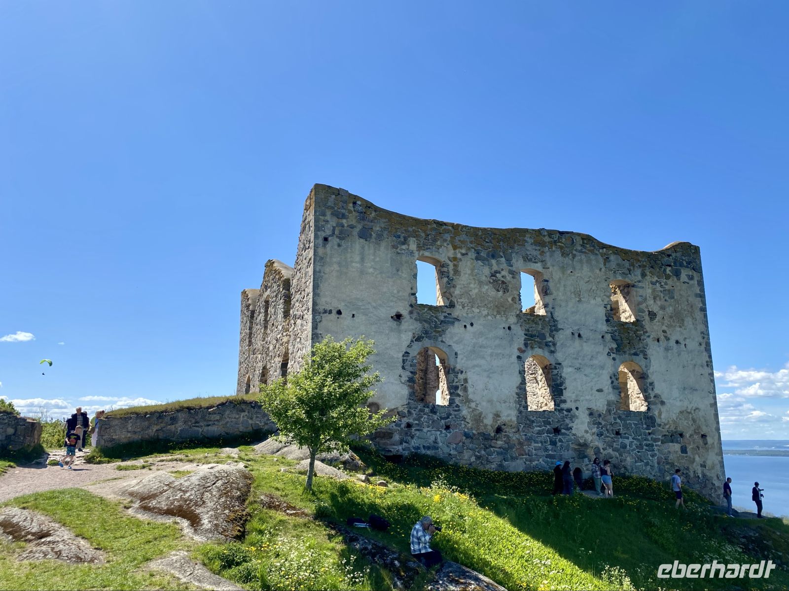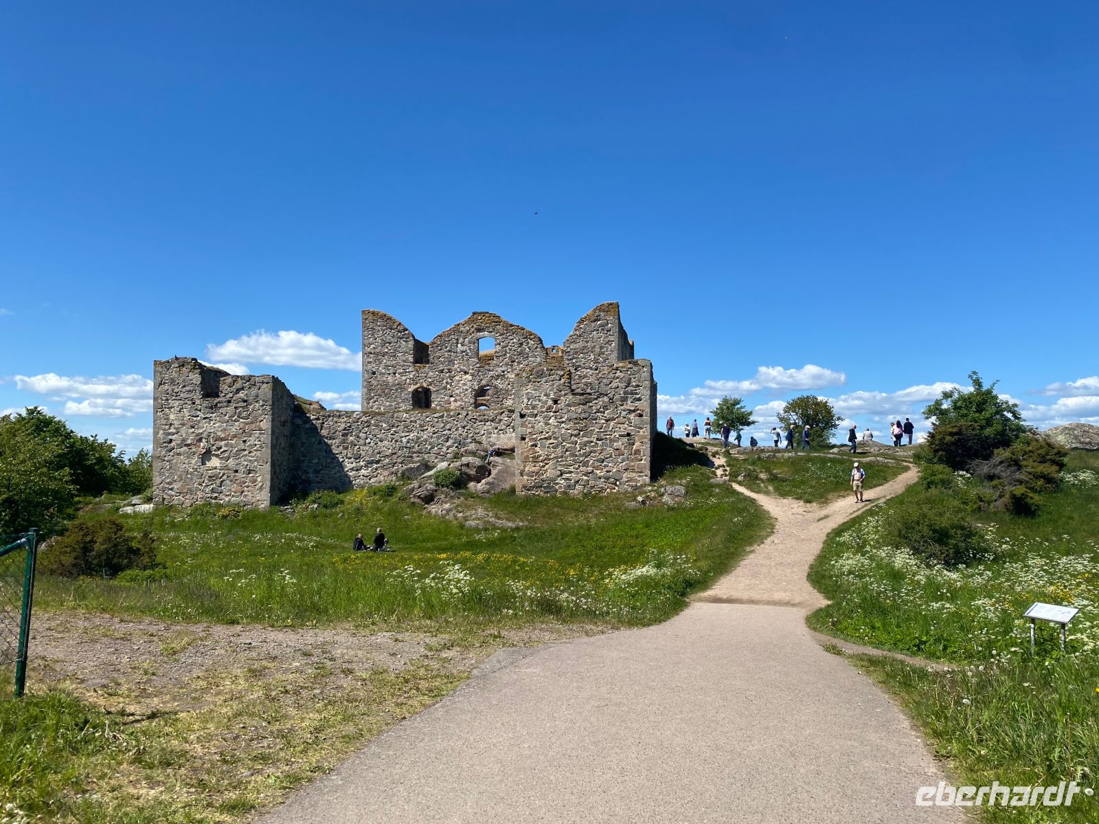 Unsere Mittagspause verbringen wir wieder an einem See, allerdings an einem etwas ausgedehnteren, am Vättern – größer geht es in Schweden nicht. Hier steht die Ruine des alten Brahehus, eines Schlosses aus der Zeit des Schiffes Vasa, auch mit einer tragischen Geschichte, aber dennoch von faszinierender Schönheit auch als Ruine.