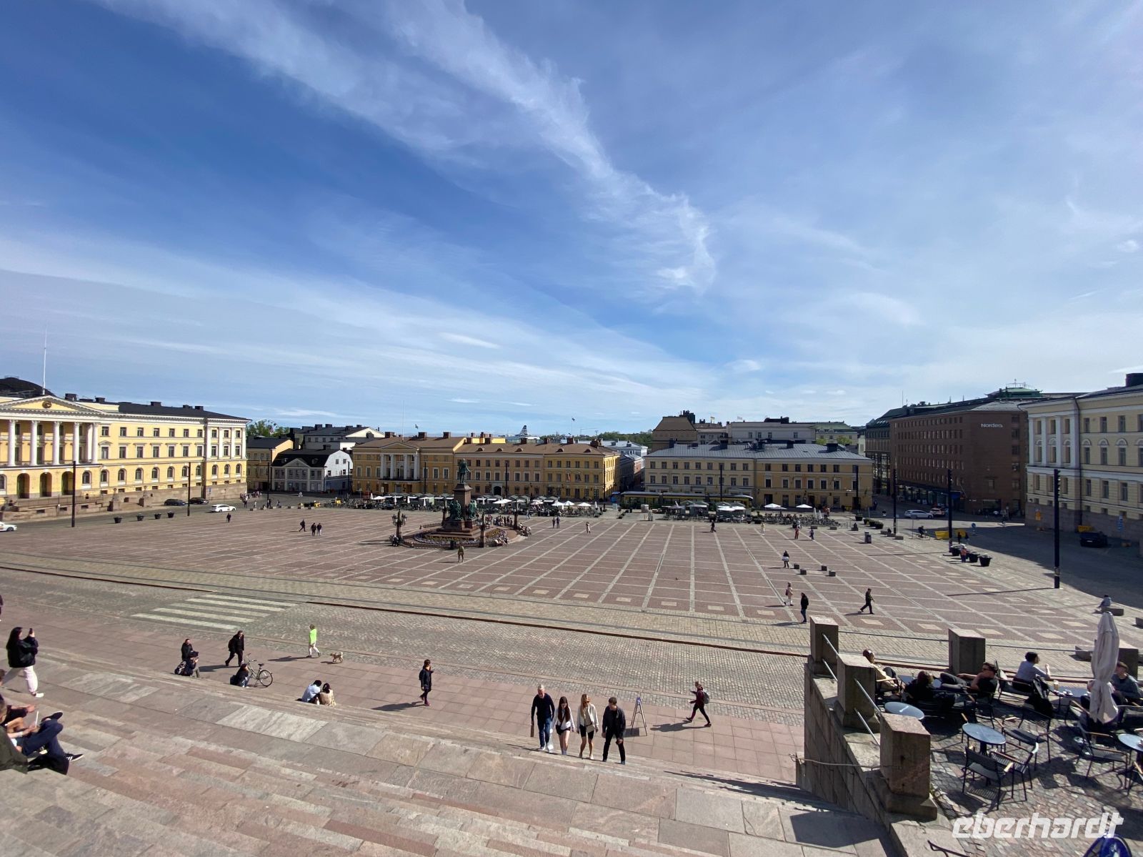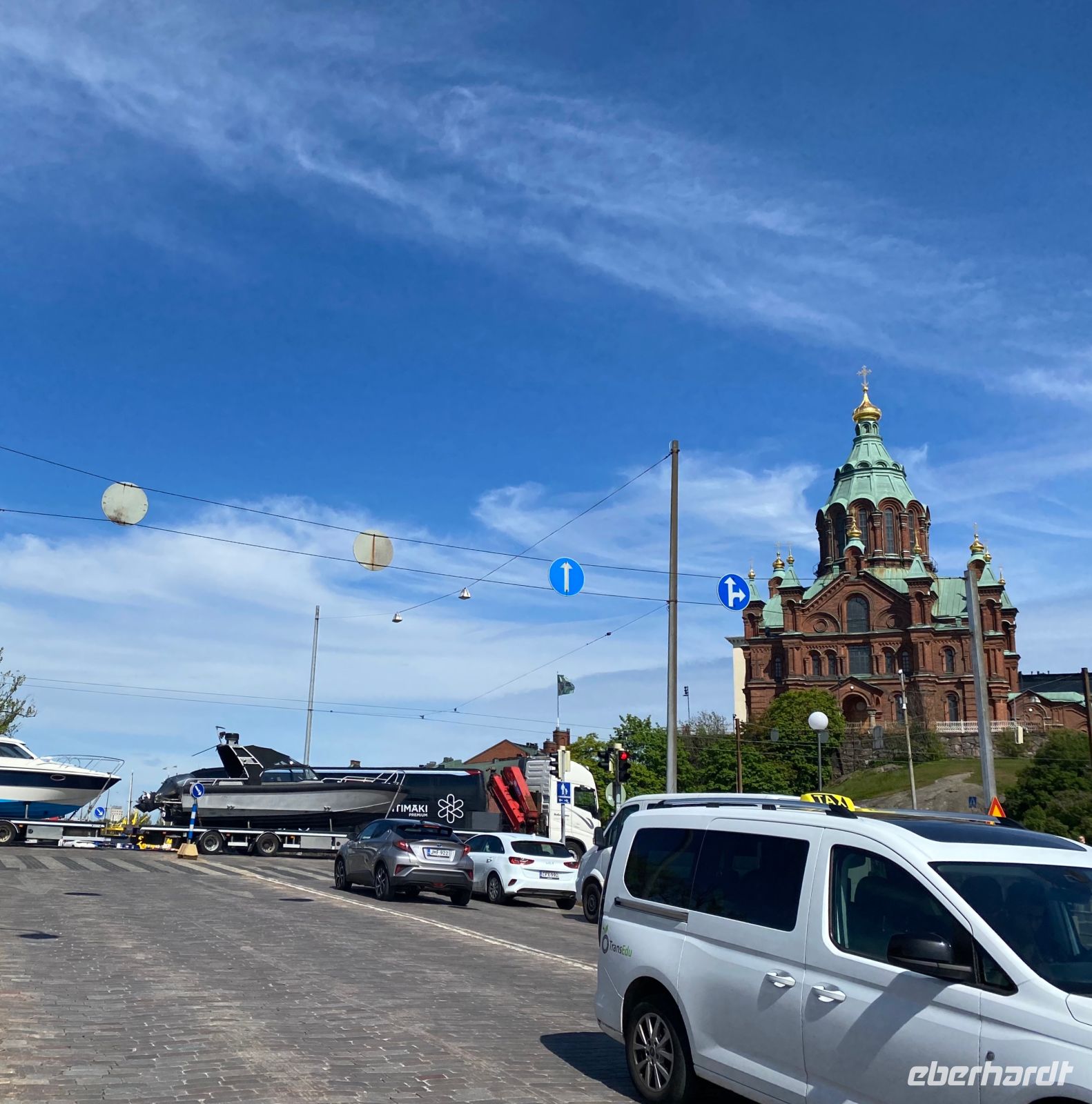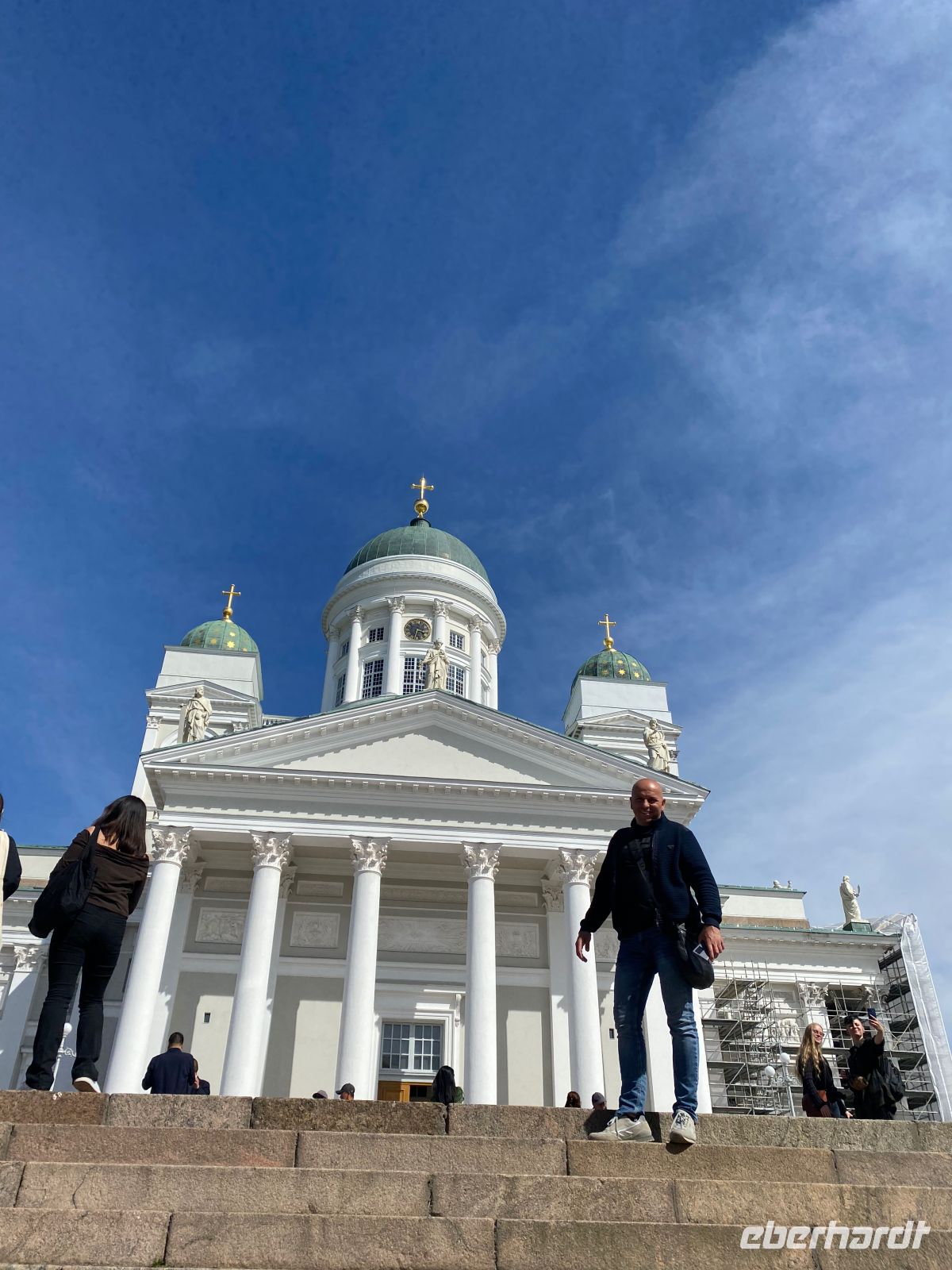 Immer wieder steigen wir aus, um ganz besondere Orte zu Fuß zu besuchen, das Sibelius‑Denkmal und die Felsenkirche gehören dazu. Wir sehen natürlich auch den Senatsplatz, der vom markanten Dom überragt wird, und vieles mehr.