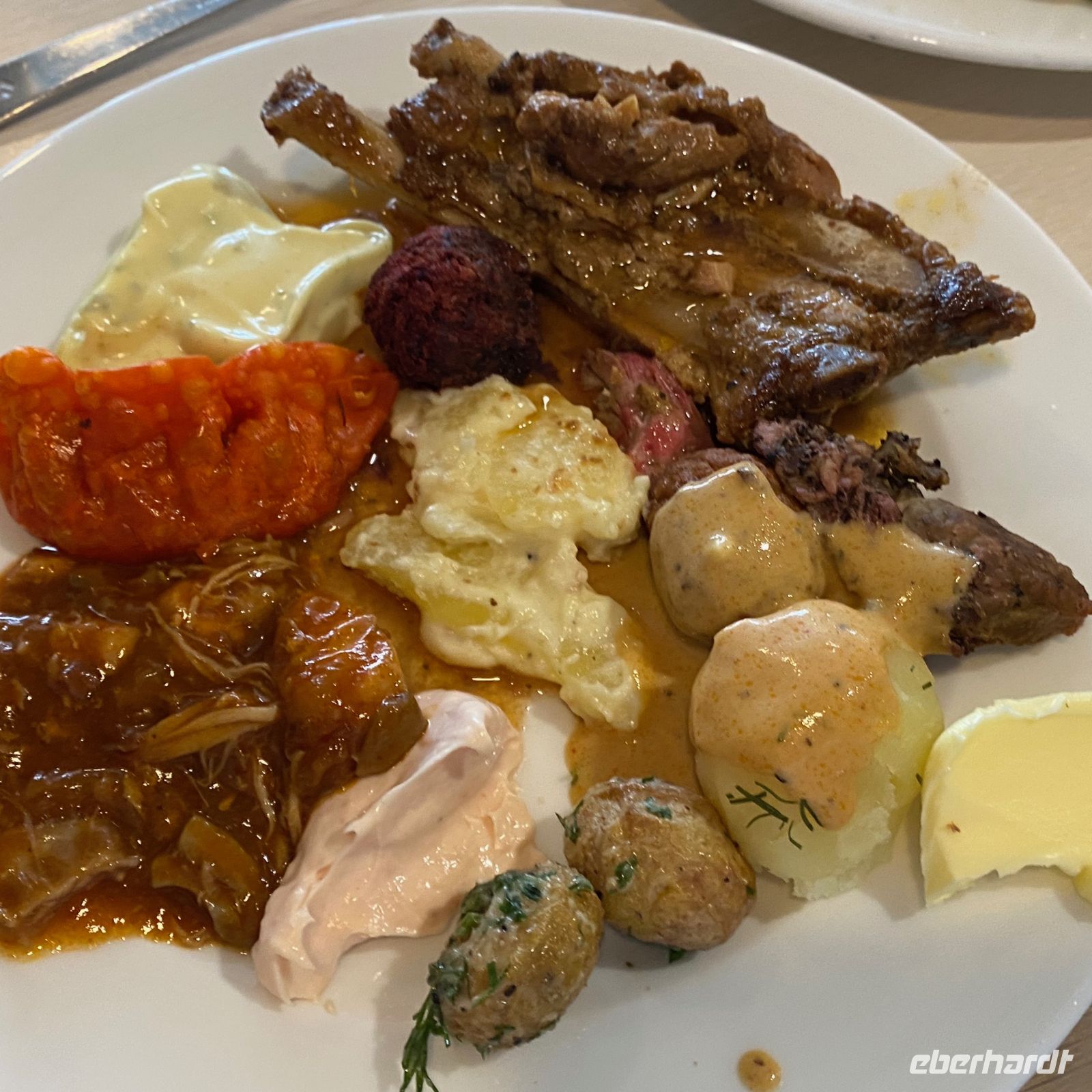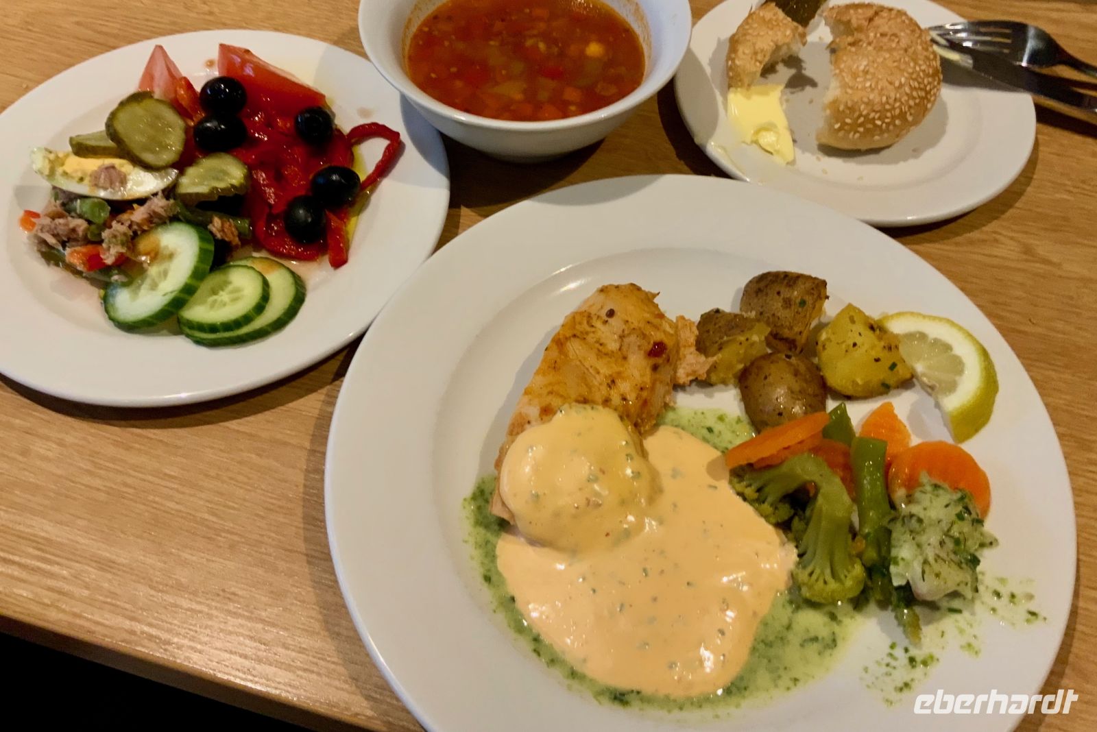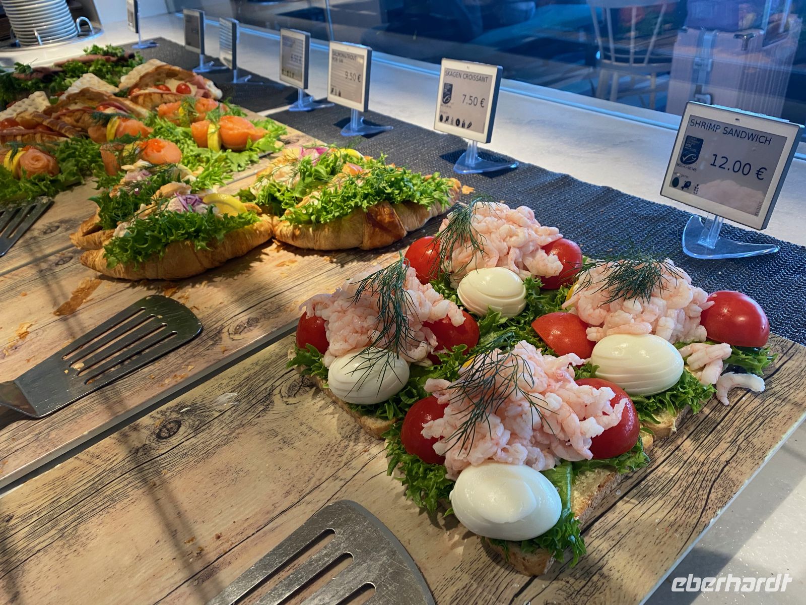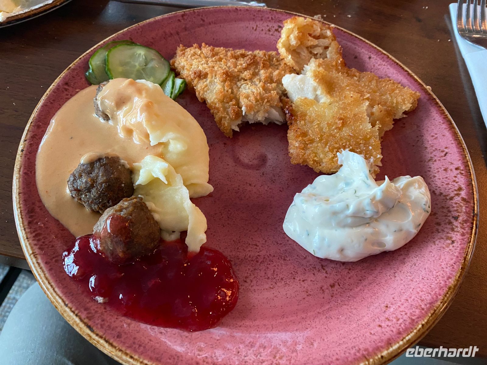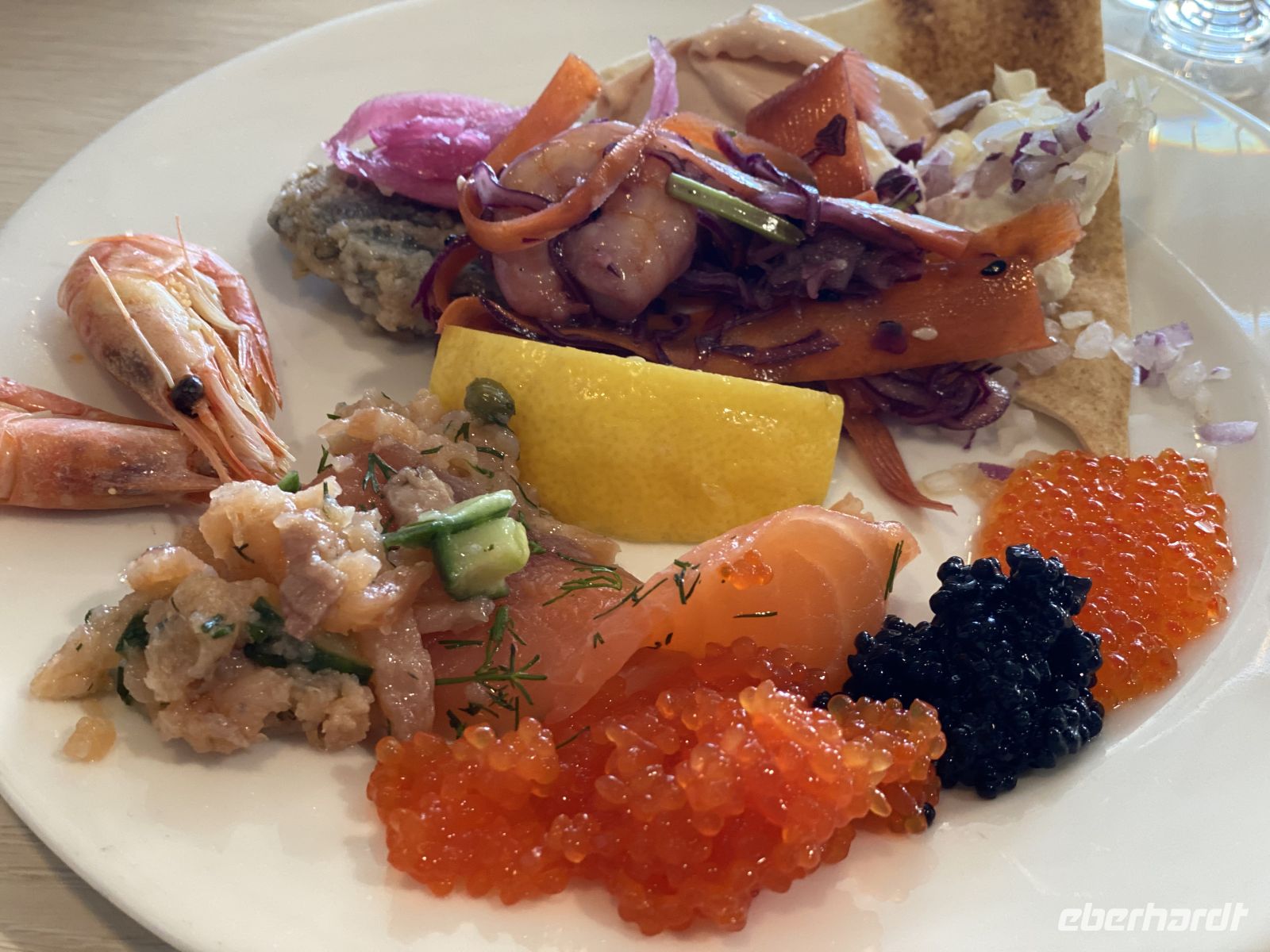 Im Rennen der besten Abendbuffets an Bord hat unser Schiff mit seinem skandinavischen Sortiment einen Platz ganz weit vorne. Wir genießen und stoßen noch einmal an auf unsere Fahrt einmal rund um die Ostsee und steuern später dann friedlich schlafend über den Großen Belt der Heimat entgegen.