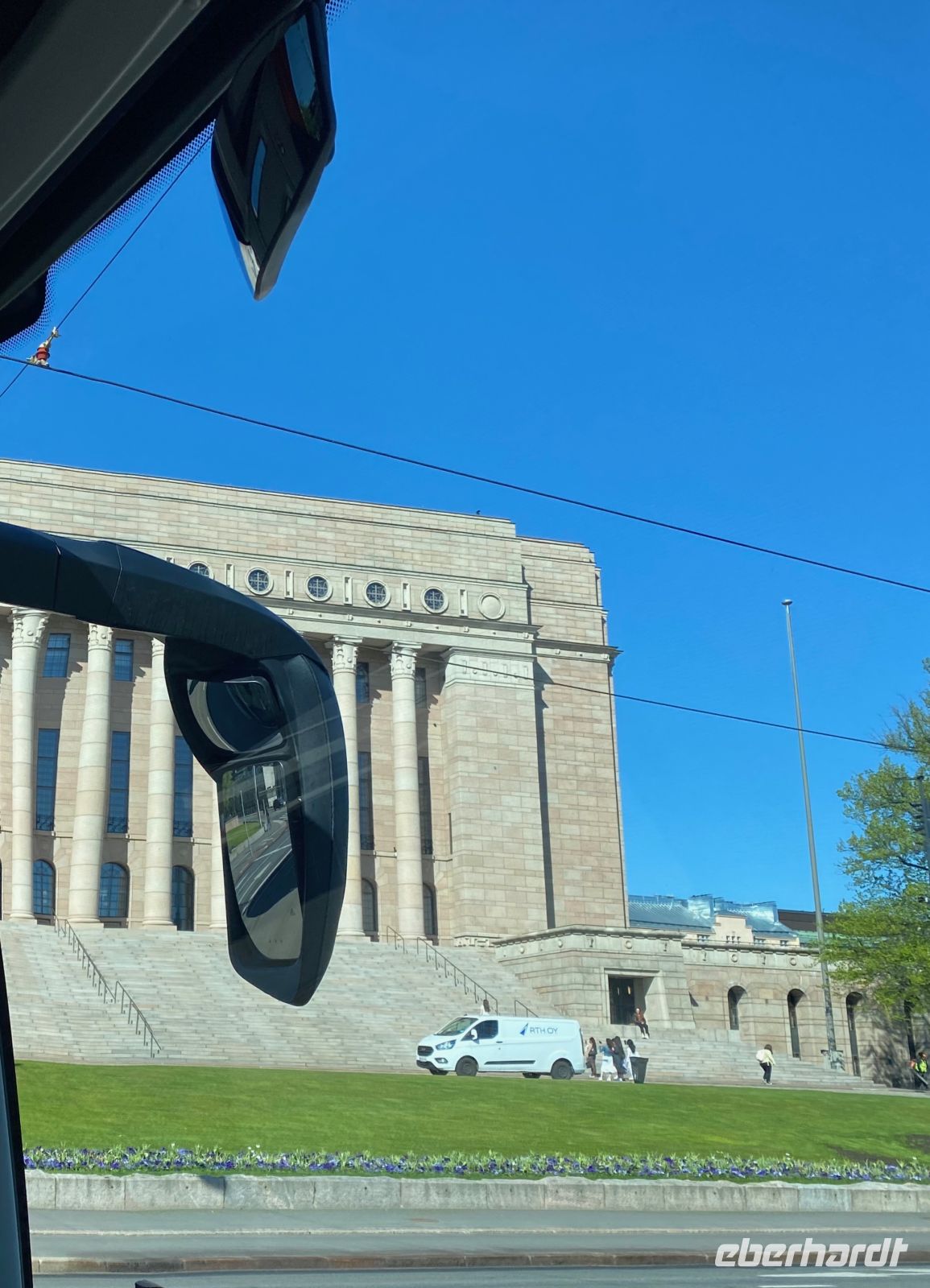 Noch ist lange gar nicht Sommer, dem Wetter nach allerdings scheint es Juli zu sein, nur ohne Hitze vielleicht. Bei prächtigem Sonnenschein begrüßt uns Kerstin, unsere Stadtführerin, die uns informativ und unterhaltsam Helsinki während unserer Stadtrundfahrt näher bringt.