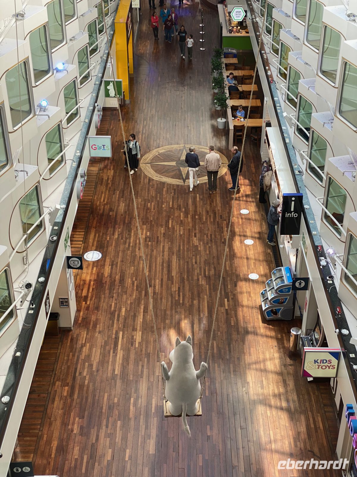 Gastgeber an Bord ist niemand Geringeres als Mumin, der fantastische kleine Troll aus den Erzählungen von Tove Jansson, einer der berühmtesten Finnlandschwedinnen. An Bord ist er überall präsent und mittlerweile weltweit ein sehr prominenter Botschafter seines Heimatlandes geworden.