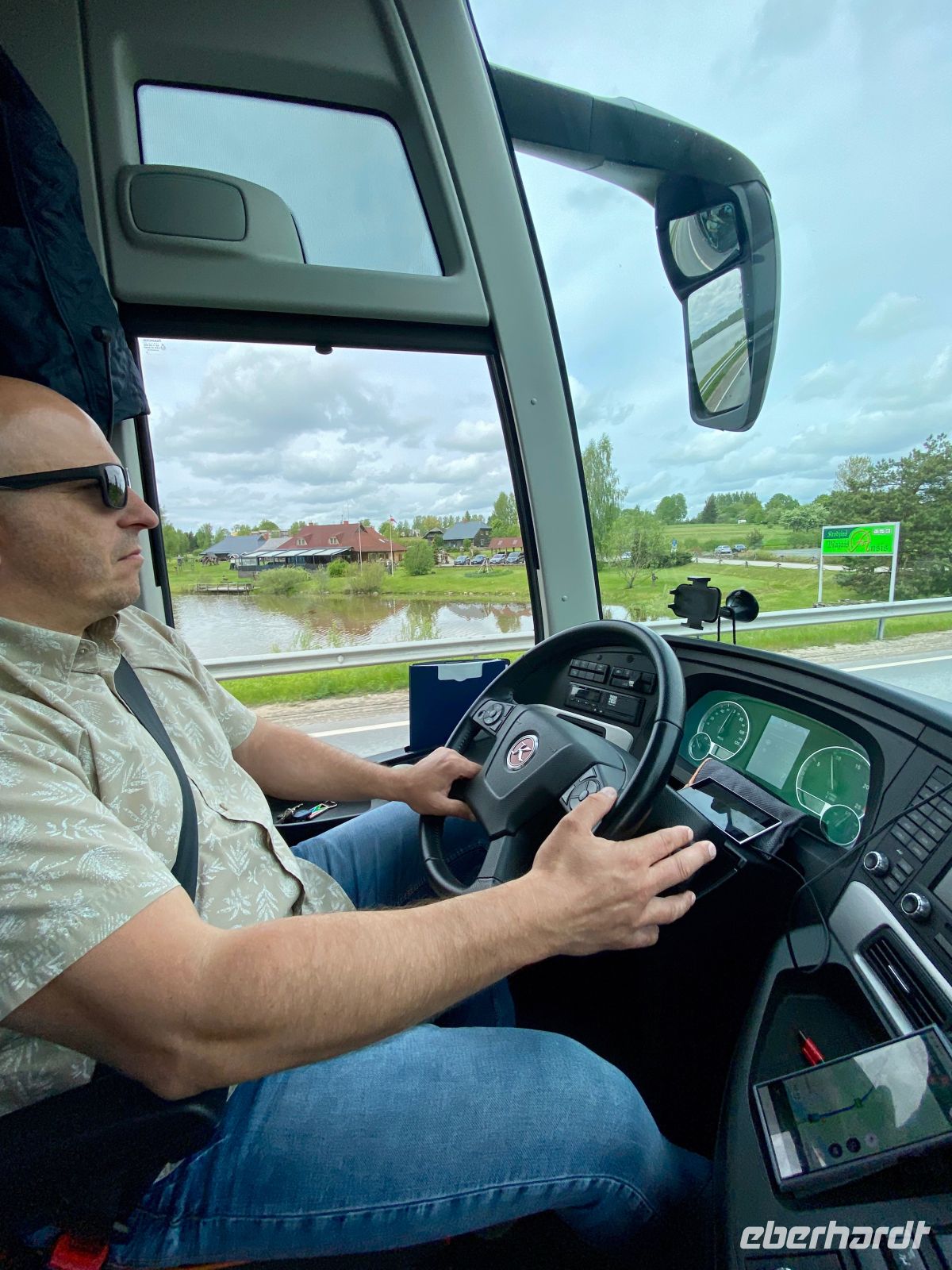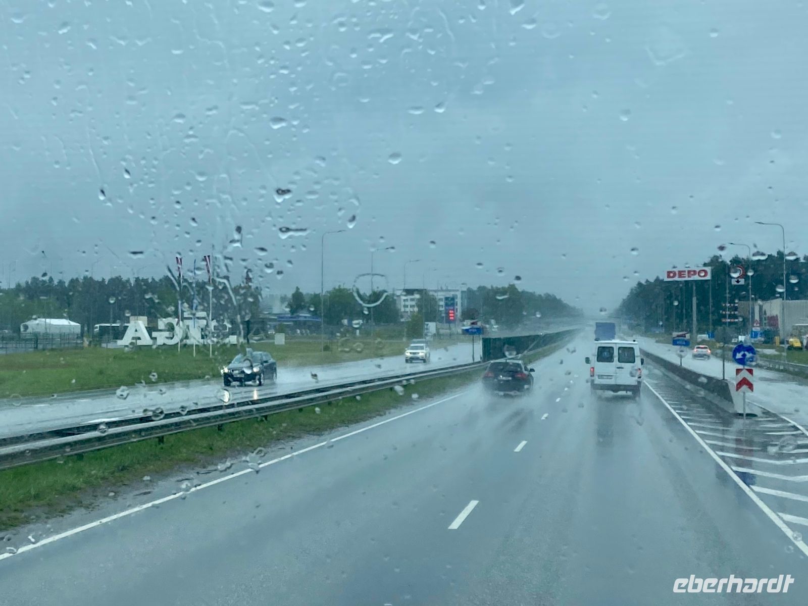 Heute verlassen wir Riga, wir haben Glück – es regnet in Strömen! Warum ist das ein Glück? Weil wir erst einmal eine längere Strecke im Bus sitzen. Unser Plan ist, dass das Wetter immer schön ist, wenn wir es brauchen, und das sei schon verraten: bis auf einen leichten Regen im späteren Tagesverlauf geht dieser Plan für die ganze Reise bestens auf.