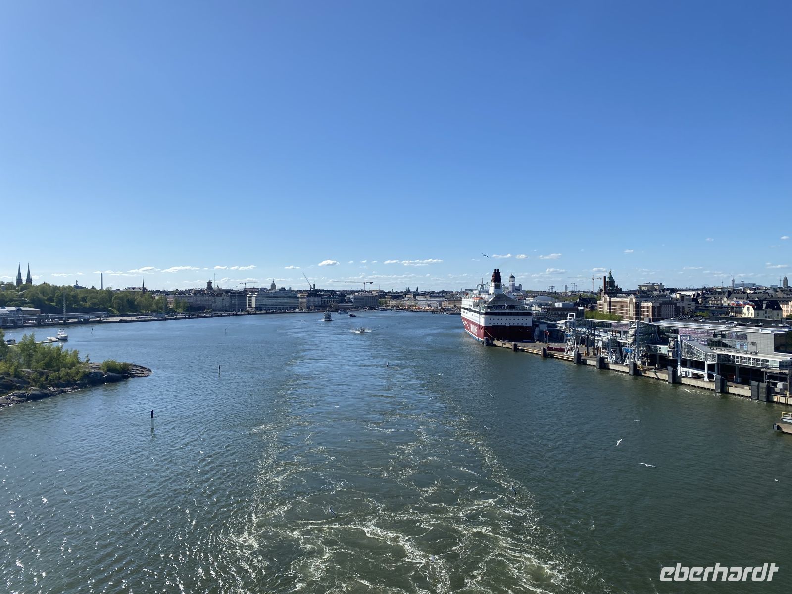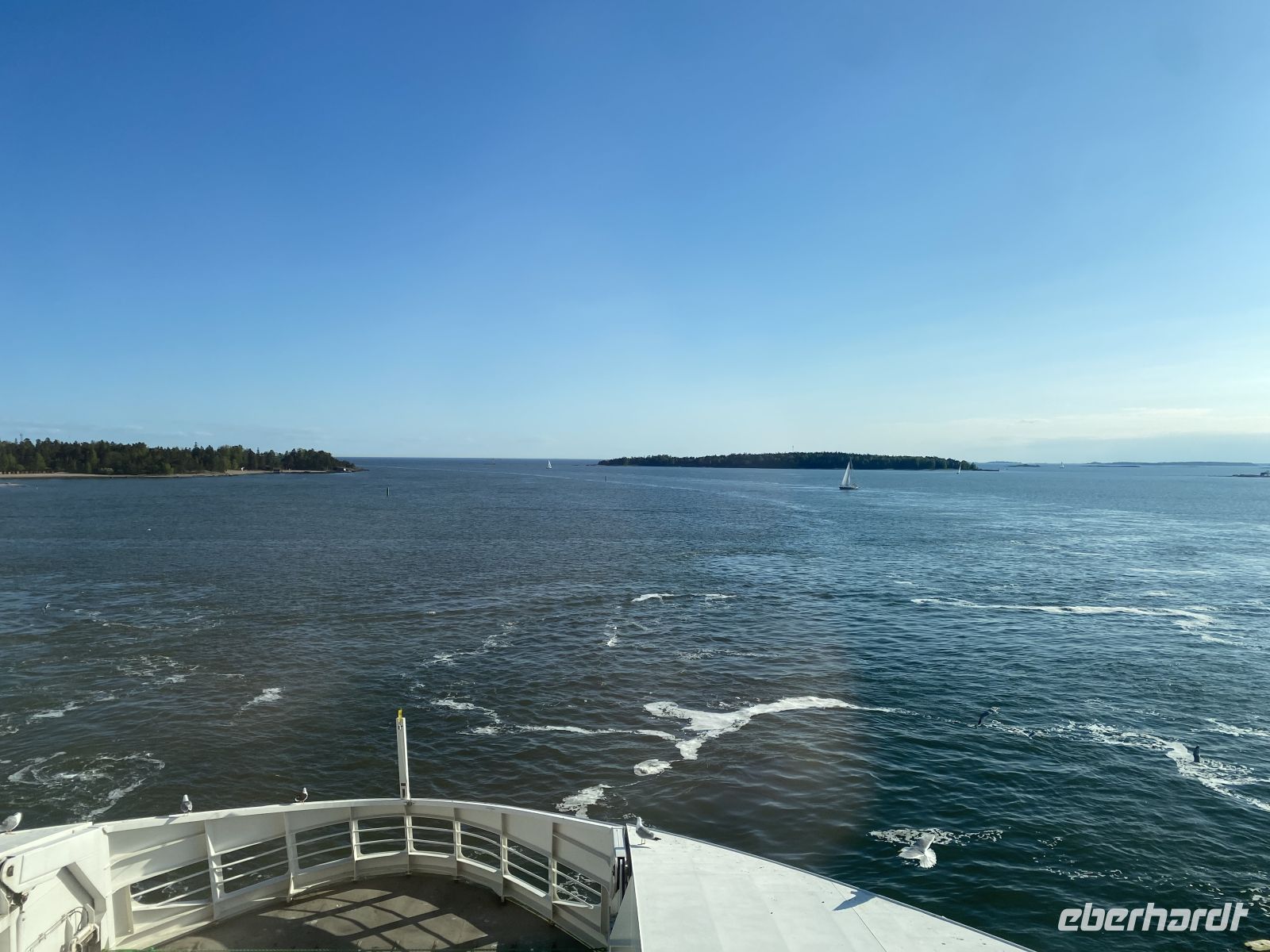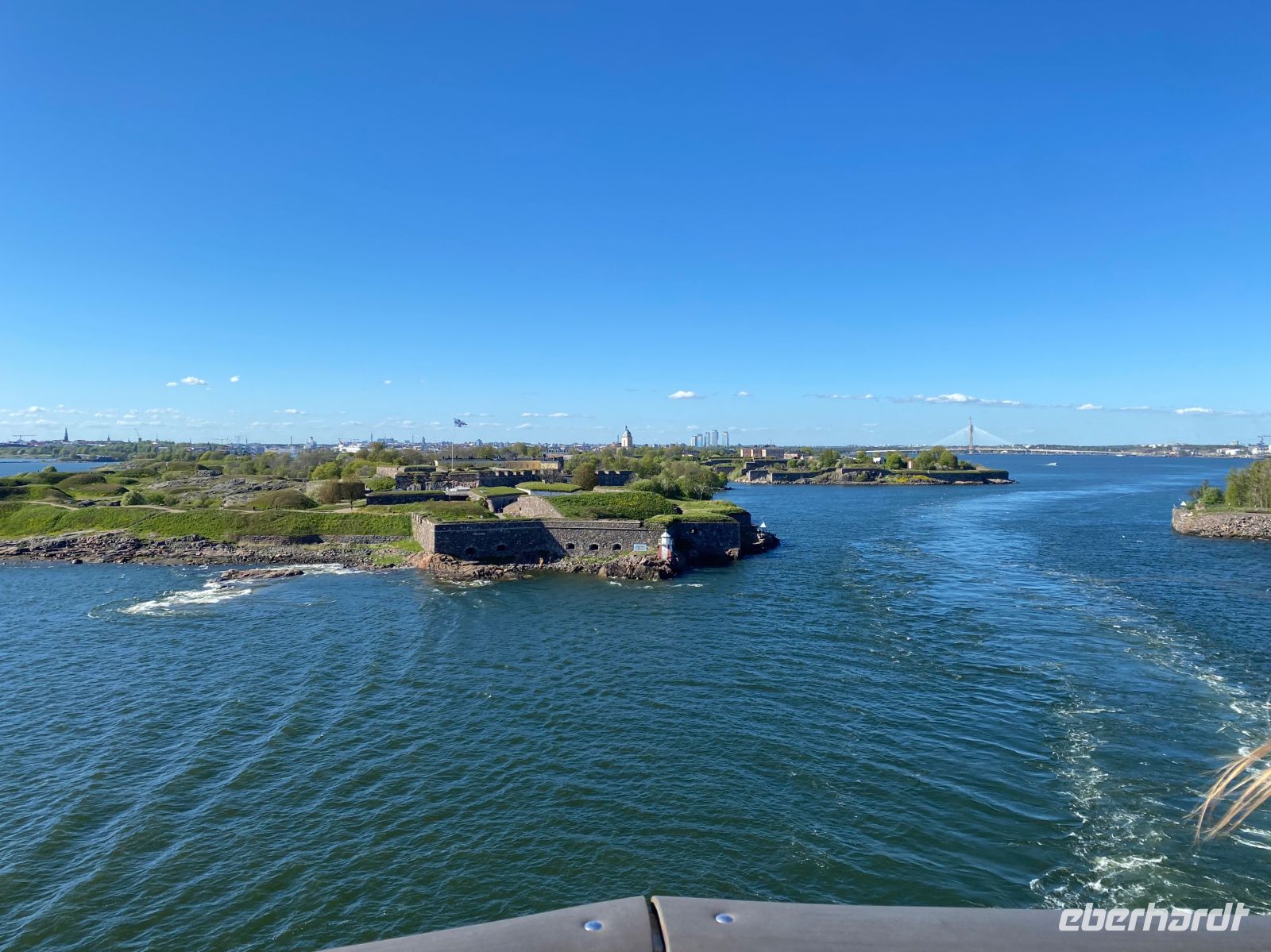 Als wir auslaufen, bietet sich uns von Deck aus ein fantastischer Blick zurück auf Helsinki und die vorgelagerten Inseln, natürlich auch die von Suomenlinna, die wir ja schon ganz besonders gut kennen!