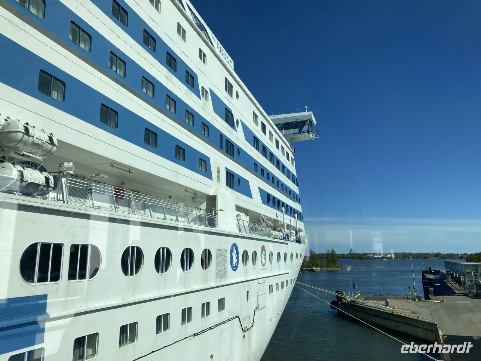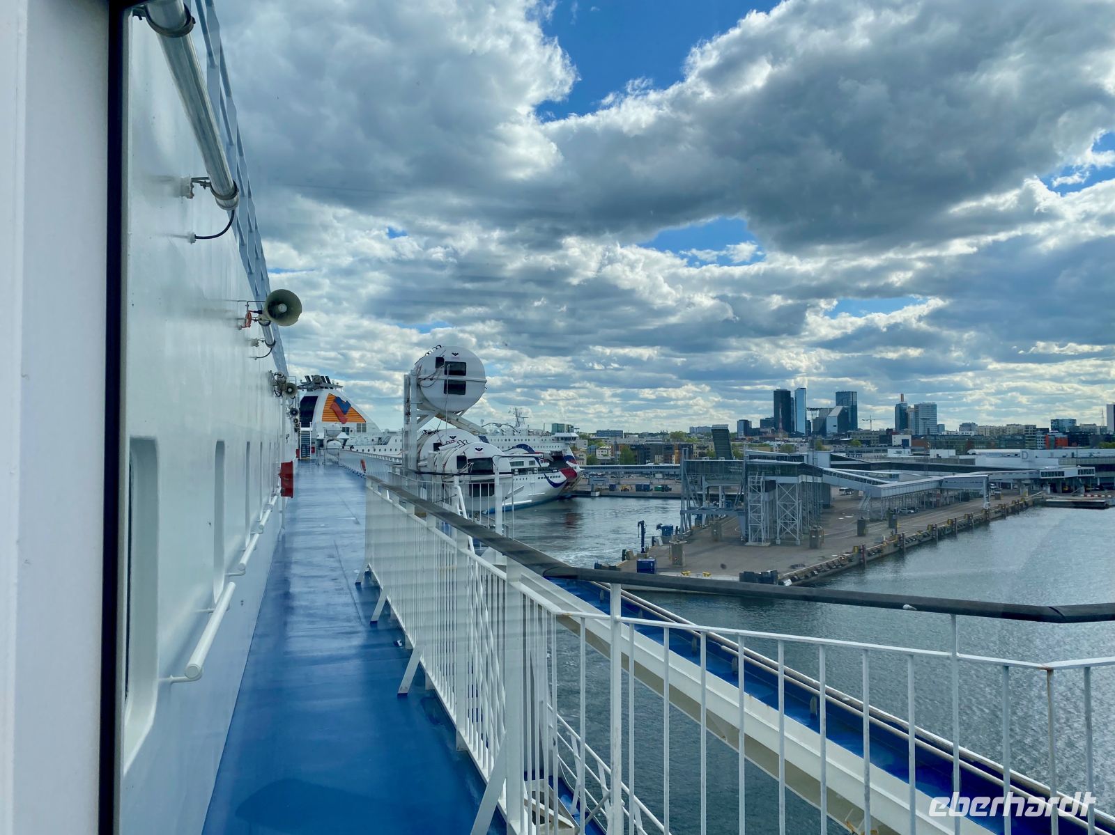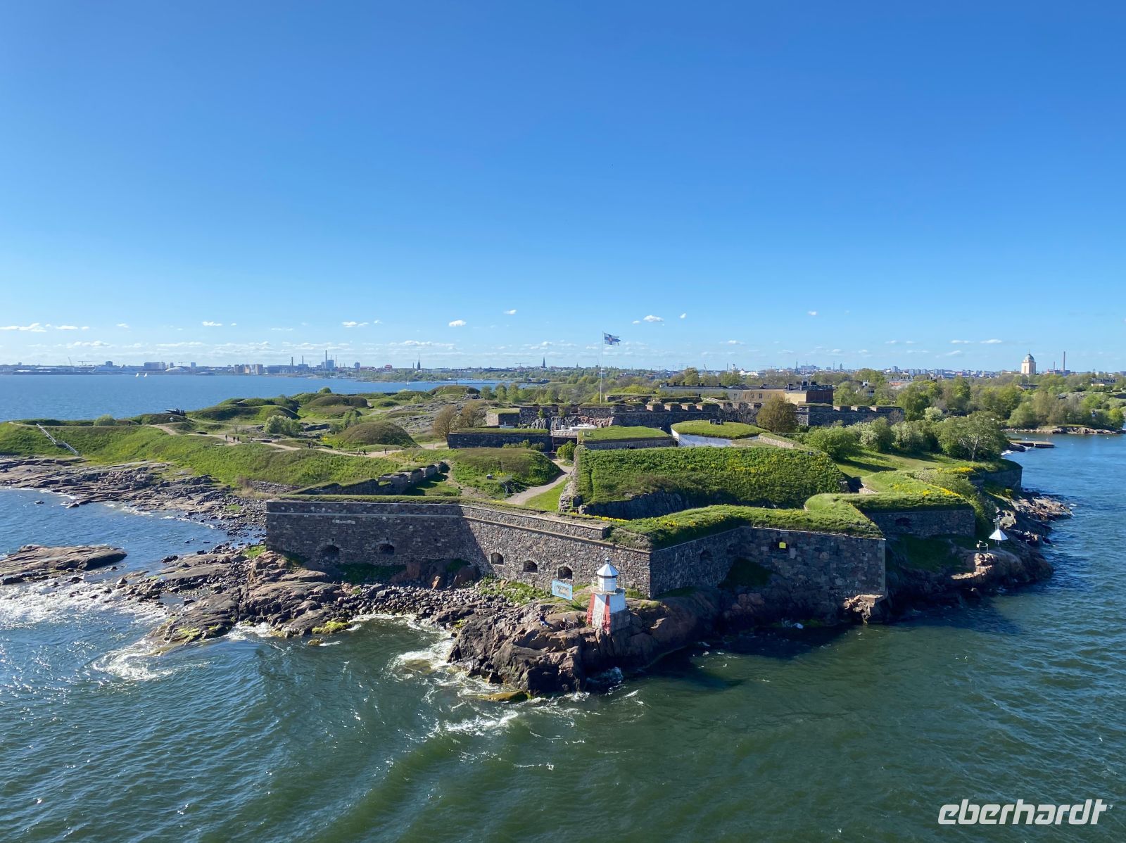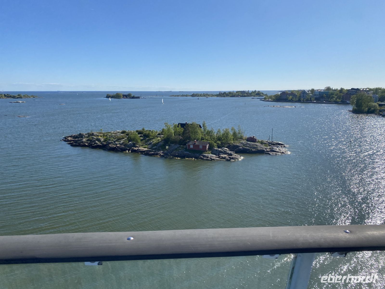Als wir auslaufen, bietet sich uns von Deck aus ein fantastischer Blick zurück auf Helsinki und die vorgelagerten Inseln, natürlich auch die von Suomenlinna, die wir ja schon ganz besonders gut kennen!