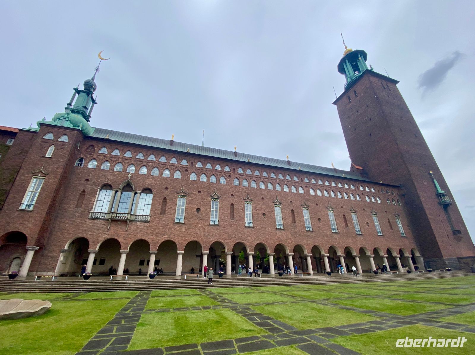 Wir hören diesen schönen Satz dann auch sehr herzlich von unserer wunderbaren Stadtführerin Benedikta, die wir am imposanten Stadshus von Stockholm treffen. Was wir hier sehen, ist kein gewöhnliches Rathaus, es ist ein inspirierender Ort für die Bürger der Stadt. Für die Stadtverwaltung hat man ein zweites Rathaus in der Nähe gebaut, weil man die Idee des Architekten für dieses hier so gut fand.