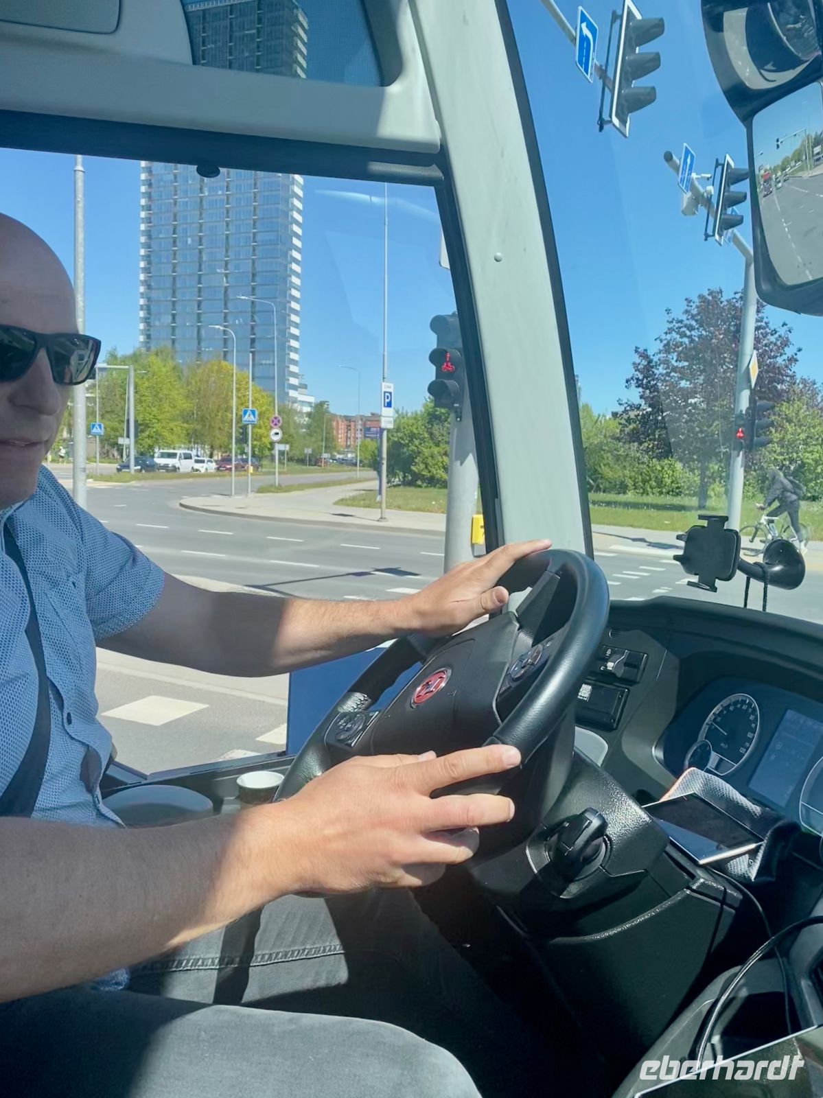 Dieser, unser, Bus steht frühmorgens bereit. Gelenkt von unserem fantastischen Fahrer Daniel, geht es los am Flughafen Dresden und dann einmal quer durch Deutschland nach Kiel. Unterwegs wächst unsere Gruppe bei einigen Zwischenhalten immer weiter, in Kiel sind wir dann komplett!