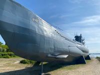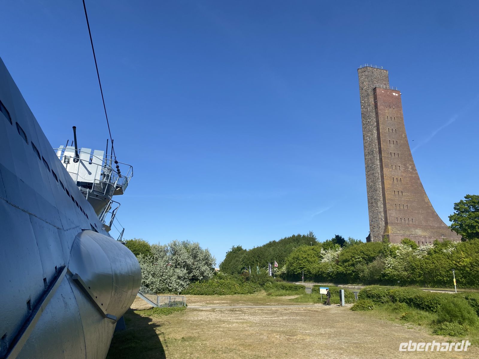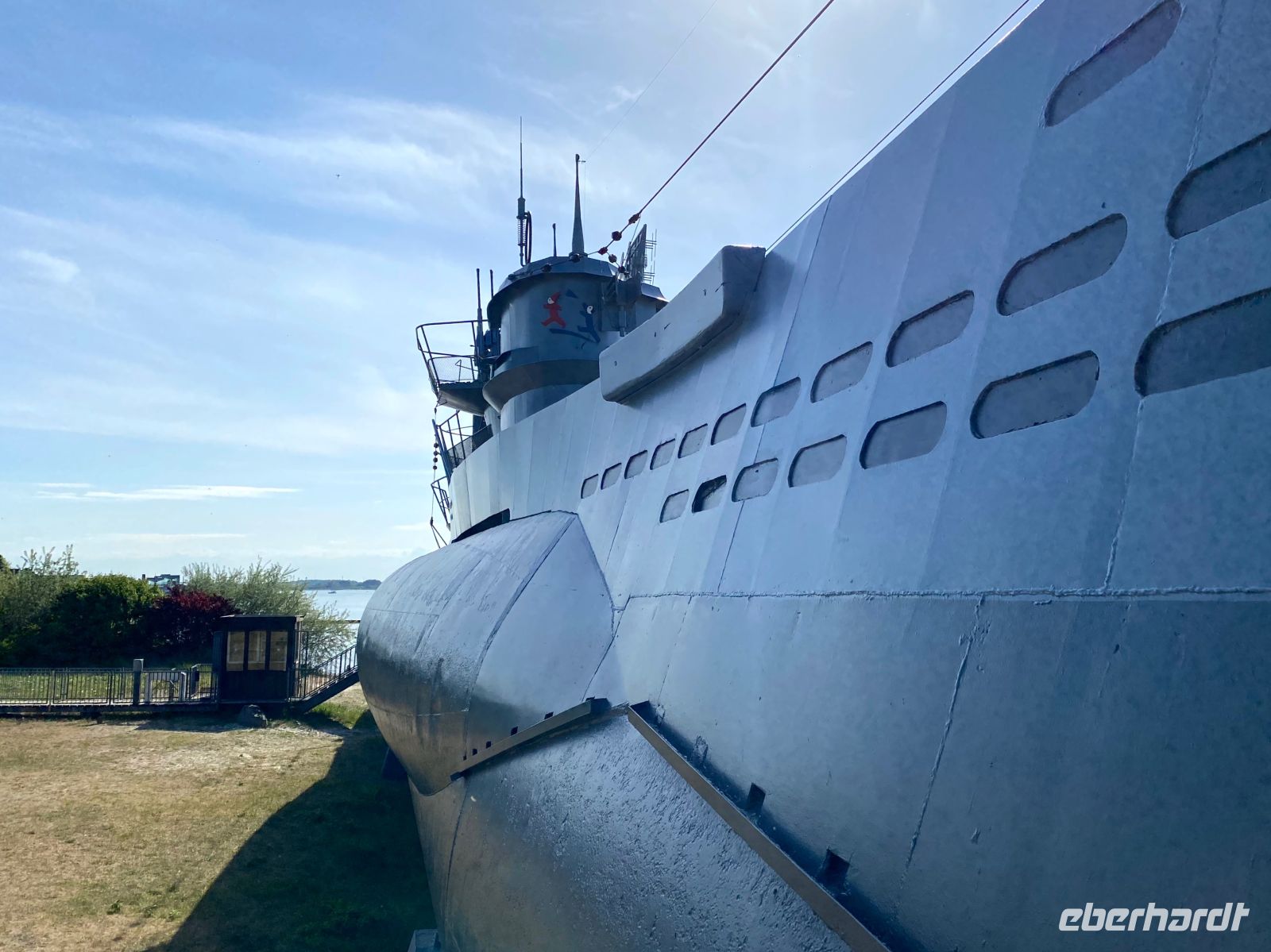 Wir haben noch Zeit vor der Anfahrt, das Wetter ist prächtig, es ist noch ein Abstecher ins nahe Ostseebad Laboe drin. Hier kann man die Gedenkstätte der Deutschen Marine mit ihrem U‑Boot oder ganz einfach den herrlichen Strand genießen – oder sogar noch schnell ins Wasser hüpfen!