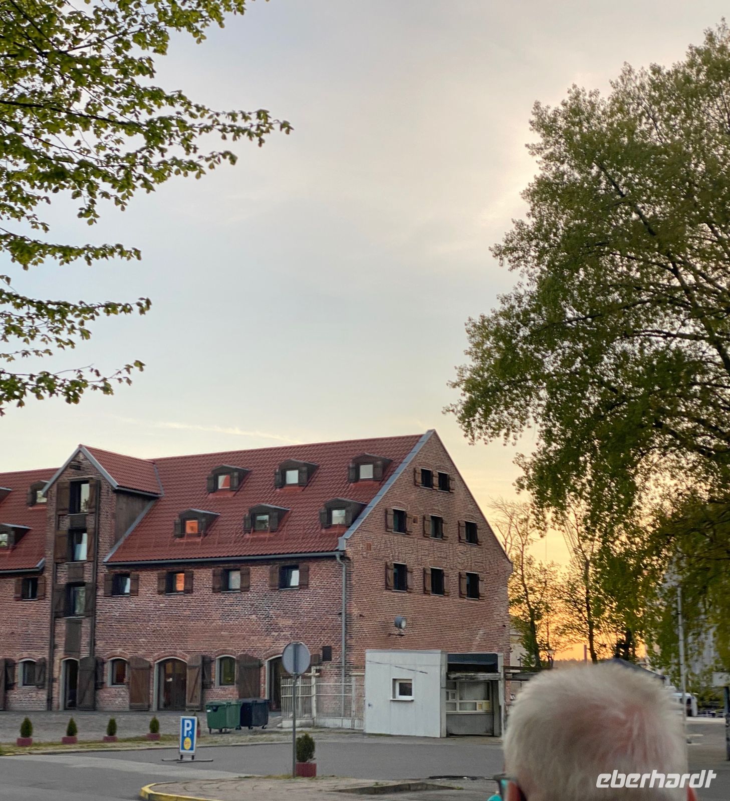 Dann geht es noch an den alten Speichern von Kiel vorbei, bis wir schließlich wohlbehalten wieder den Schwedenkai erreichen. Hier gibt es einen herzlichen Abschied von all denen, die in Kiel bleiben oder von dort mit der Bahn oder anders weiterreisen.