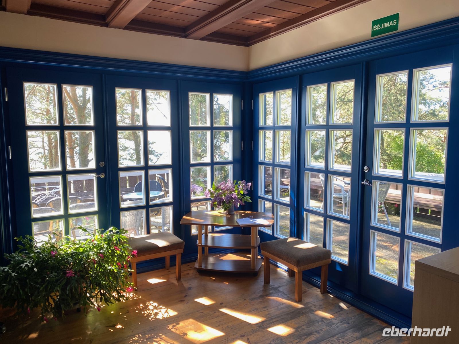Lars Sonck, der ursprüngliche Architekt, errichtete seinerzeit auch das Sommerhaus des finnischen Präsidenten. Wir können sagen, dass unser Domizil uns angemessen ist. Schön, dass wir hier zwei Nächte bleiben und vor allem, dass wir wieder ganz hervorragend essen und schlafen!
