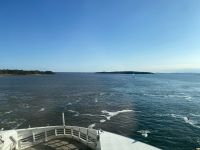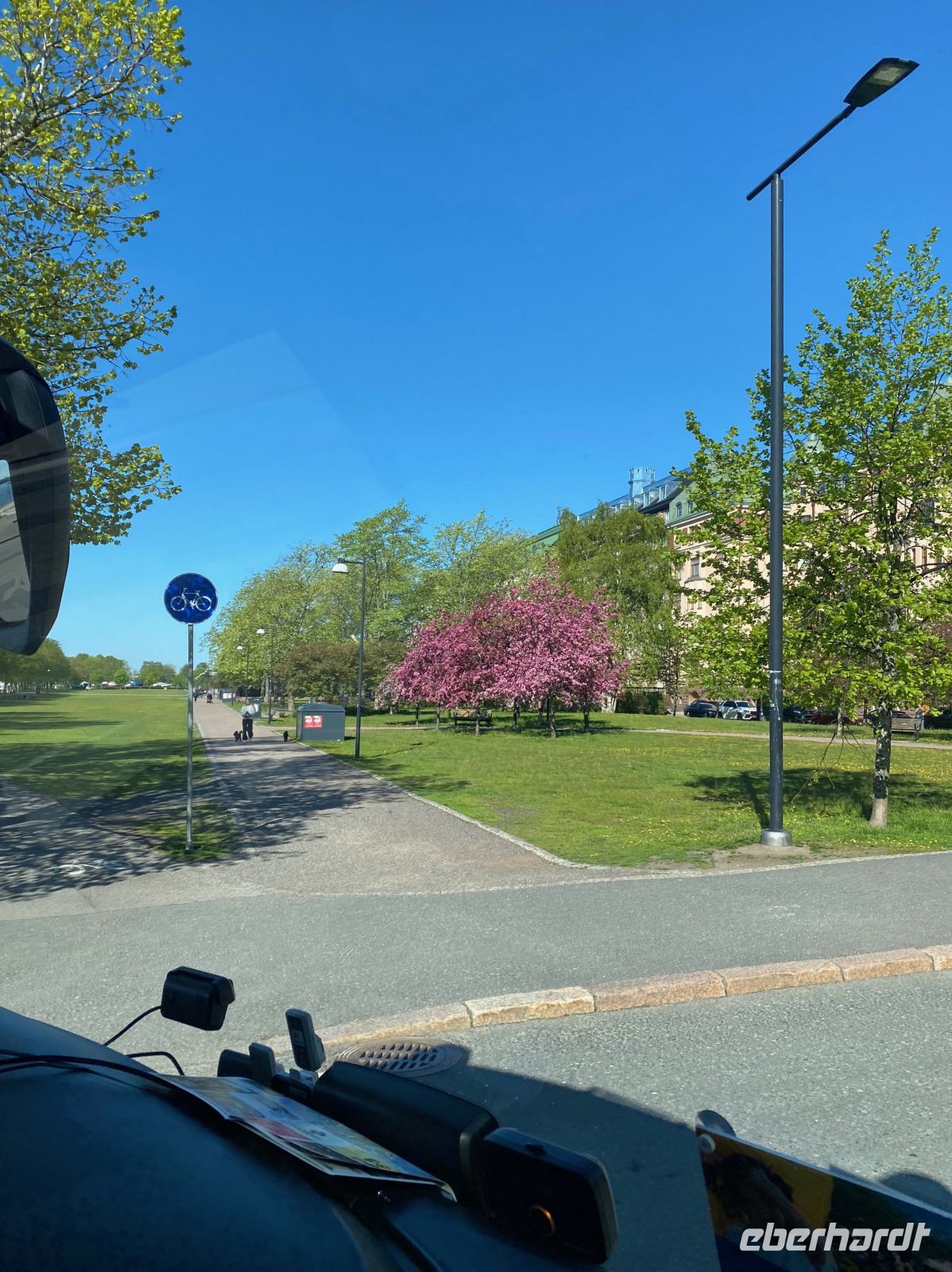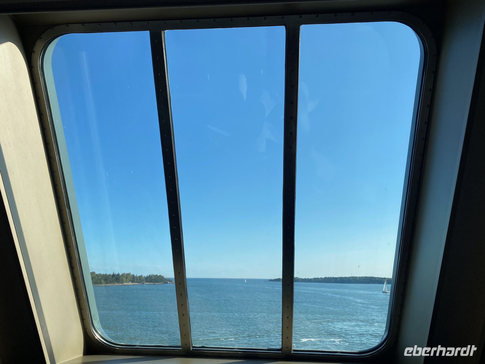 Wer heute Morgen kurz nach vier Uhr nach draußen schaut, der sieht den Hafen von Mariehamn auf den Åland‑Inseln, einem autonomem Gebiet Finnlands, hier wird bereits nur noch schwedisch gesprochen. Vom Frühstückstisch aus sehen wir dann zu einer etwas christlicheren Zeit die unzähligen Inseln des Stockholmer Schärengartens.