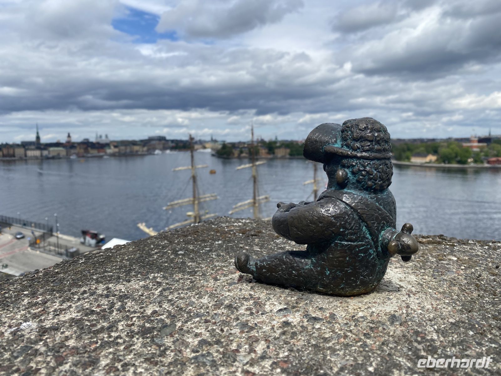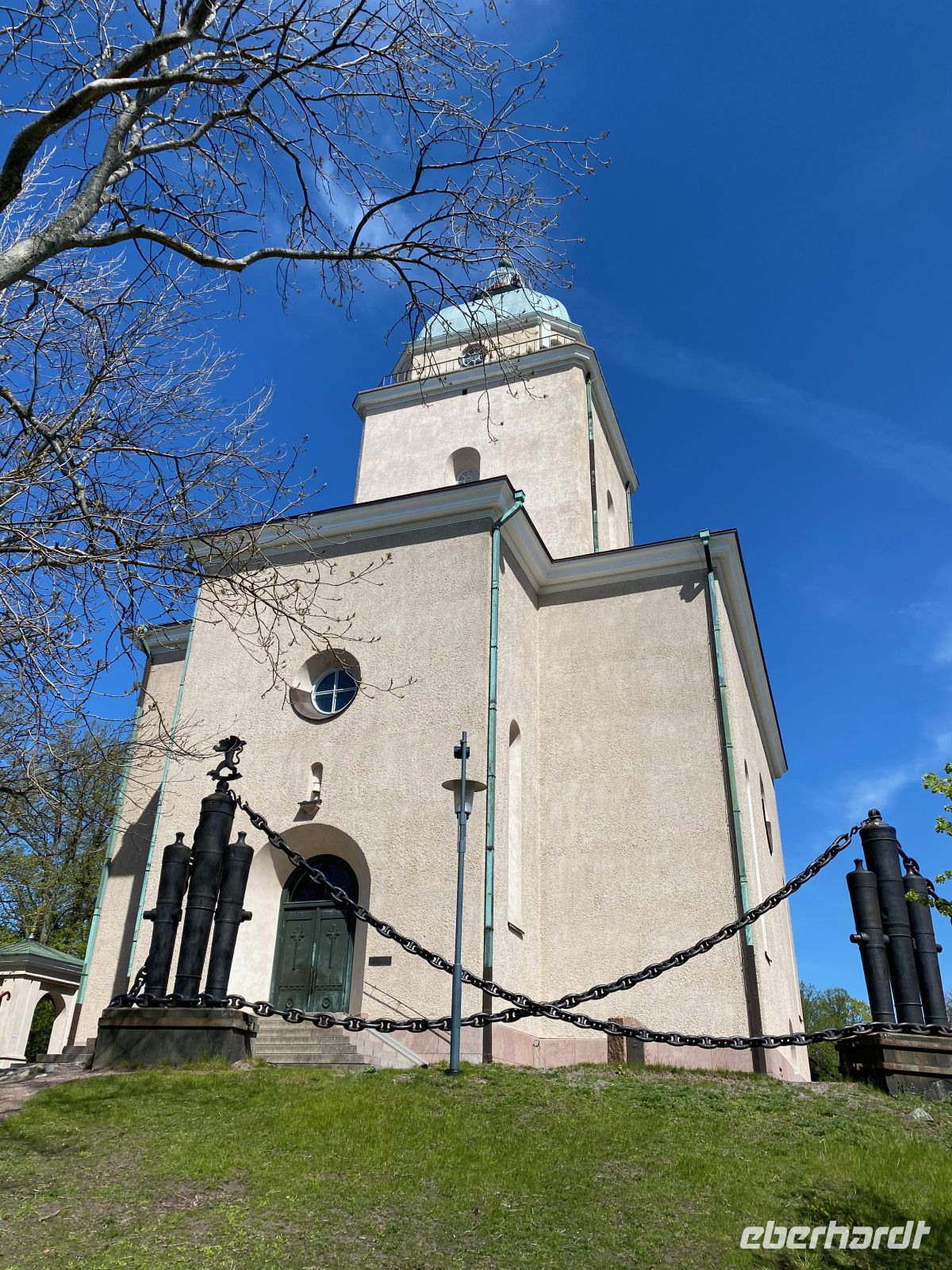 Die Kirche ist übrigens in weiten Teilen der Seefahrt gewidmet; von oben hier sehen wir auch die nahen Schiffe, bald werden wir auch an Bord sein. Hier oben stoßen wir im schönsten Sonnenschein gemeinsam mit einem typisch schwedischen Getränk feierlich auf unsere wunderbare gemeinsame Reise an: Skål!