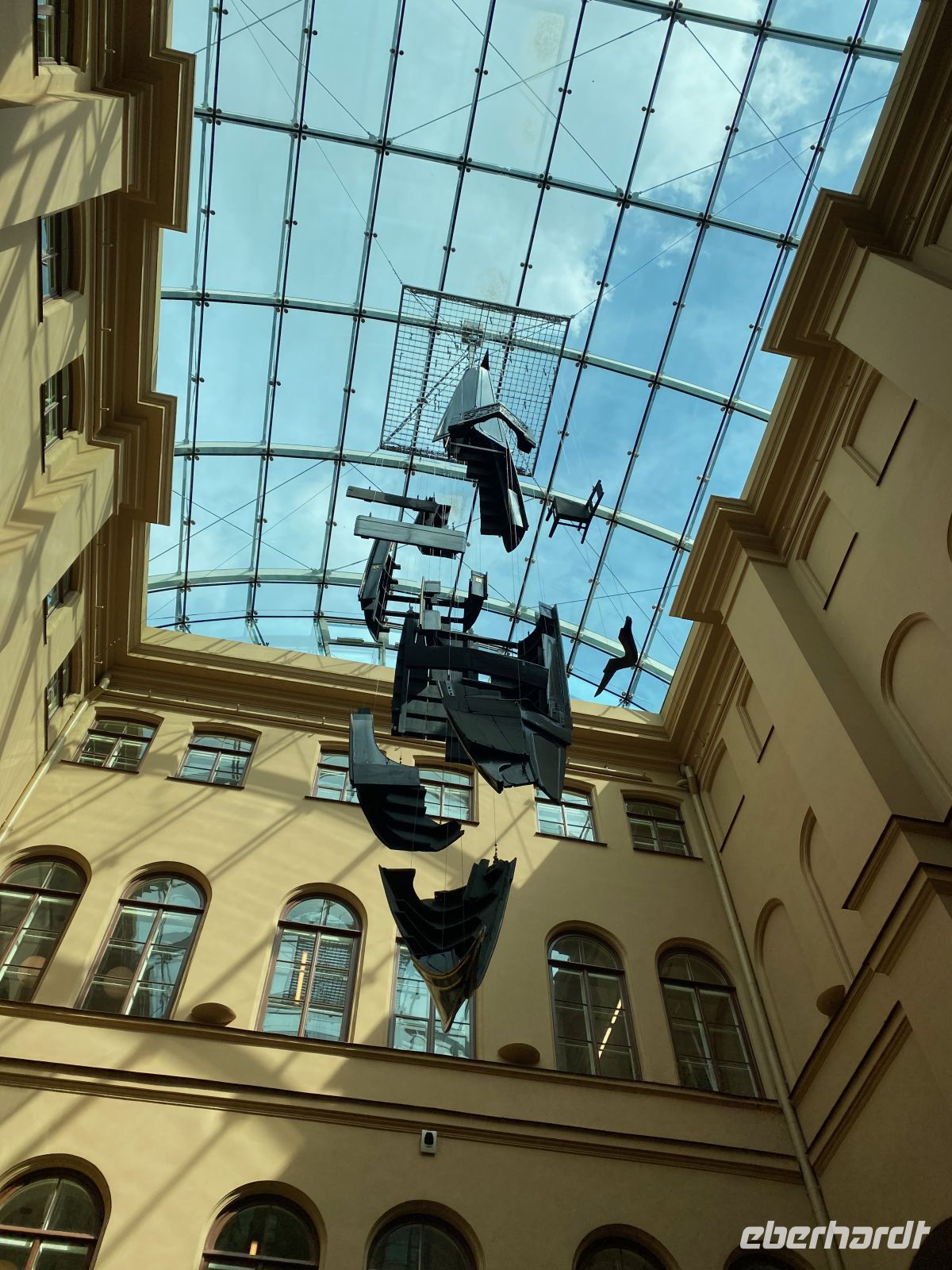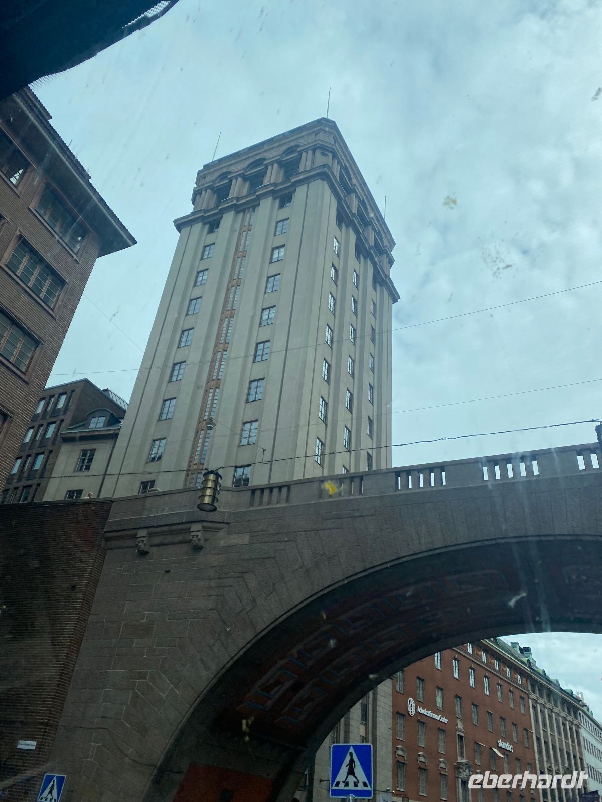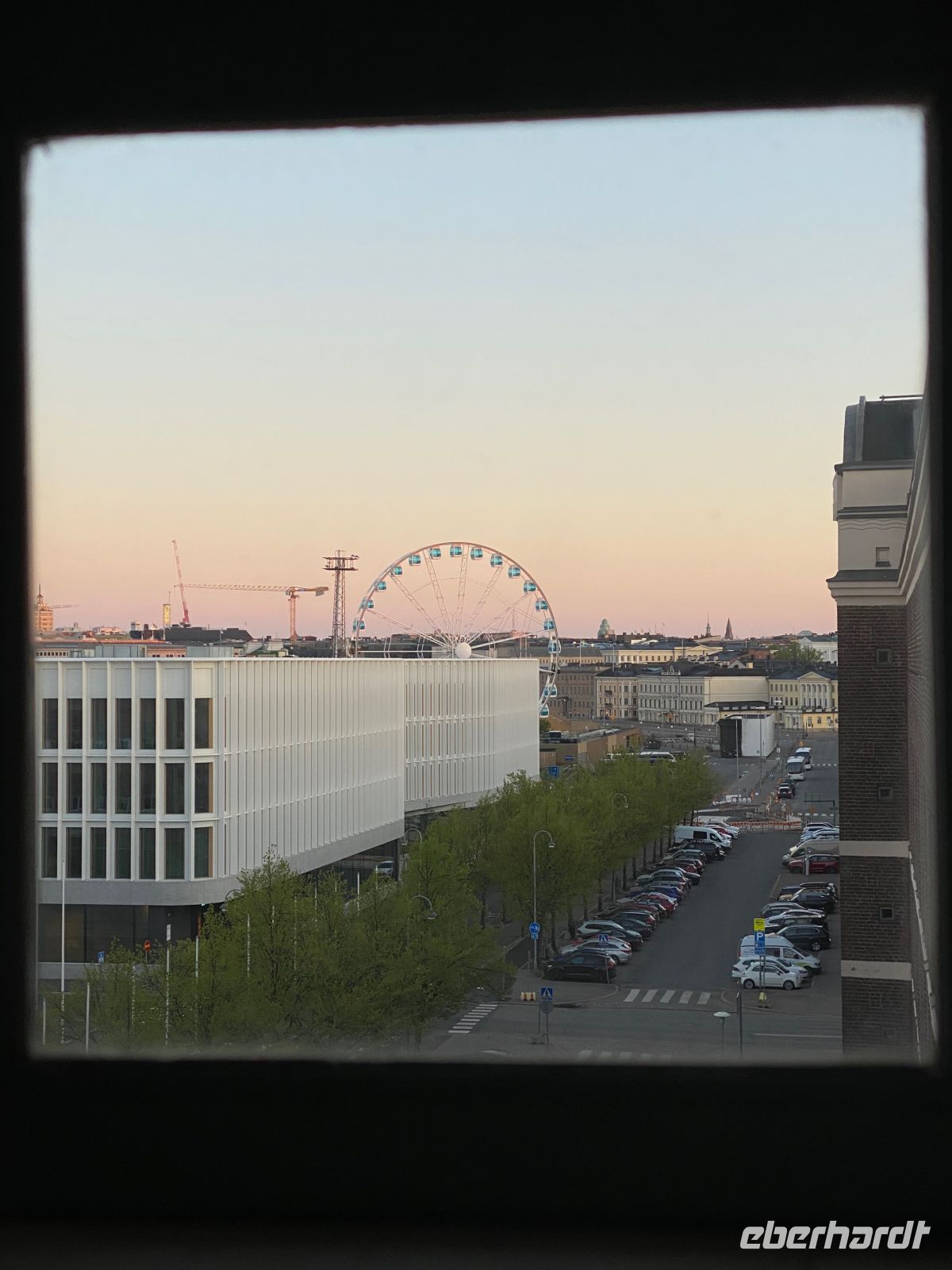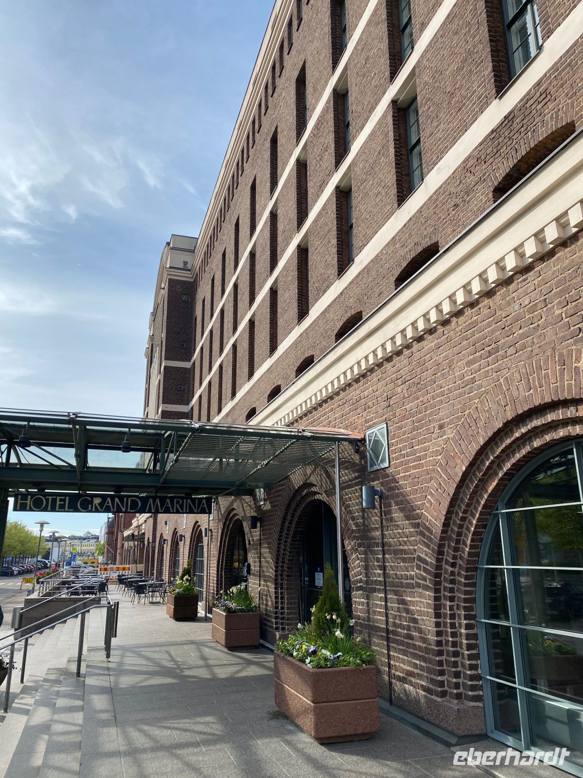 Helsinki ist von hunderten von Inseln umgeben, ein richtiger Schärengarten, den wir bei der Einfahrt von hoch oben an Deck erleben. Wohlbehalten angekommen, dauert der kurze Fußweg zum Bus tatsächlich länger als die Busfahrt zu unserem imposanten Hotel – wie das? Ein großer alter Hafenspeicher wurde hier auf der Landspitze Katajanokka, die inzwischen durch den Hafen eine Insel geworden ist, zu einem eleganten Hotel umgebaut.