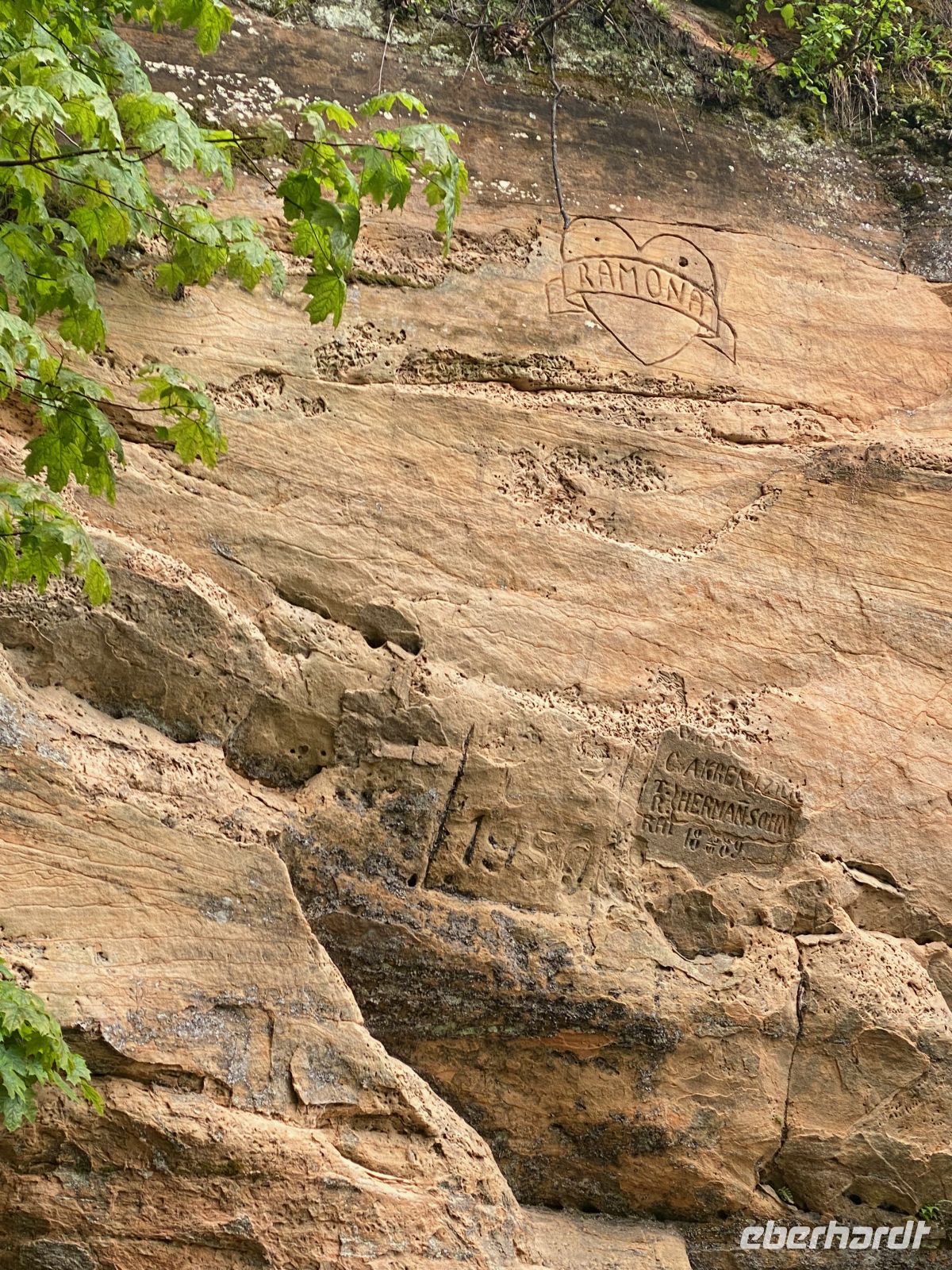 In der nahe gelegenen Gutmannshöhle soll die Unglückliche getötet worden sein, als sie ihre wahre Liebe und ihre Unschuld verteidigte. Einer Quelle in der Höhle entspringt ein besonderes Wasser, das Liebe, Treue und jungen Mädchen auch noch ewige Schönheit verspricht. Außerdem bestaunen wir die Inschriften von korporierten Studenten aus vergangenen Jahrhunderten, unter denen wir auch bekannte Namen finden ;-).