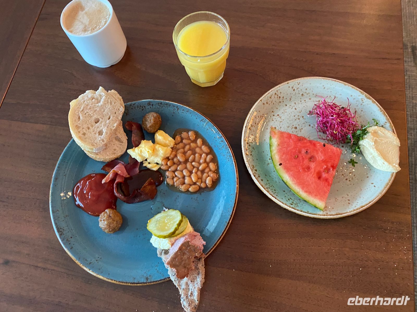 Das tat wirklich gut: Wir starten ja unser Tagesprogramm immer recht entspannt, meistens um neun Uhr, aber einmal einfach so ausschlafen zu können, das ist schon sehr erholsam! Heute ist Sonntag, da passt das auch zum Tag, und das sehr erfreuliche Frühstücksbuffet wird hier am Wochenende bis um elf Uhr angeboten. Was will man mehr?
