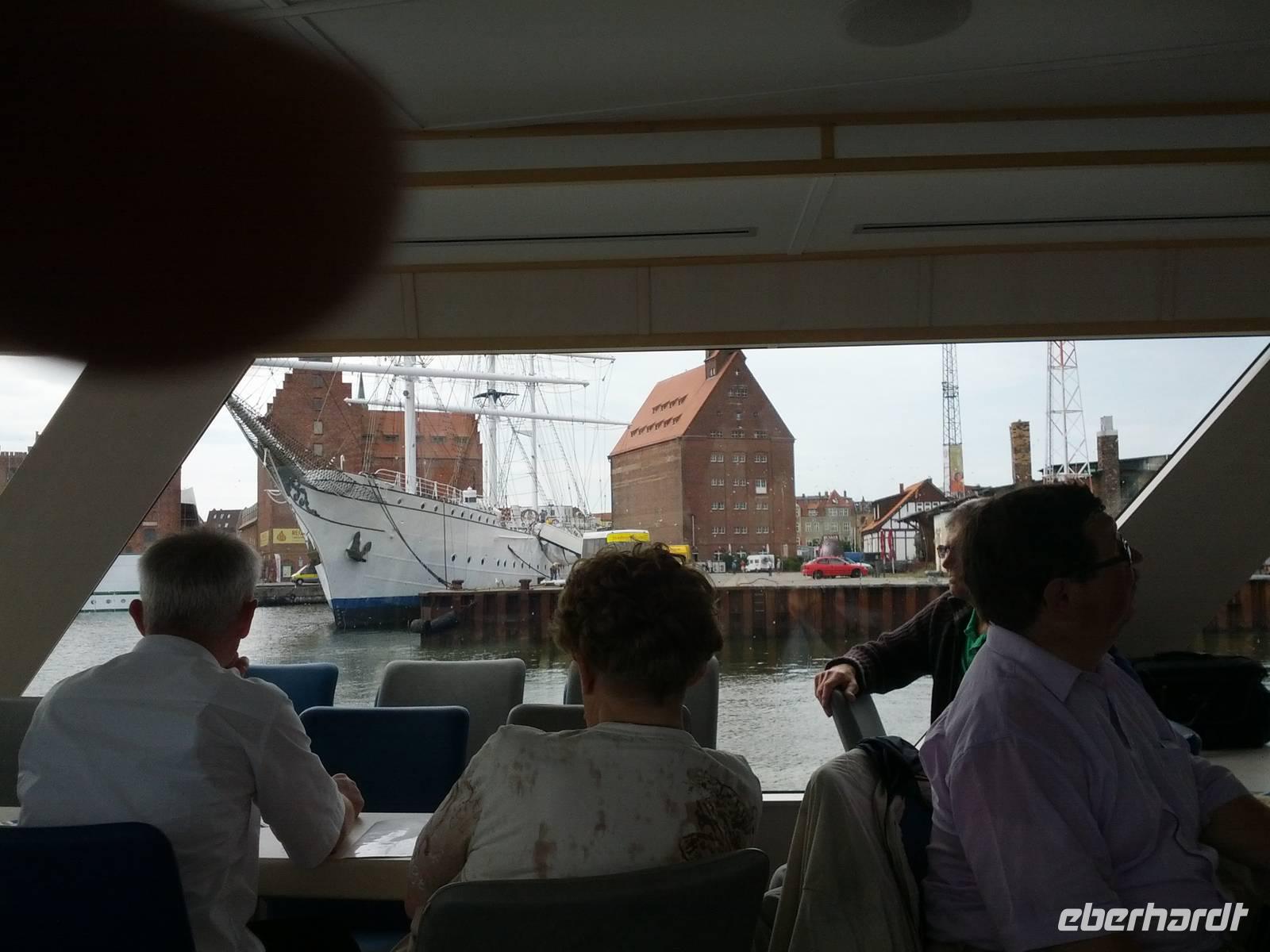Nach der Betrachtung Stralsunds seeseitig, fahren wir zum Abendessen ins Hotel.