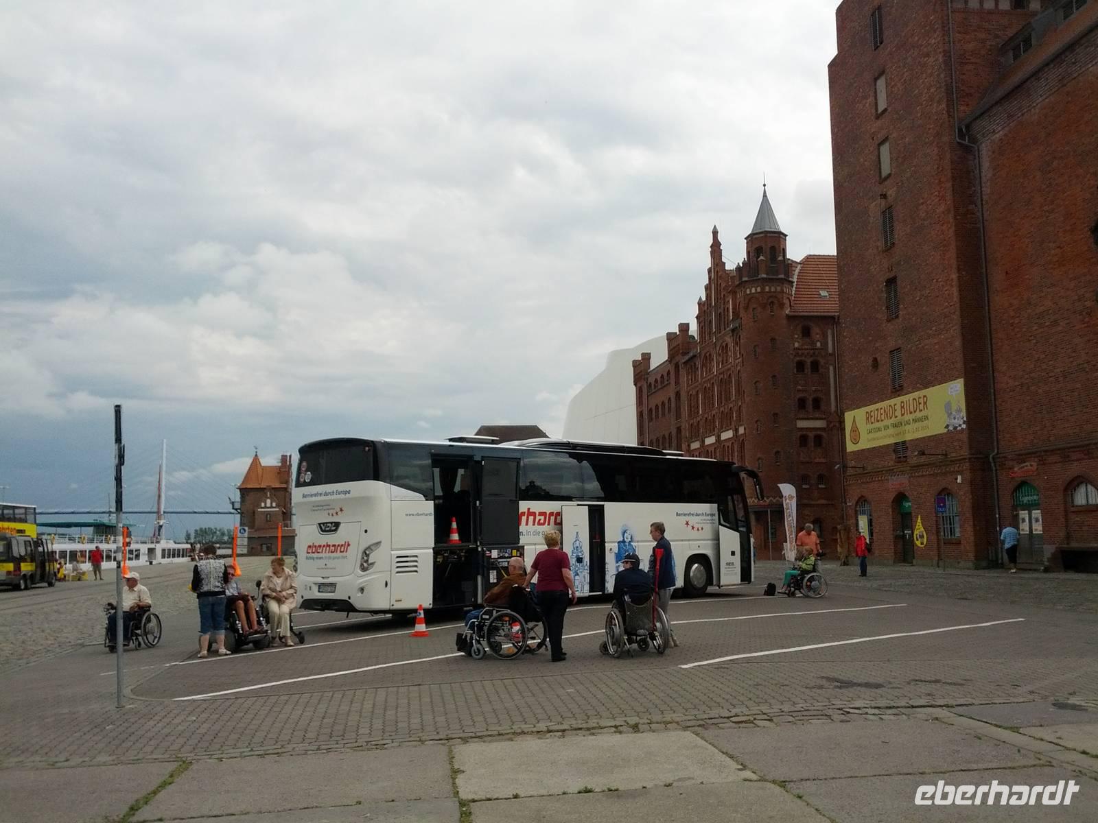 Vom Dresdner Flughafen über Leipzig und Coswig fahrend füllt sich unser Reisebus zu den Störtebeker-Festspielen mit 19 Gästen, wie immer sind viele von ihnen mit dem Rollstuhl unterwegs.