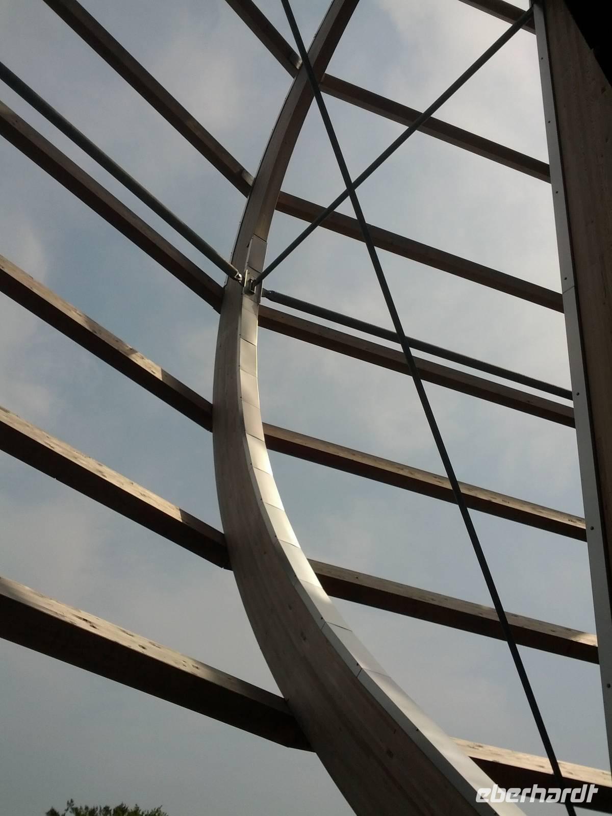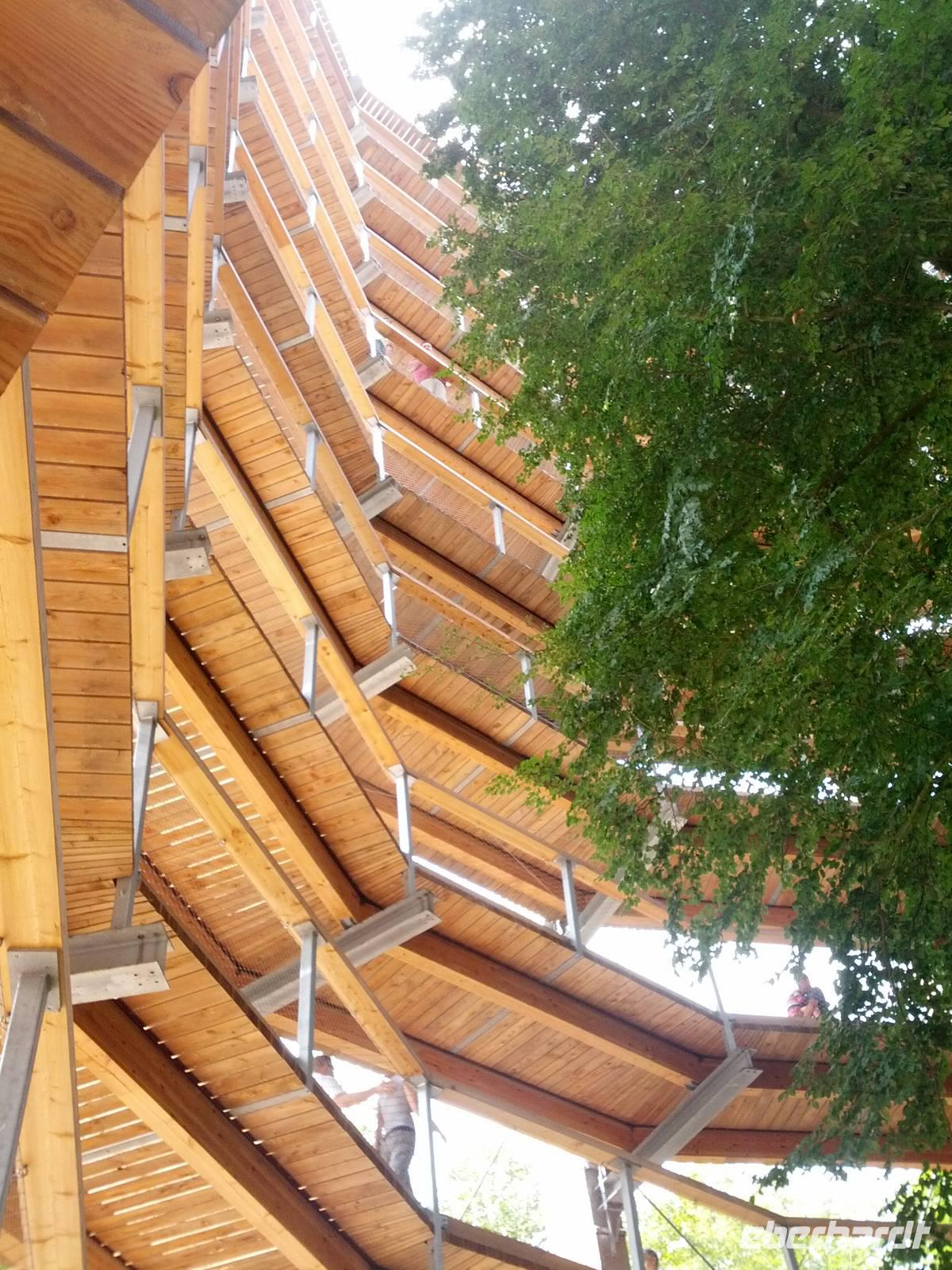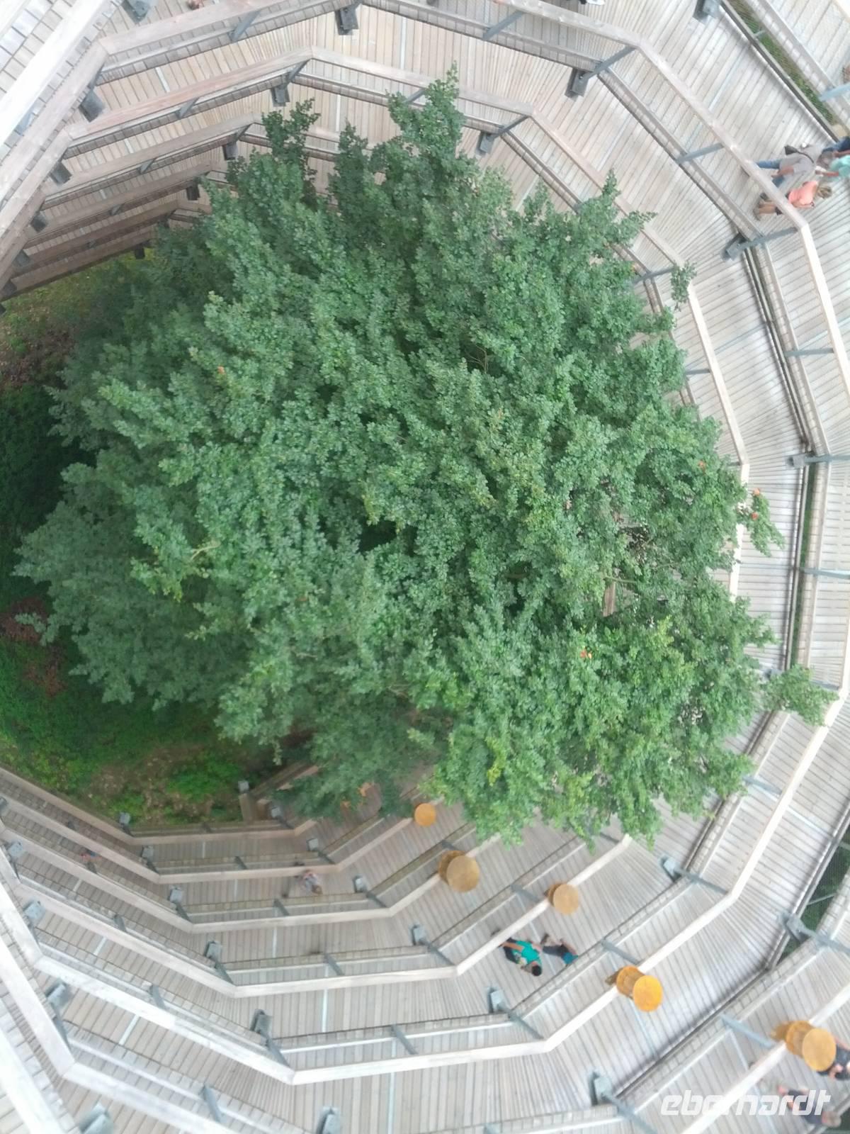 Mit ihr besuchen wir das Naturerbe-Zentrum in Prora. Der dortige Baumwipfelpfad ist eine echte Attraktion. Selbst mit den Rollstühlen gelangen wir auf allmählich sanft ansteigender Strecke bis ins „Adlernest". Von vierzig Meter Höhe bietet sich ein toller Rundblick.