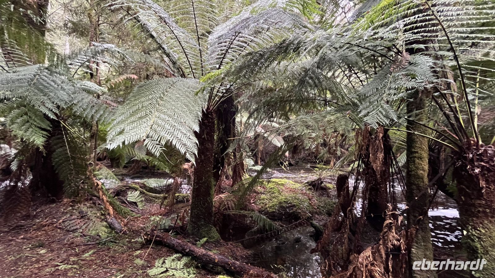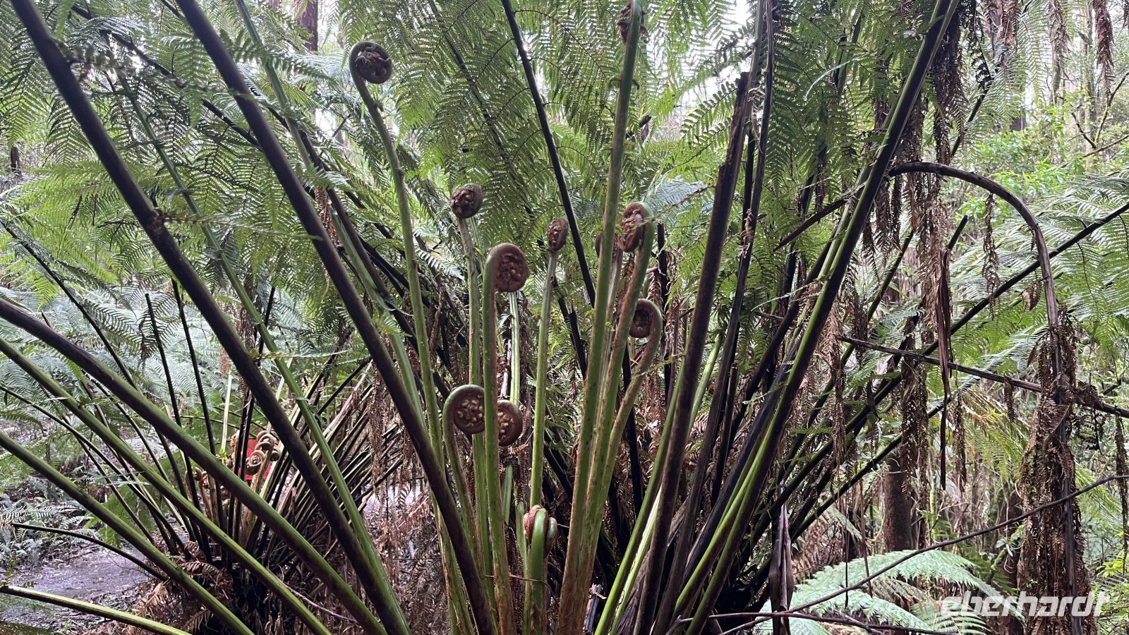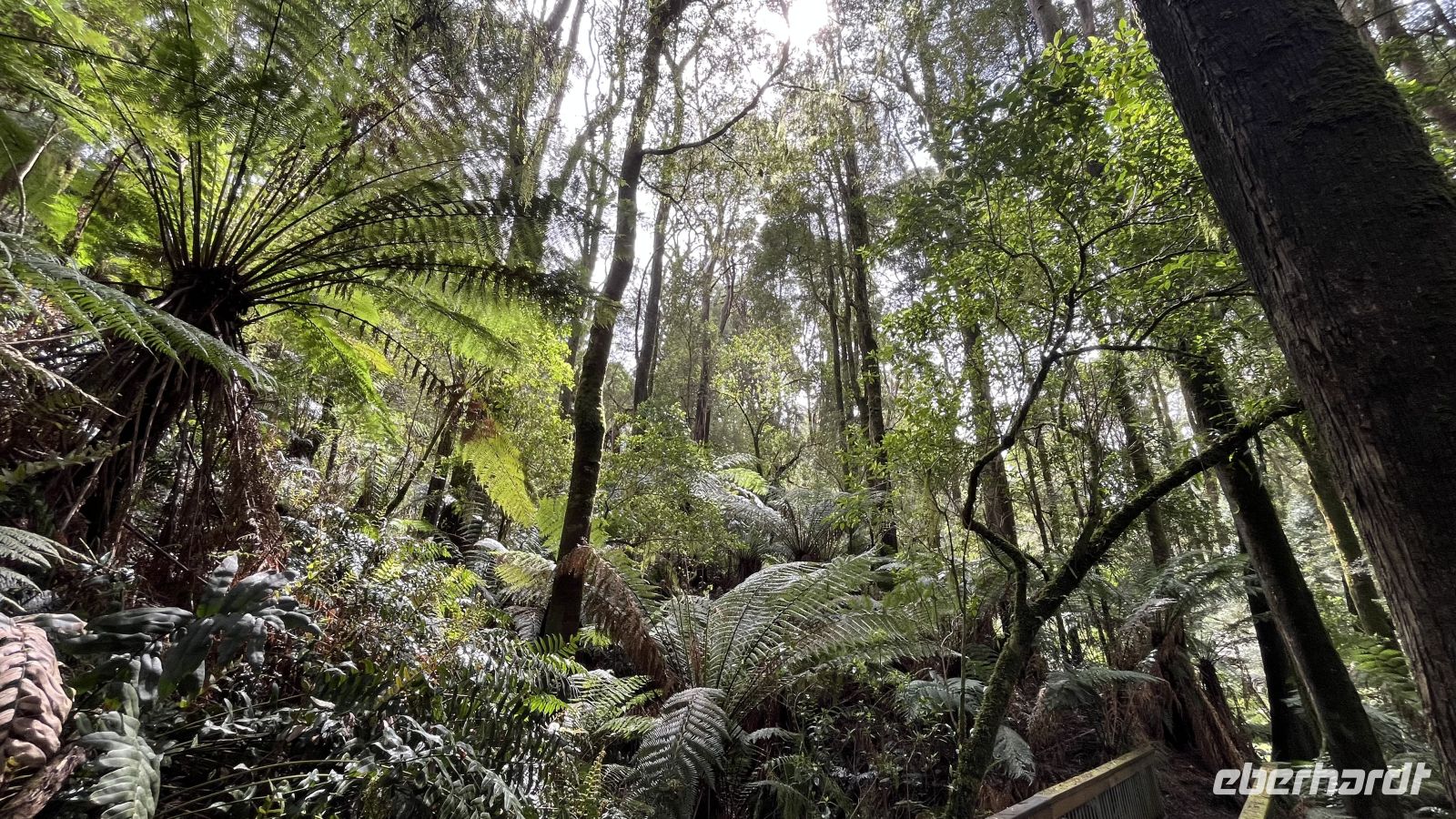 Gestärkt geht es weiter in den Melba Gully National Park, wo uns eine ganz andere Welt erwartet. Unter hohen Eukalyptusbäumen spazieren wir durch einen uralten Regenwald. Riesige Baumfarne und moosbewachsene Stämme säumen den Weg – eine friedliche, fast mystische Atmosphäre.